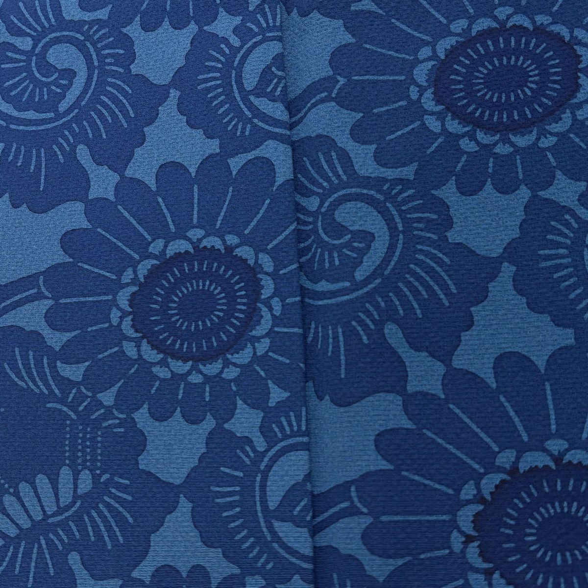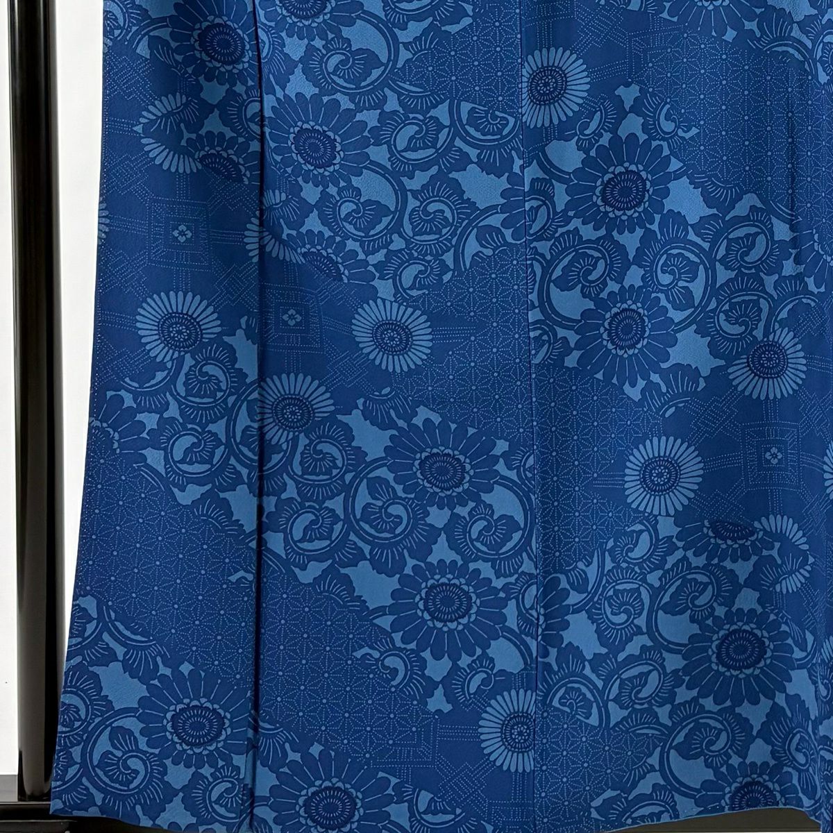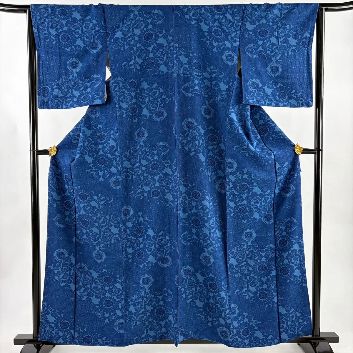 小紋 身丈160cm 裄丈64cm M 袷 菊唐草 藍色 正絹 秀品