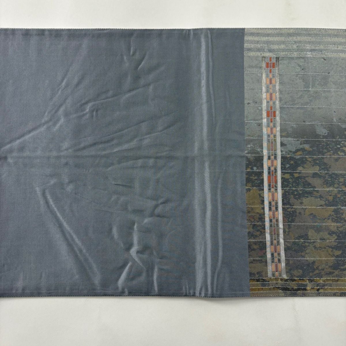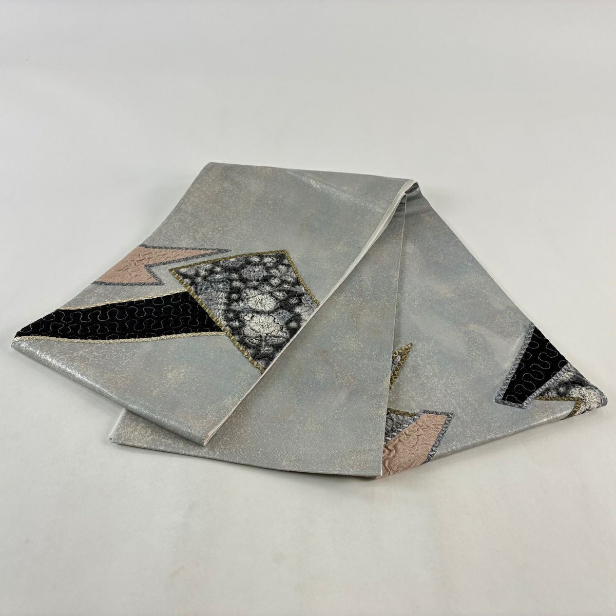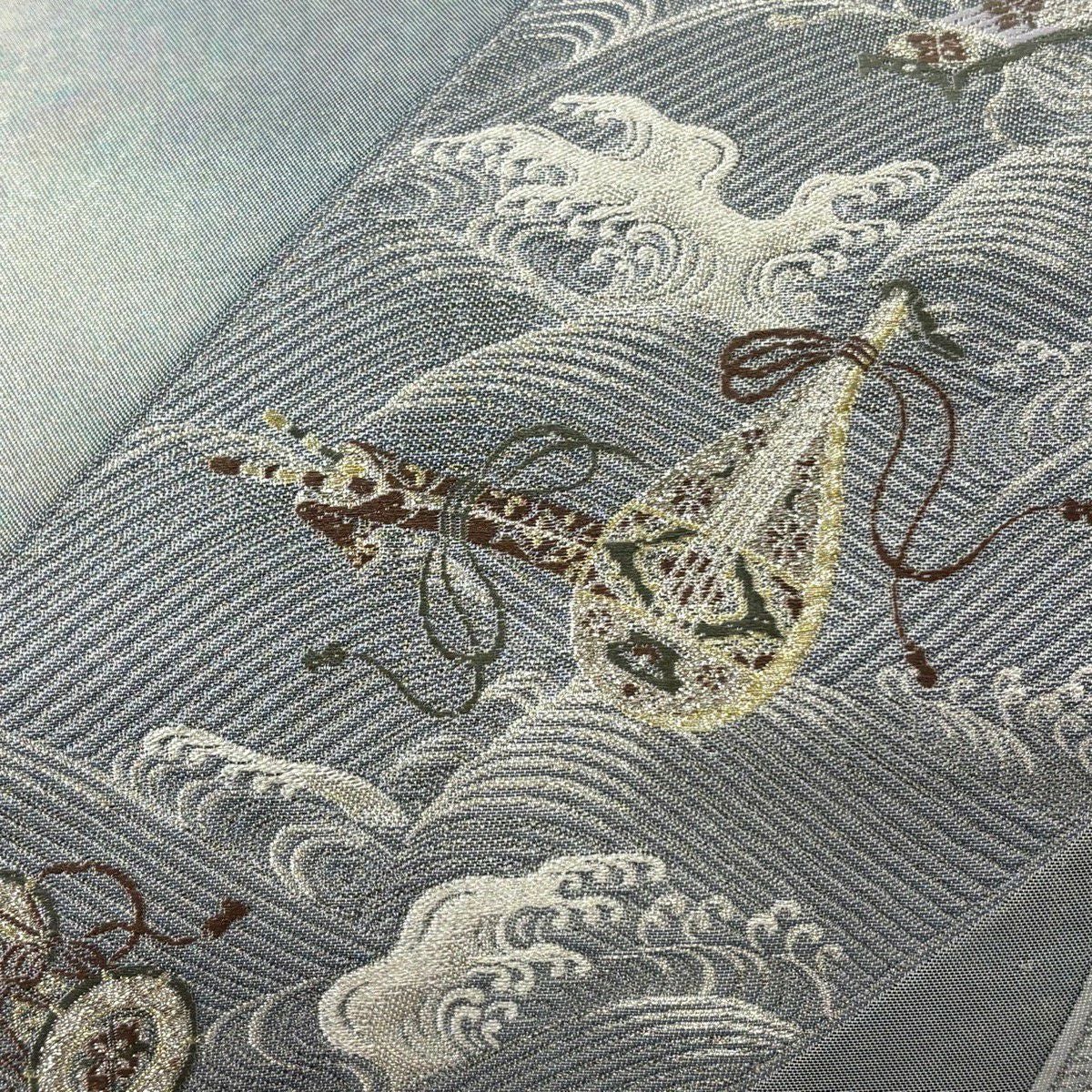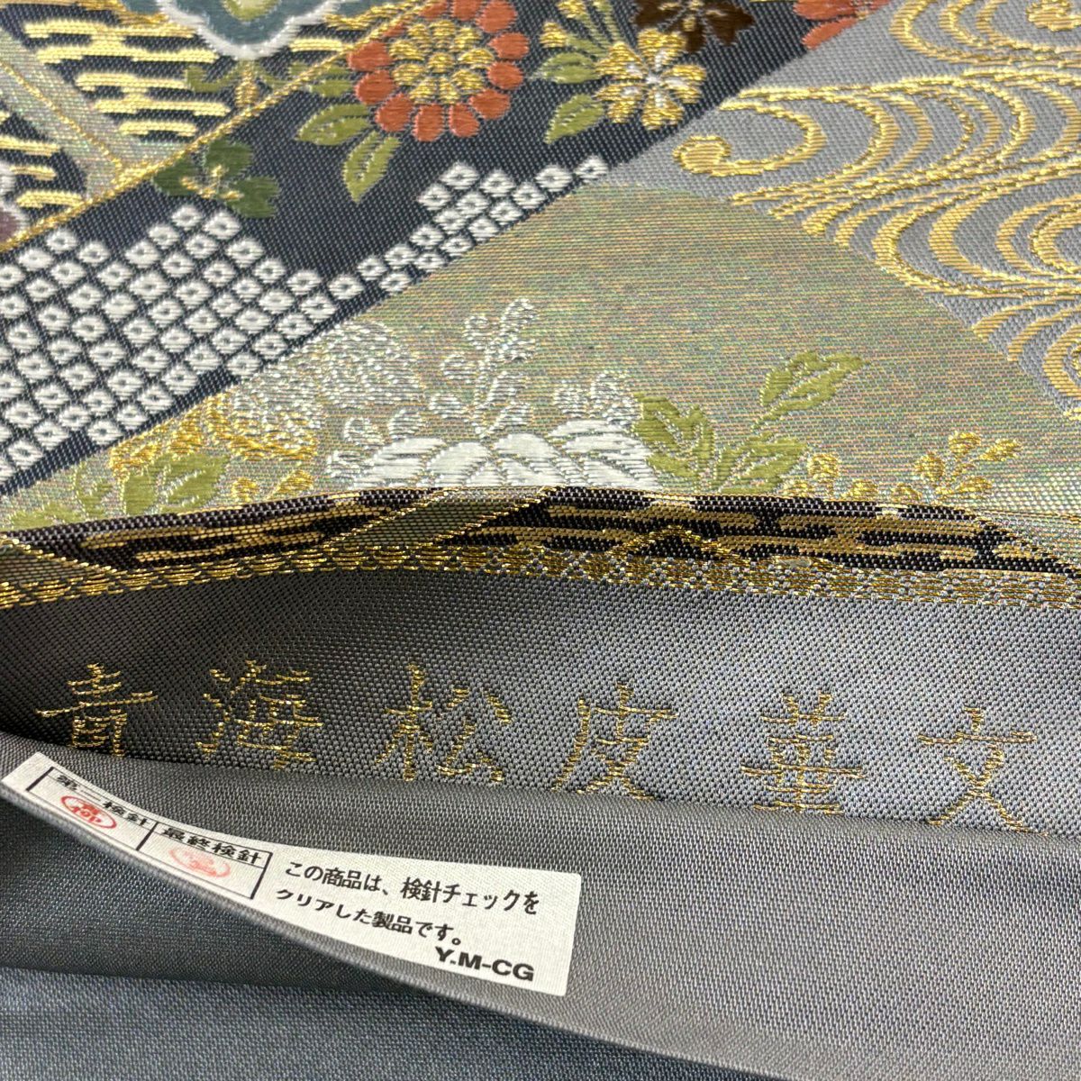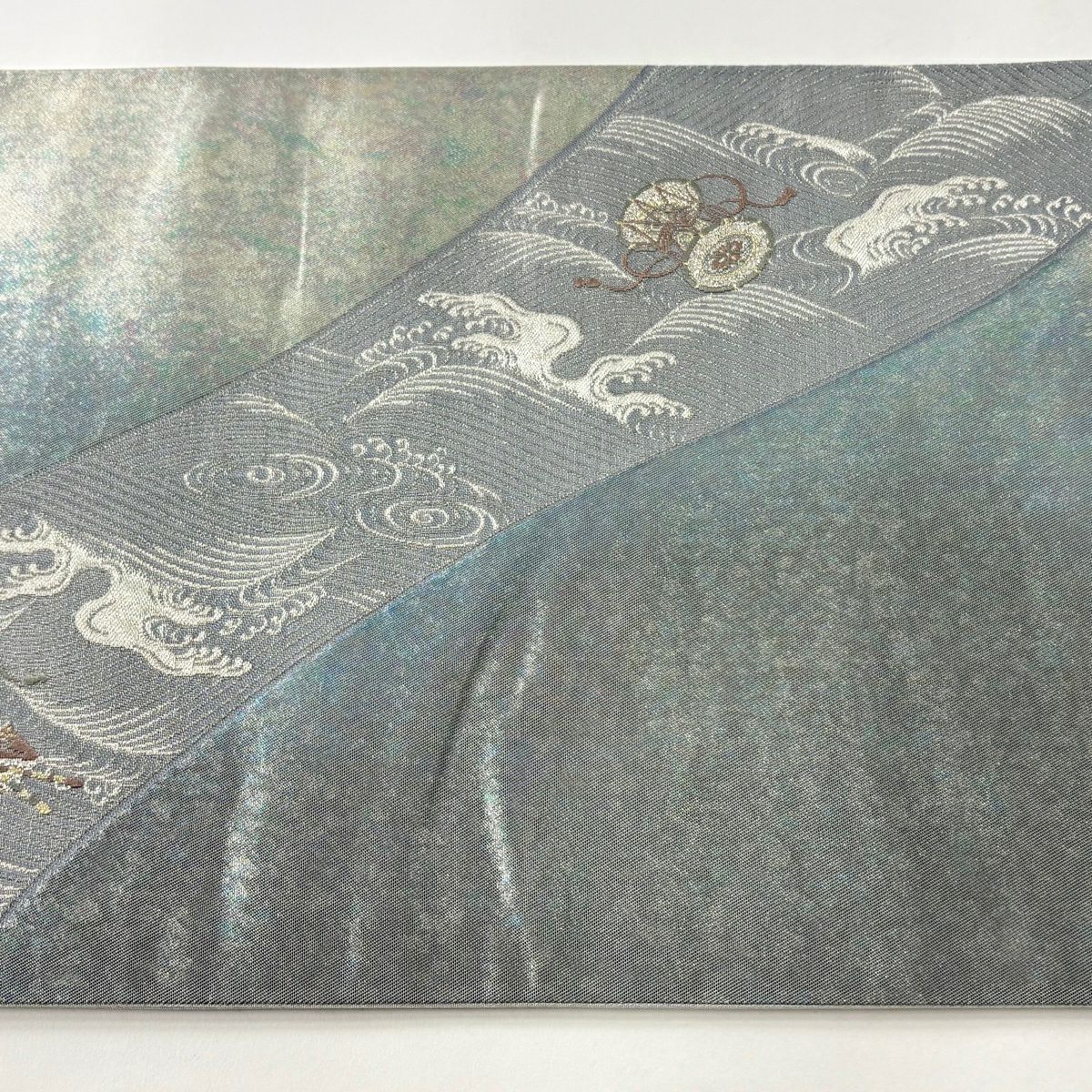【美品】 袋帯 秀品 青海松皮華文 金銀糸 刺繍 灰色 六通 正絹