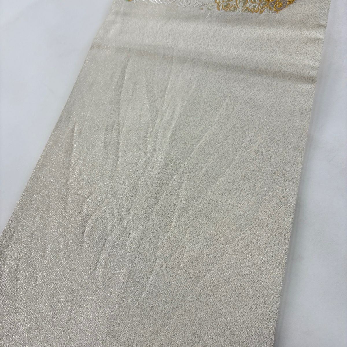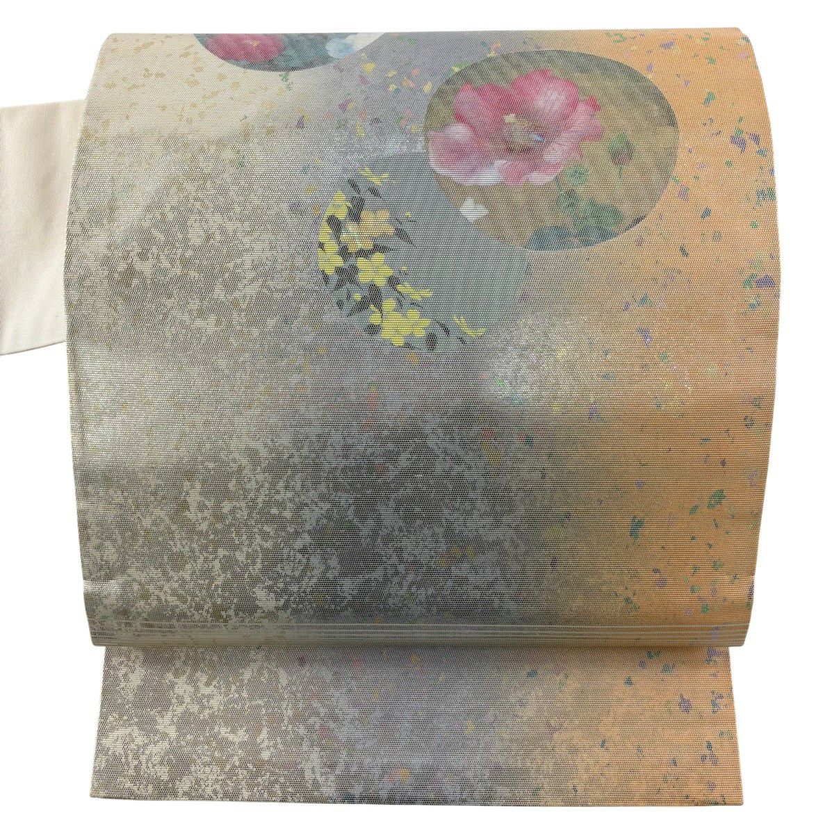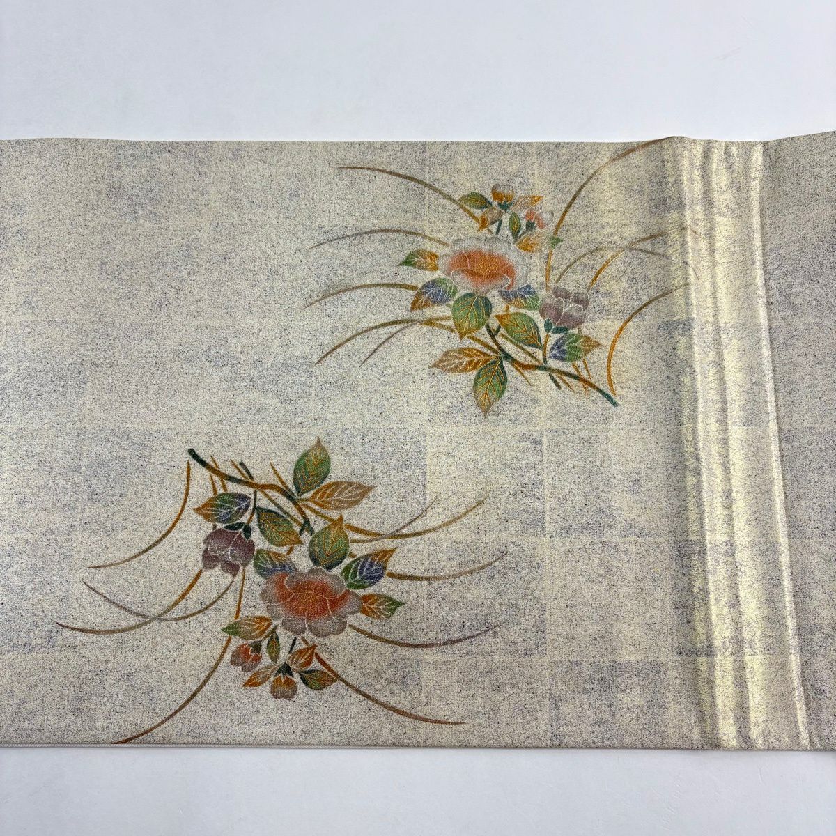 【美品】 名古屋帯 秀品 螺鈿織 薔薇 金銀彩 箔 クリーム 正絹