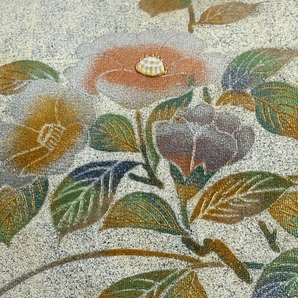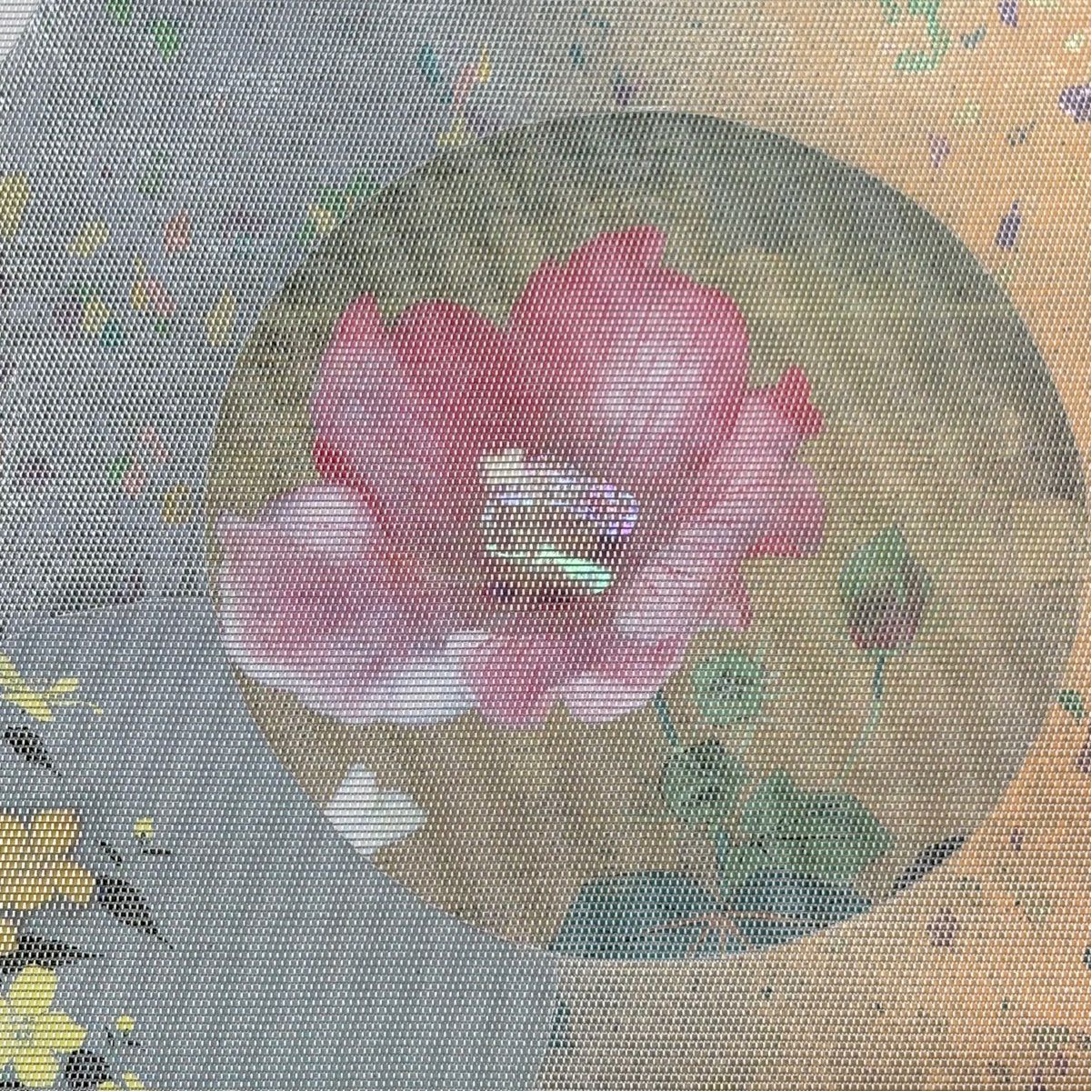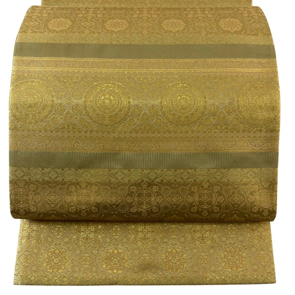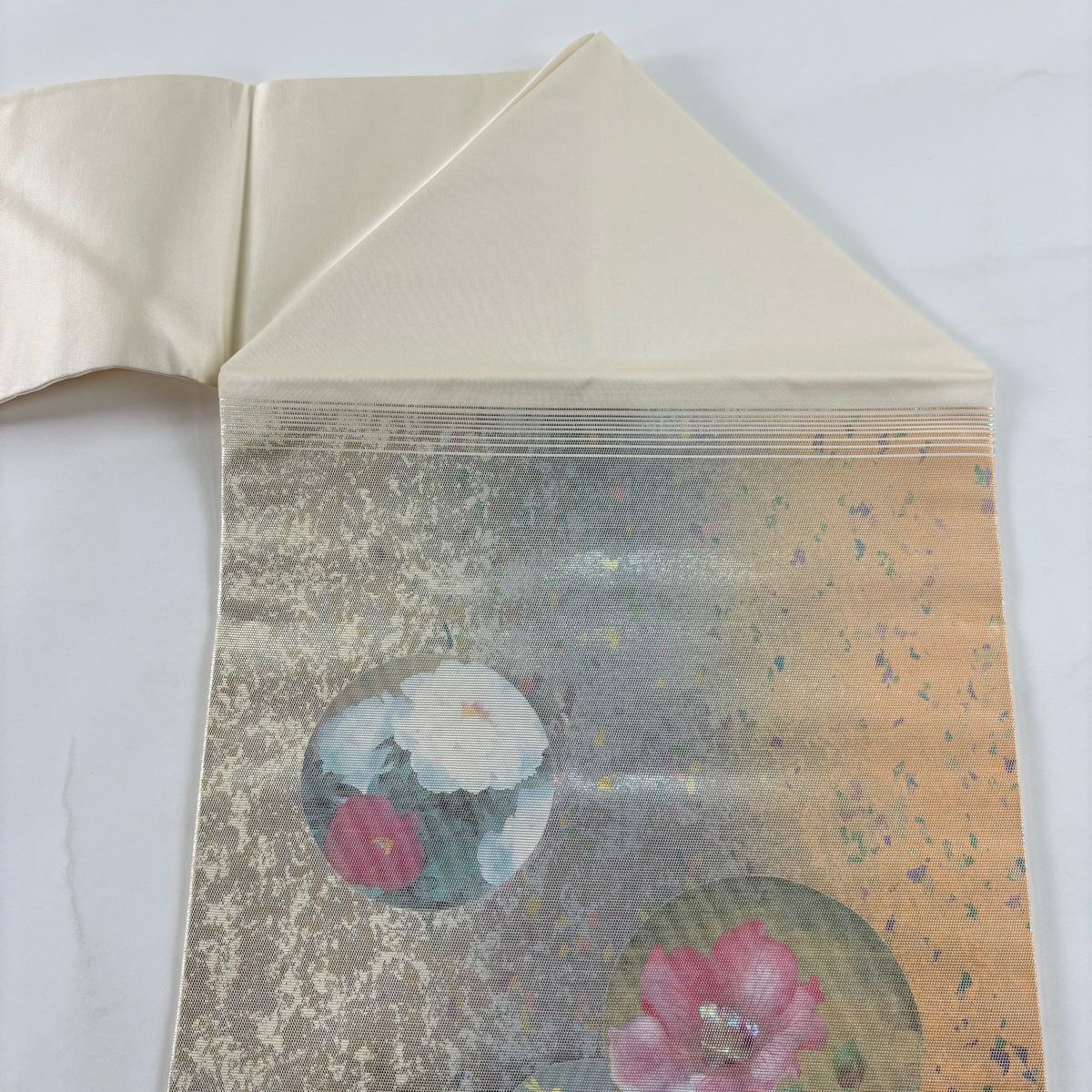 【美品】 名古屋帯 秀品 螺鈿織 薔薇 金銀彩 箔 クリーム 正絹
