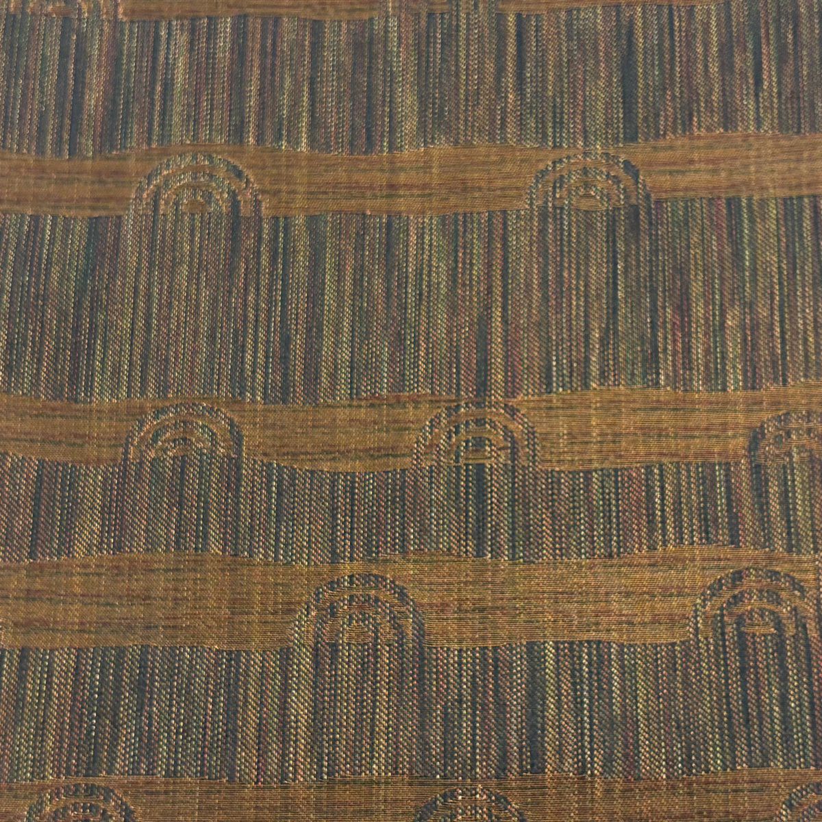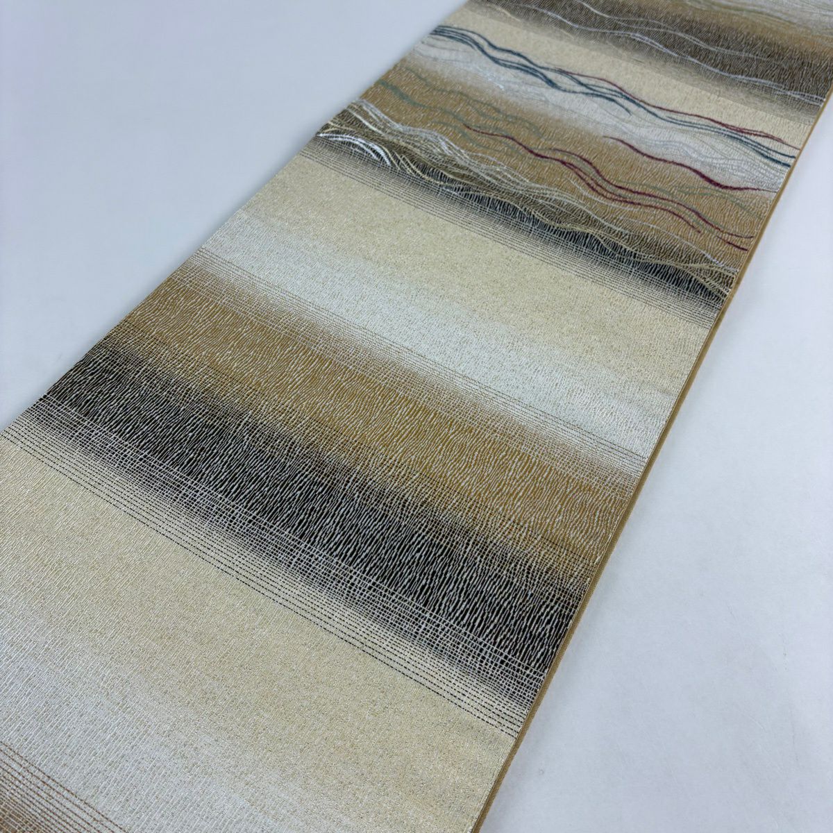 【美品】 袋帯 秀品 段縞 よろけ縞 金銀糸 箔 茶色 六通 正絹