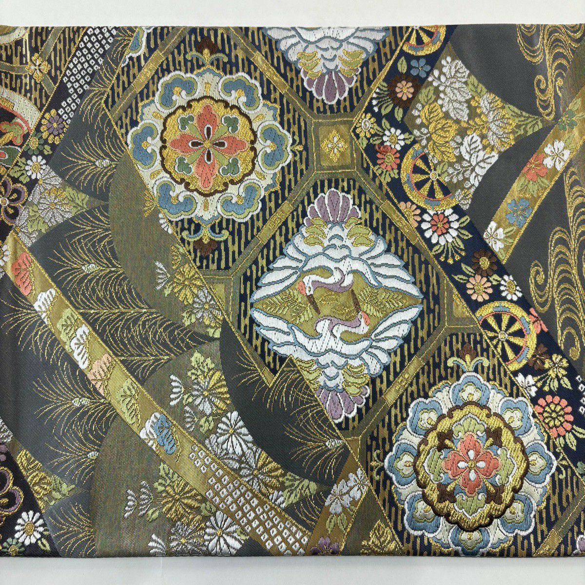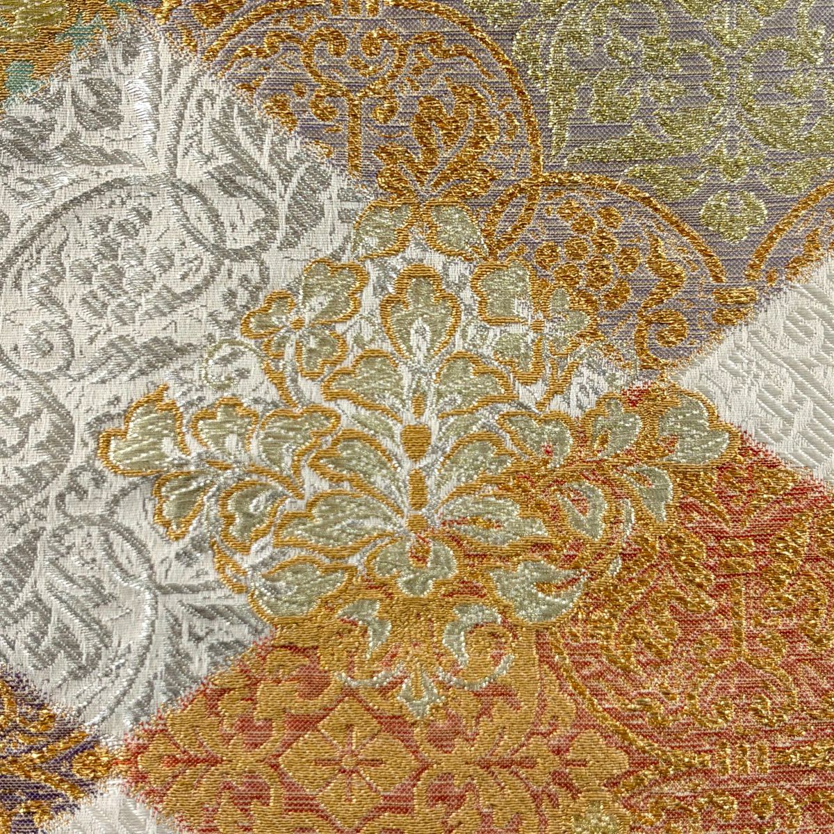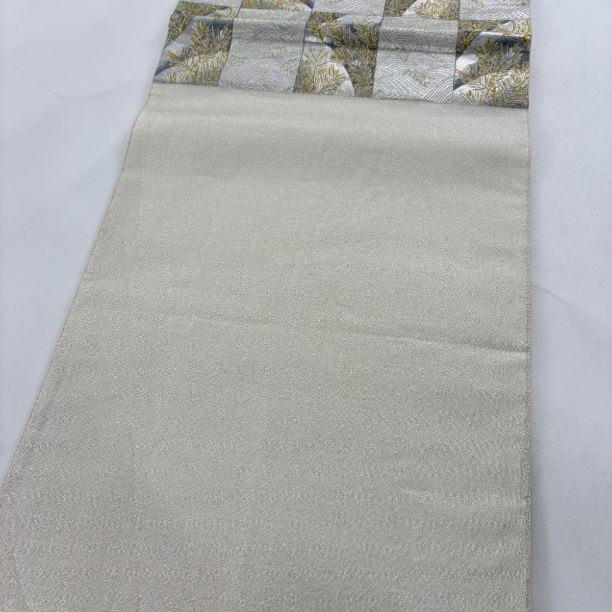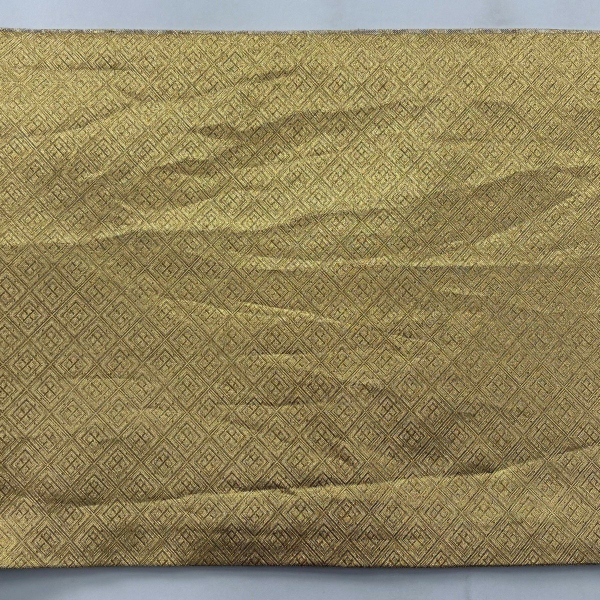 【美品】 袋帯 秀品 献上色紙市松文 金銀糸 箔 銀色 六通 正絹