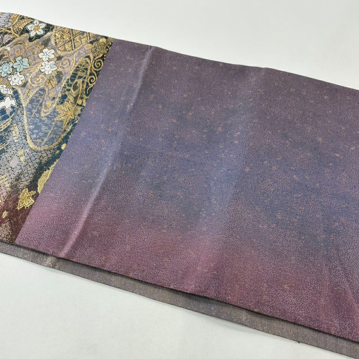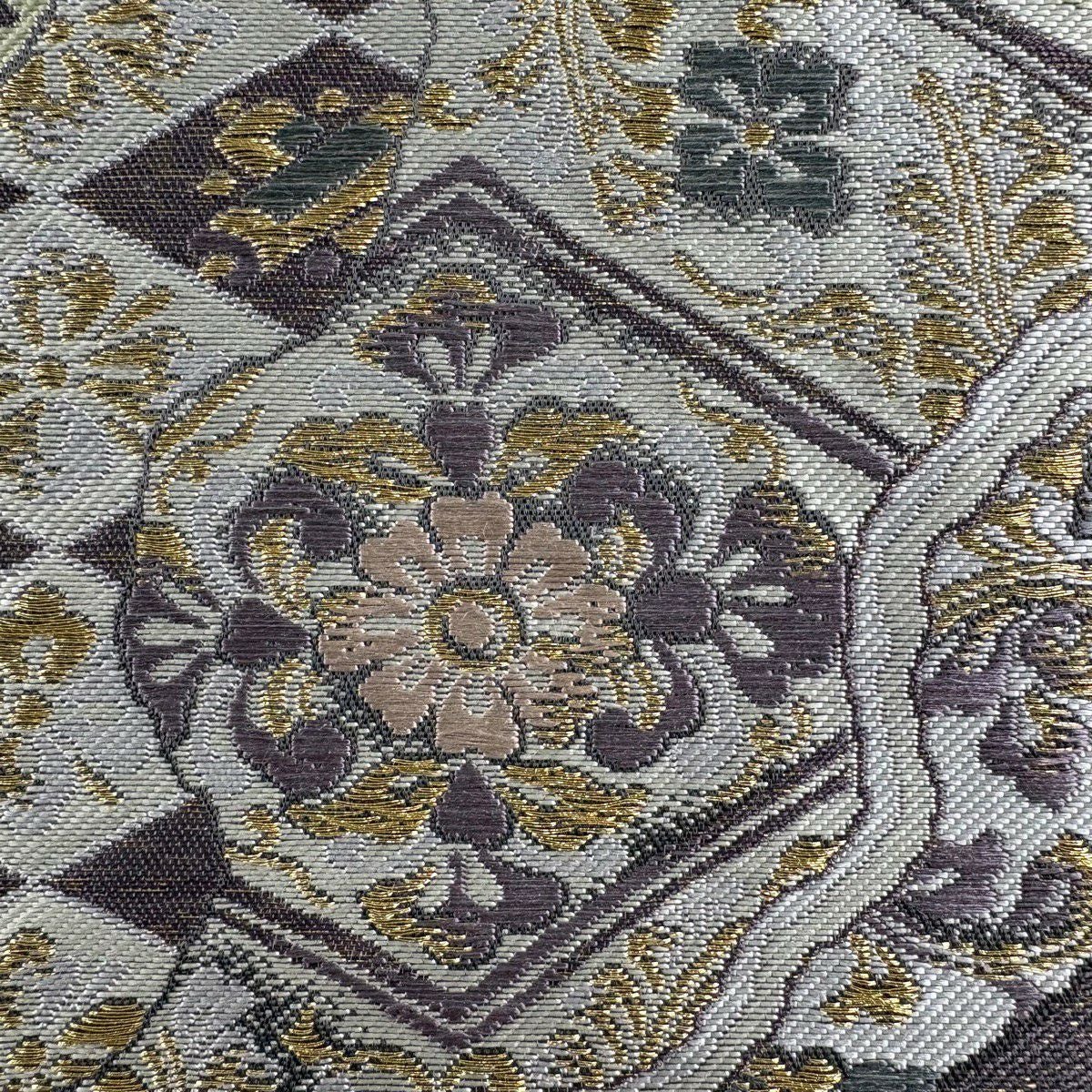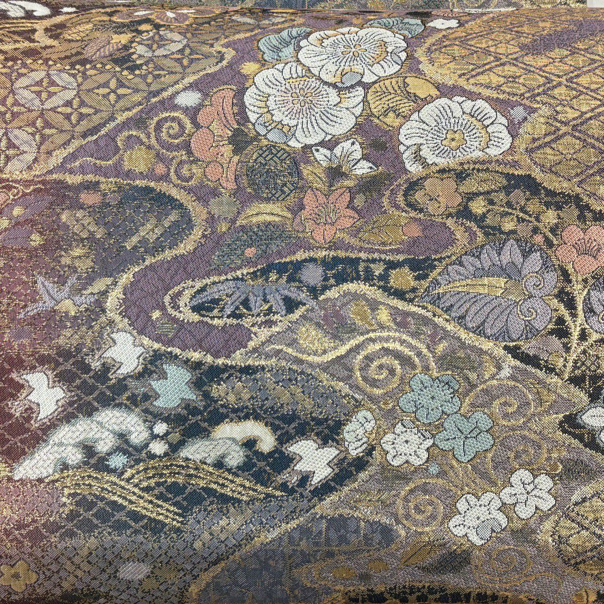 【美品】 袋帯 秀品 花菱 道長取 金糸 あhく 灰紫 六通 正絹