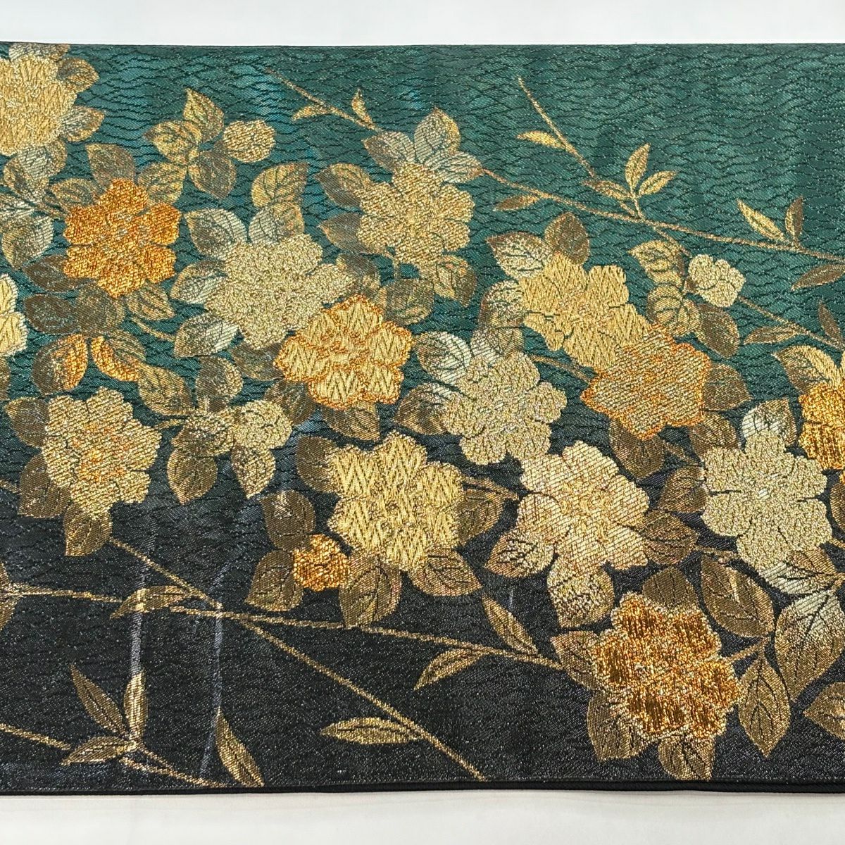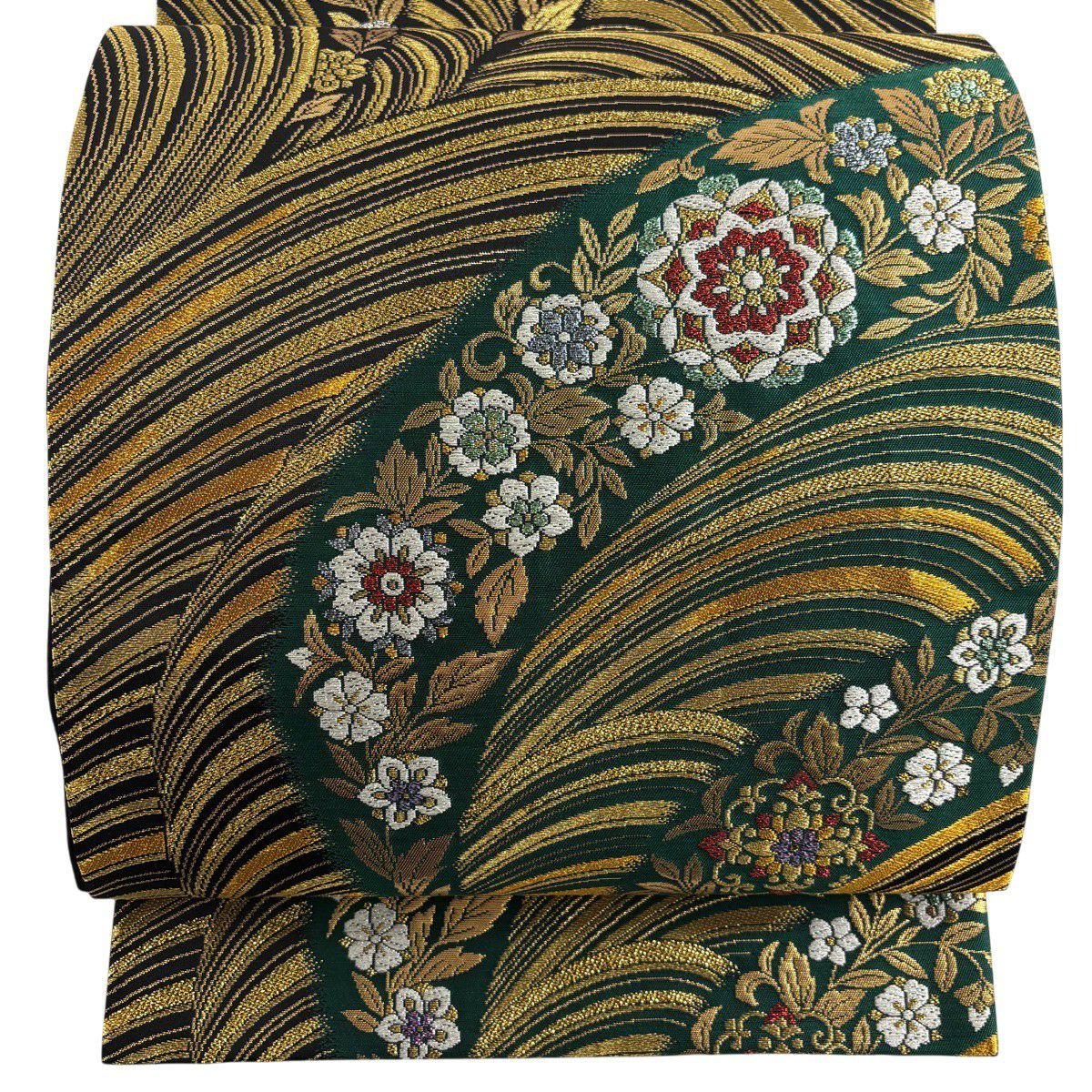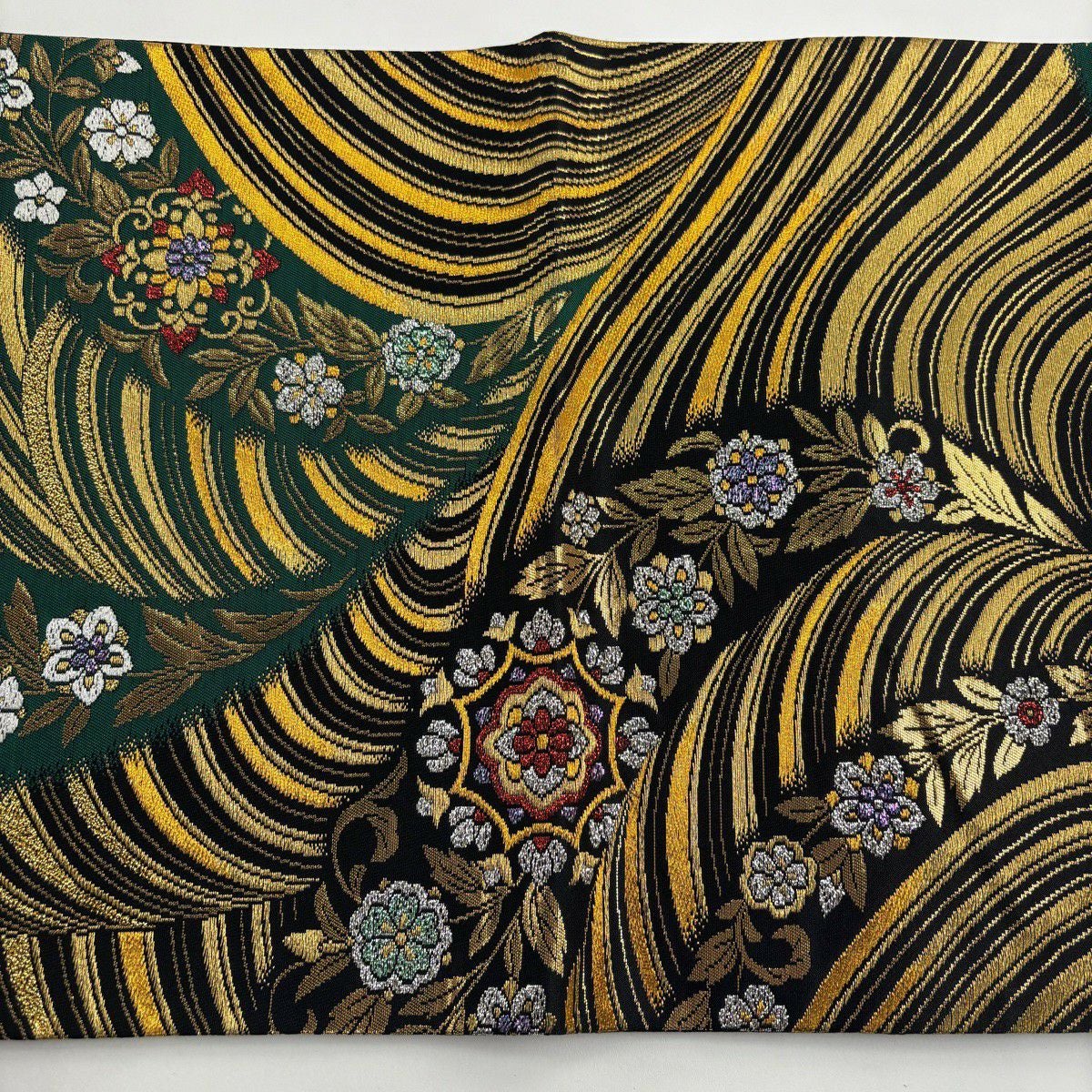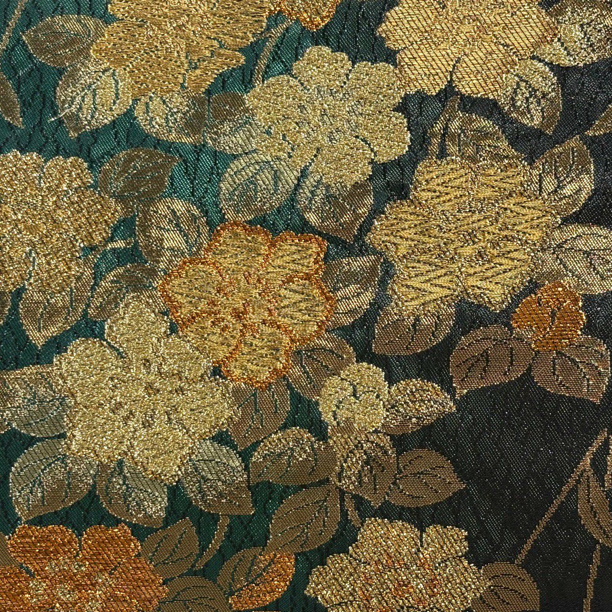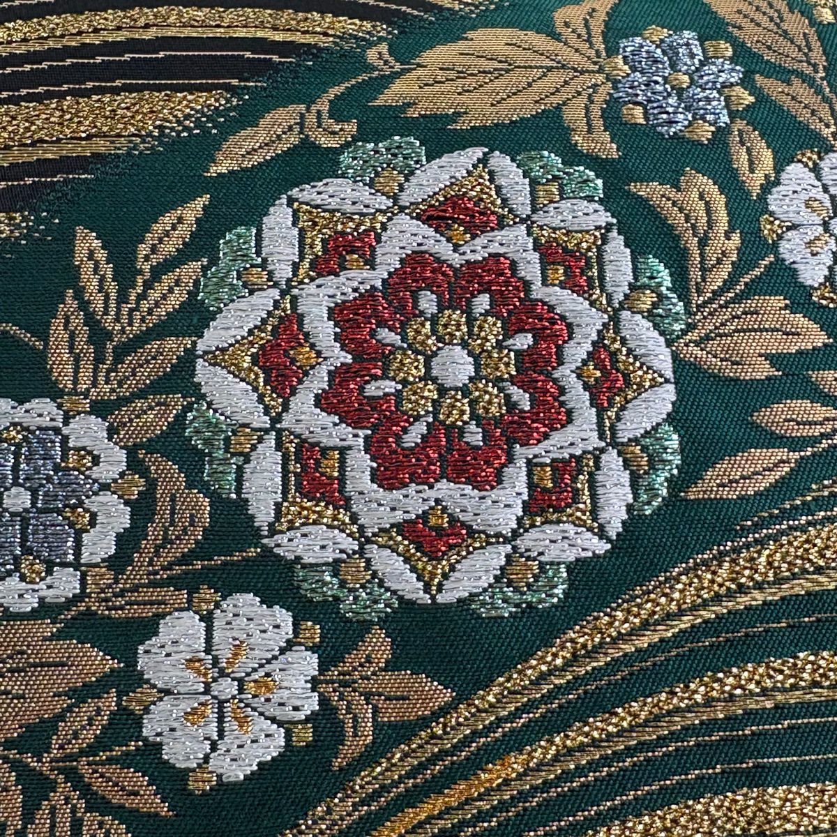 【美品】 袋帯 秀品 蜀江華文 花唐草 箔 金糸 深緑 六通 正絹