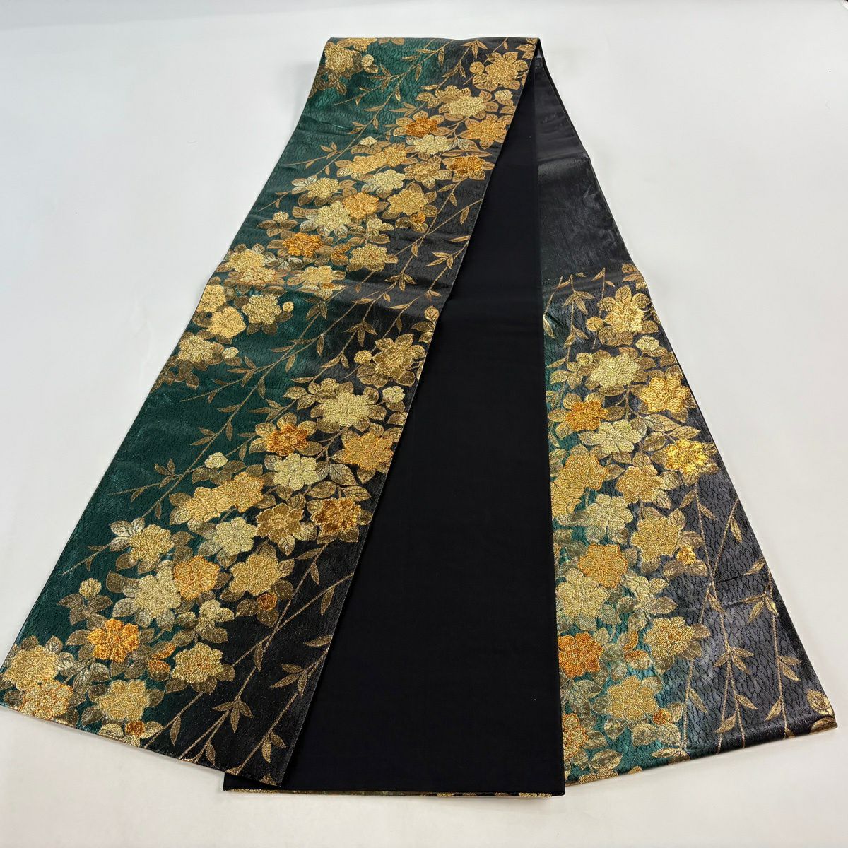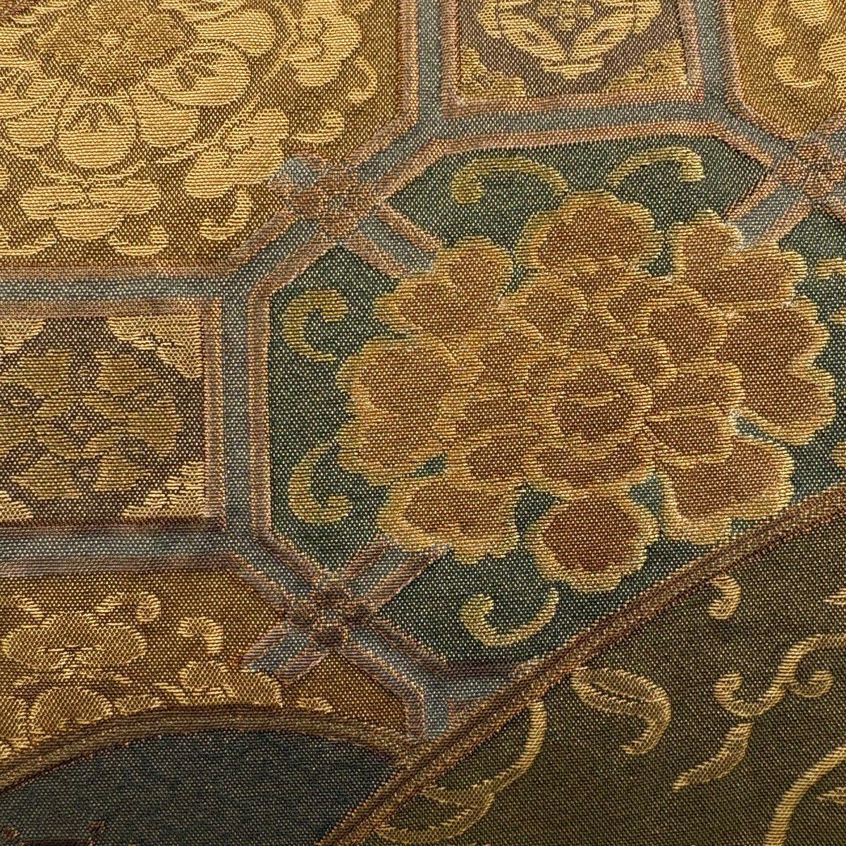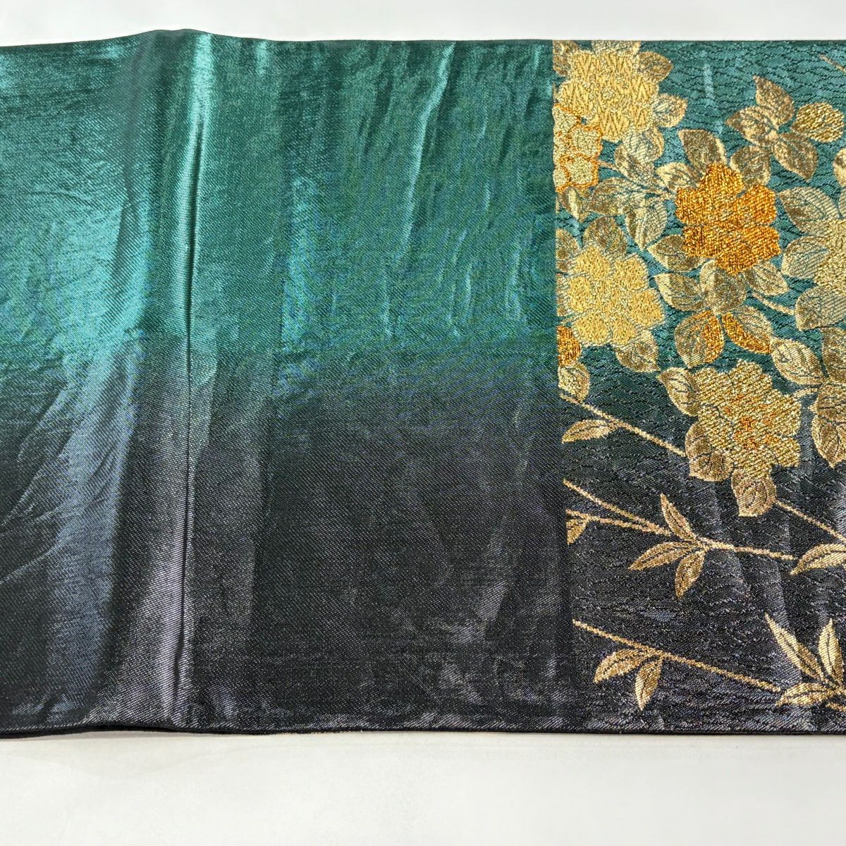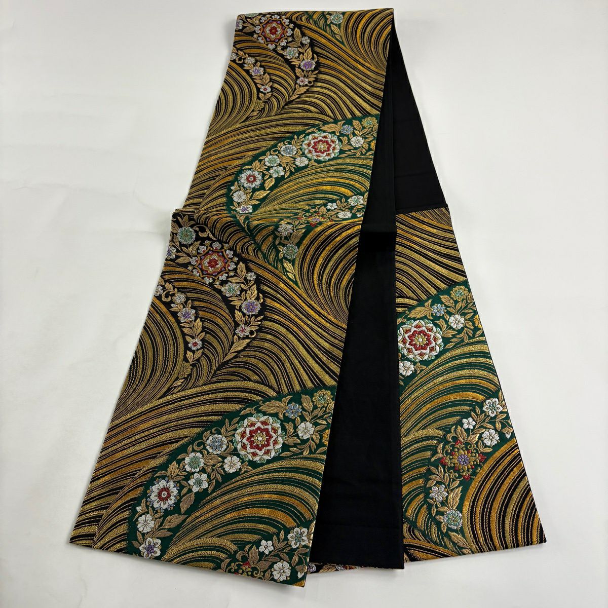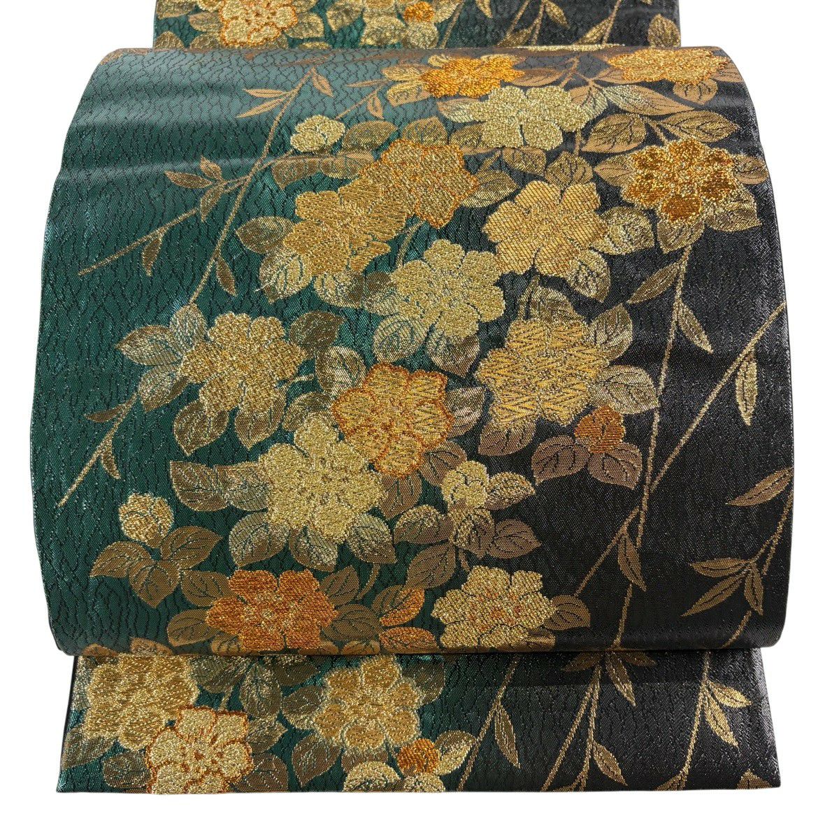 【美品】 袋帯 秀品 蜀江華文 花唐草 箔 金糸 深緑 六通 正絹