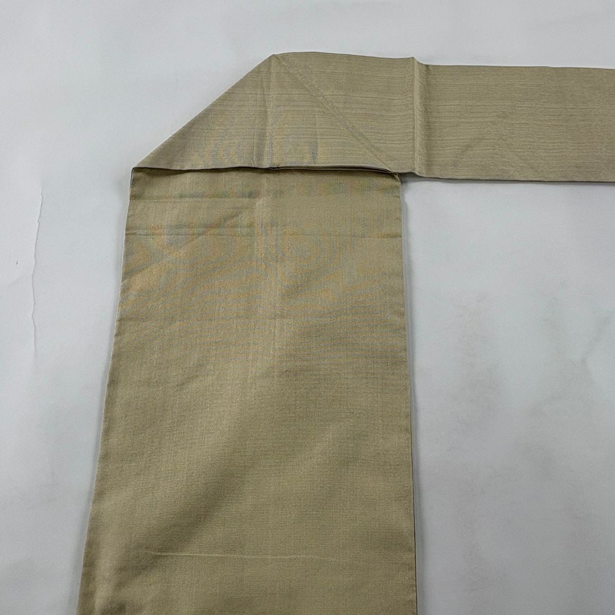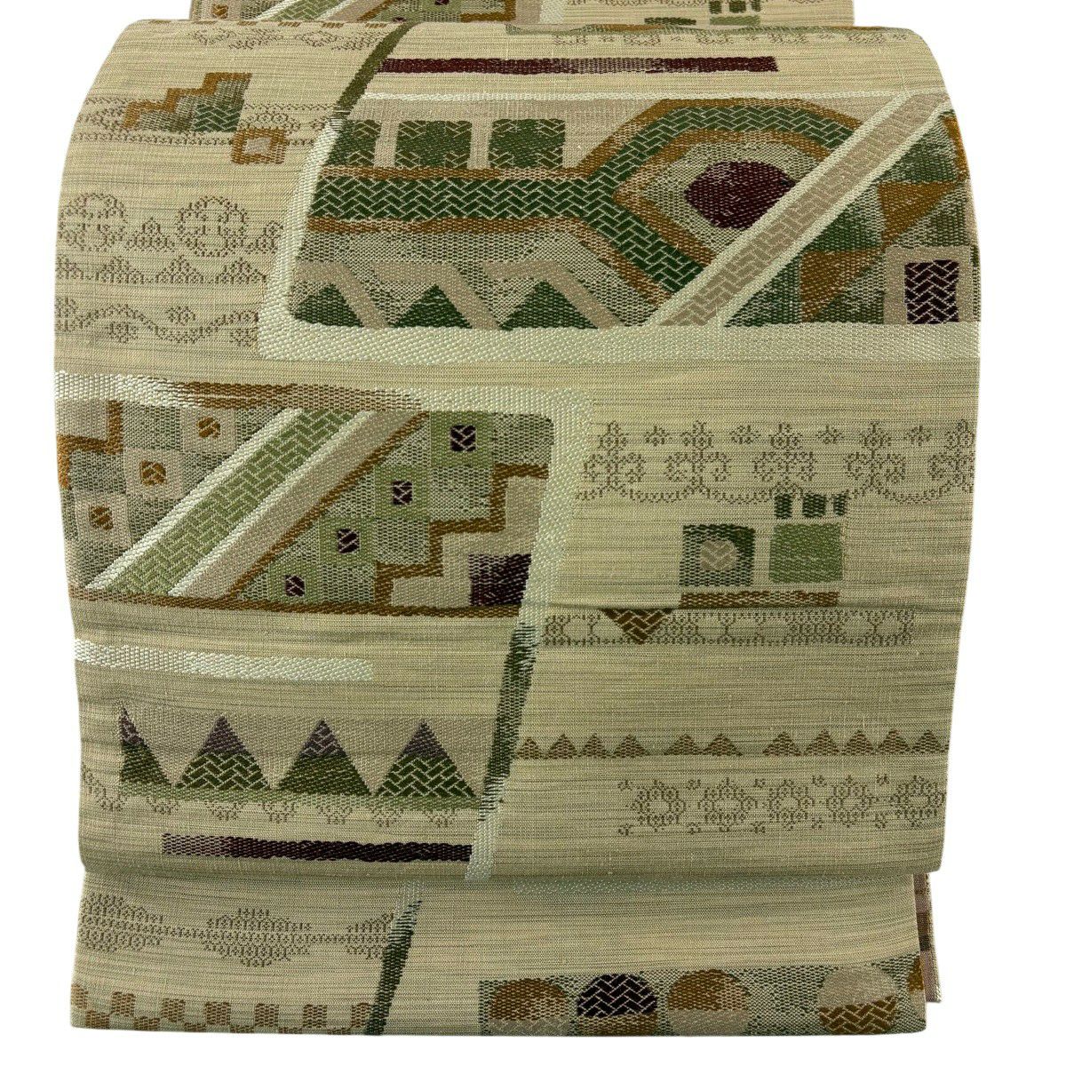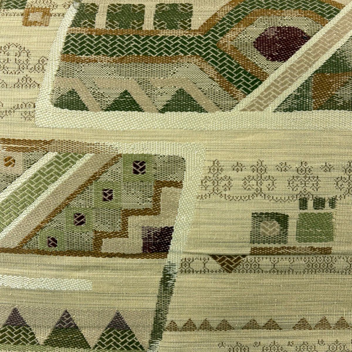 【美品】 袋帯 秀品 幾何学模様 銀通し ベージュ 全通 正絹
