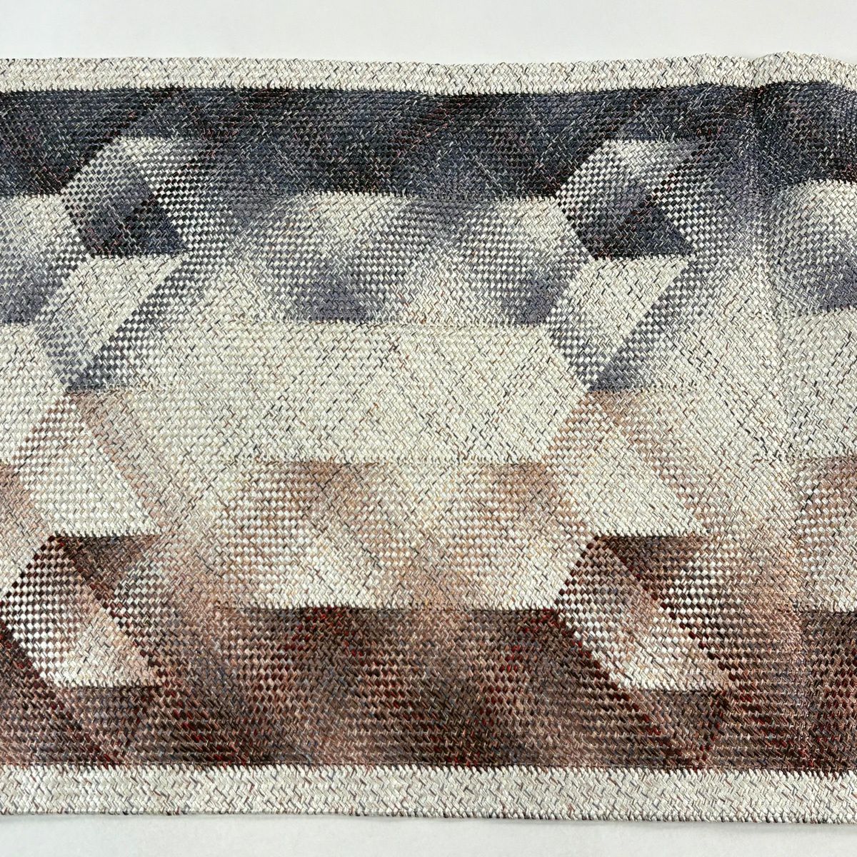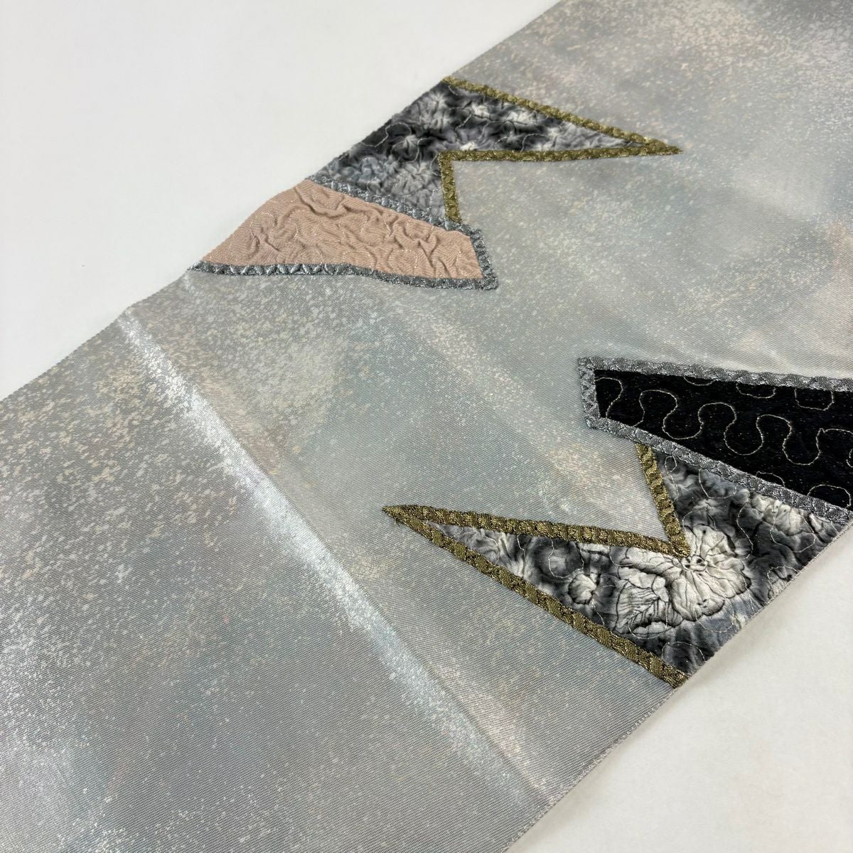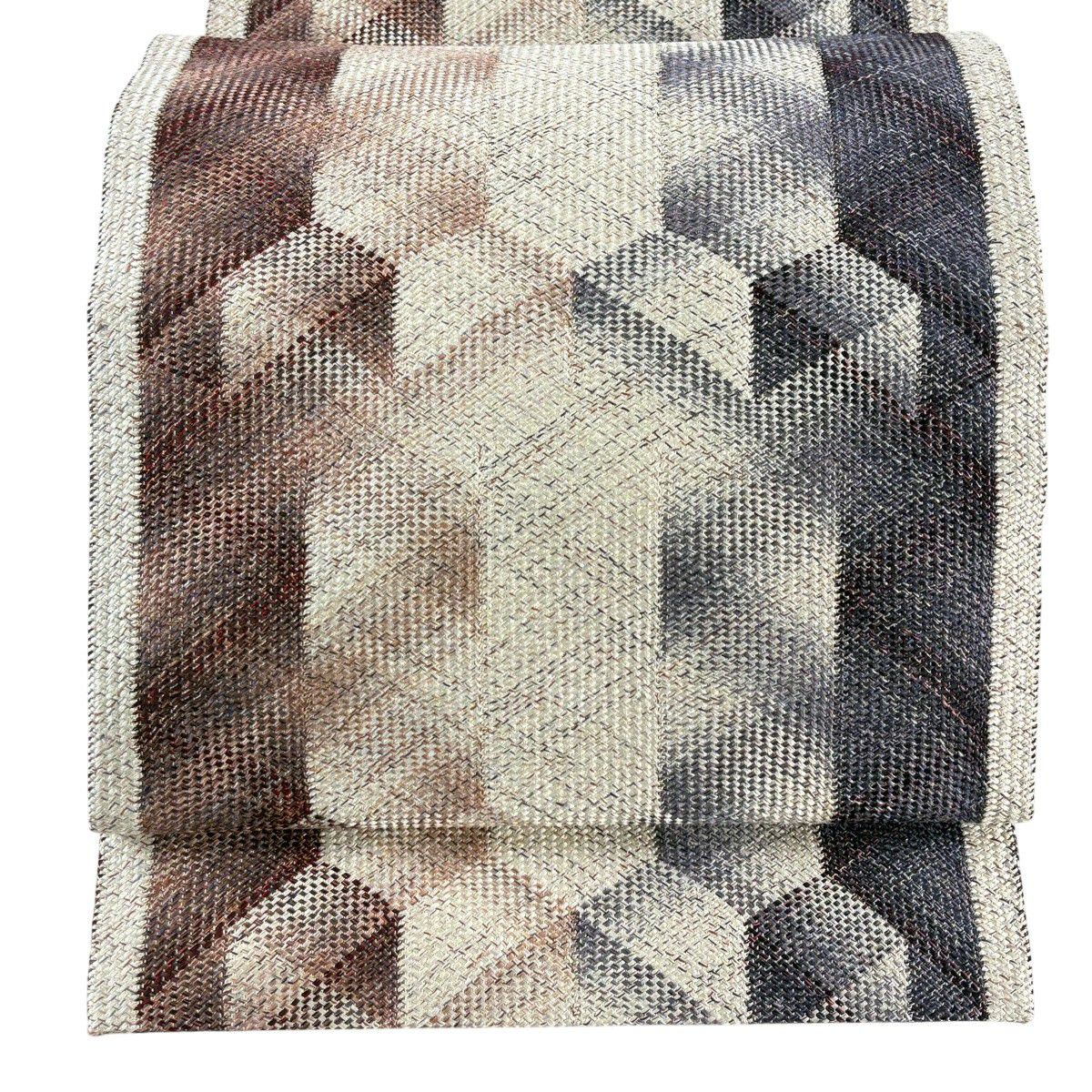 【美品】 袋帯 秀品 幾何学模様 銀通し ベージュ 全通 正絹