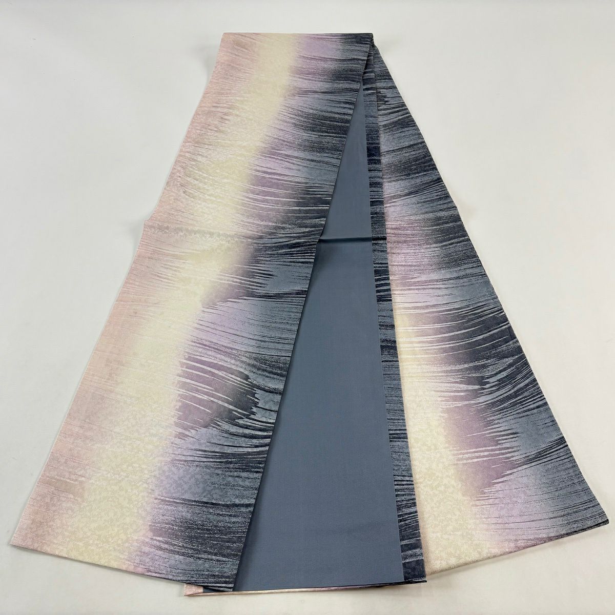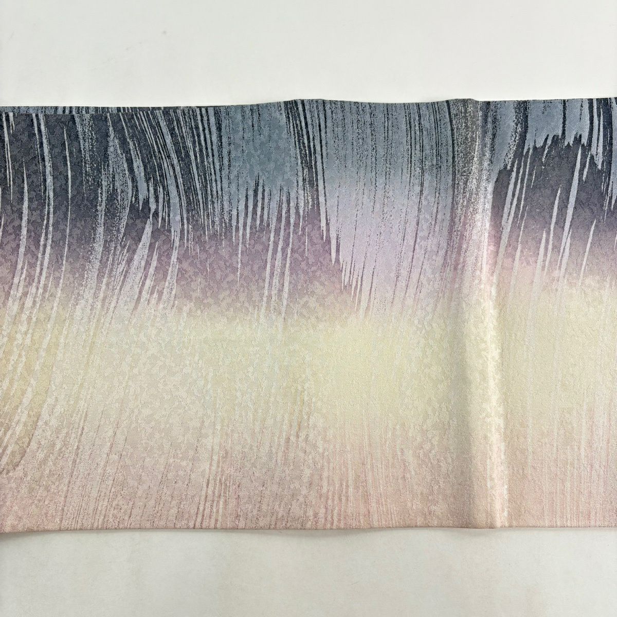 袋帯 秀品 落款あり 源氏香 流水 ぼかし 縮緬 青紫 全通 正絹