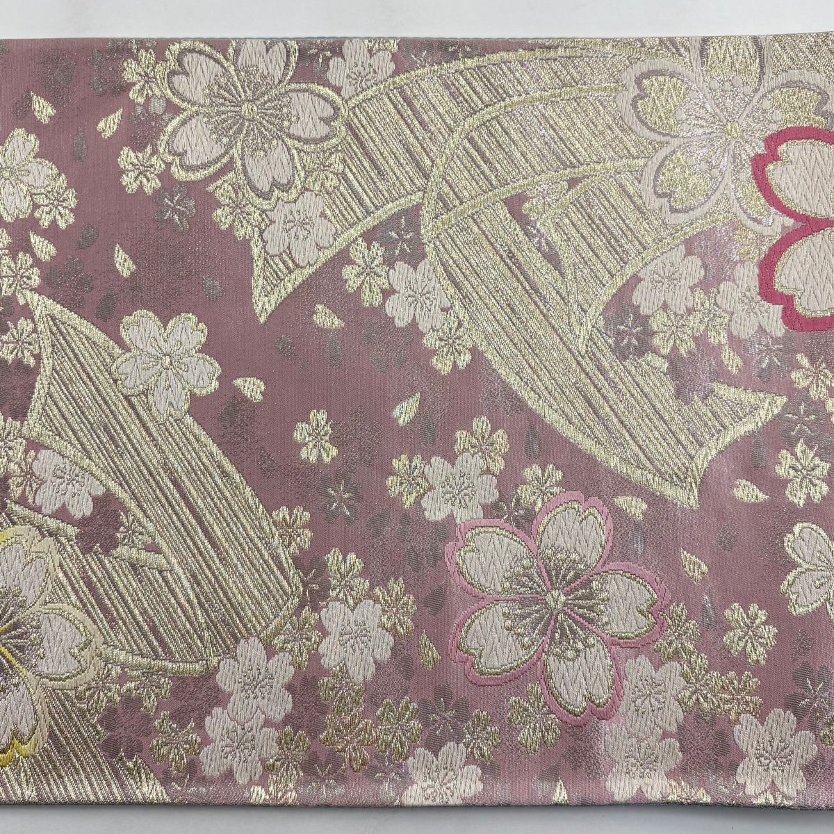 【美品】 袋帯 秀品 桜 束ね熨斗 金糸 箔 ピンク 六通 正絹
