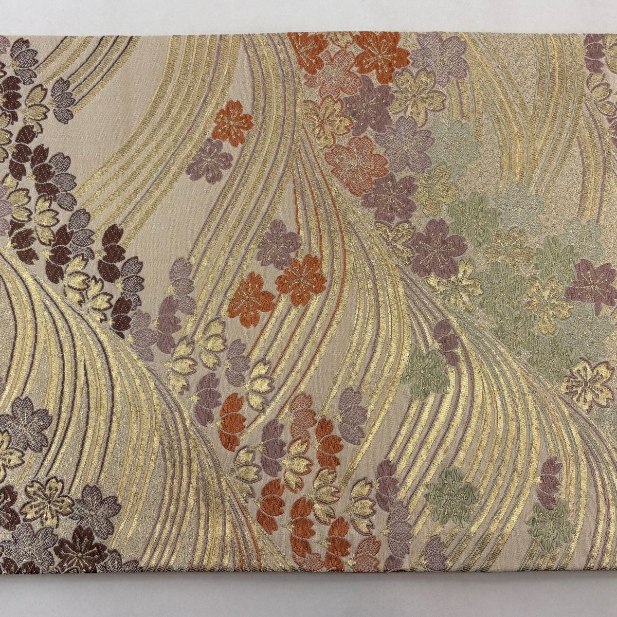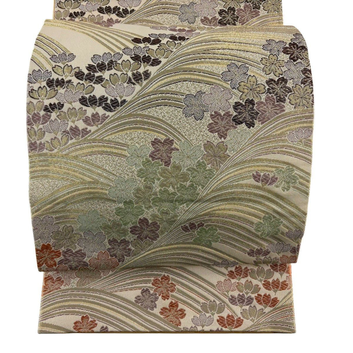 【美品】 袋帯 秀品 松 桜 唐織 金糸 ベージュ 六通 正絹