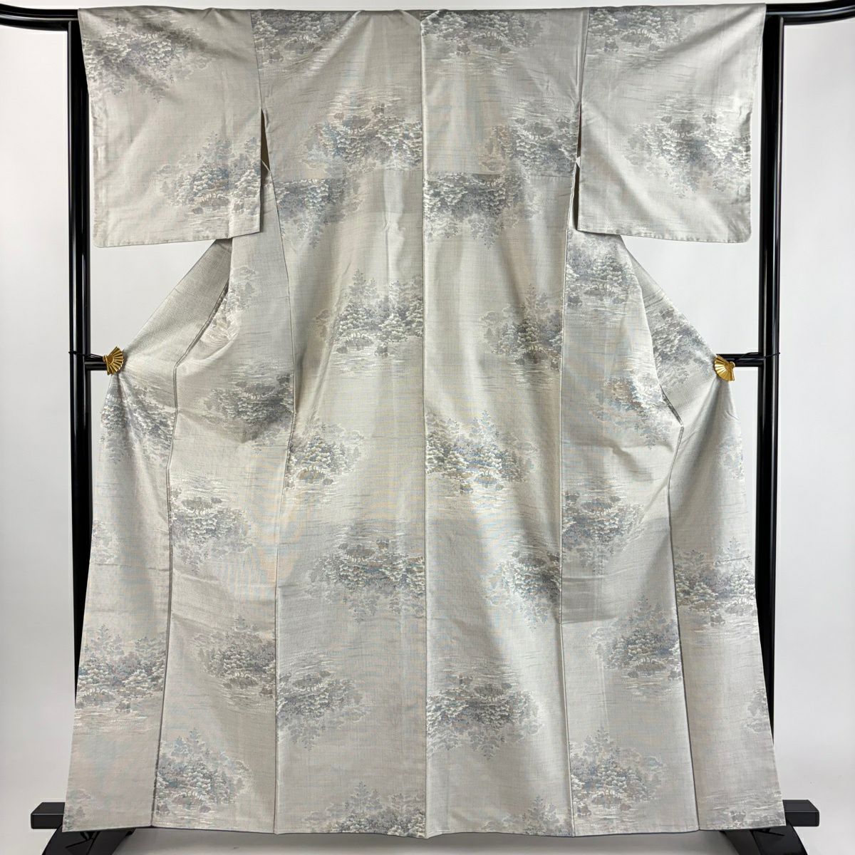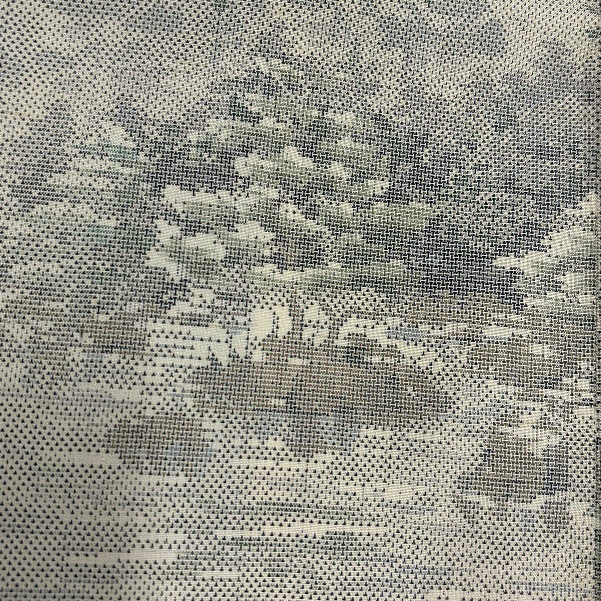 紬 身丈163cm 裄丈63.5cm S 袷 樹木 灰白 正絹 秀品