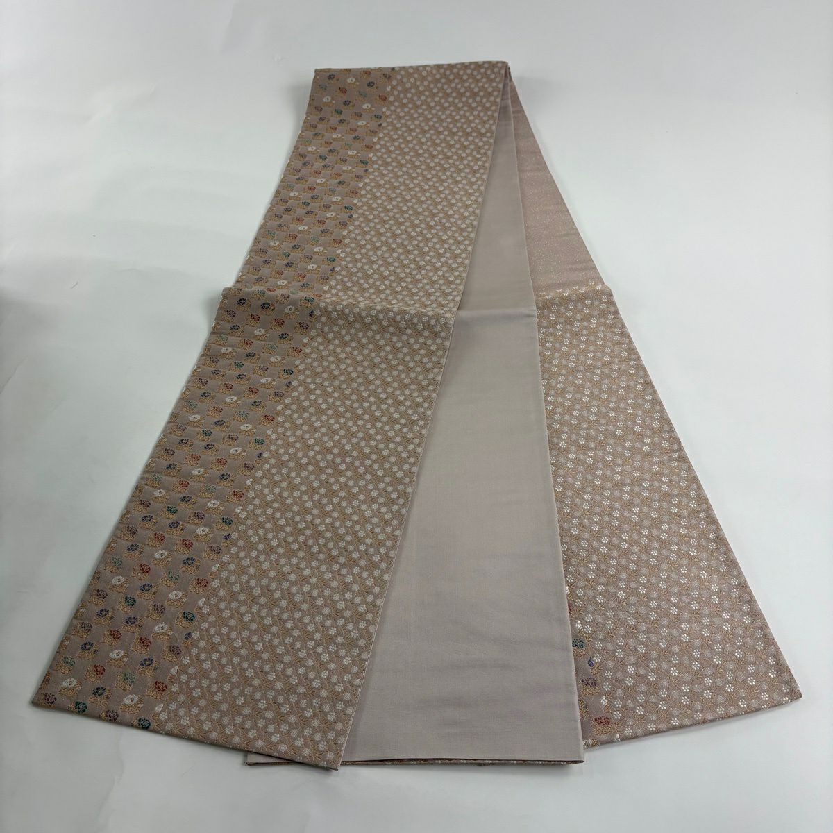 【美品】 袋帯 秀品 小花 金糸 ピンクベージュ 六通 正絹