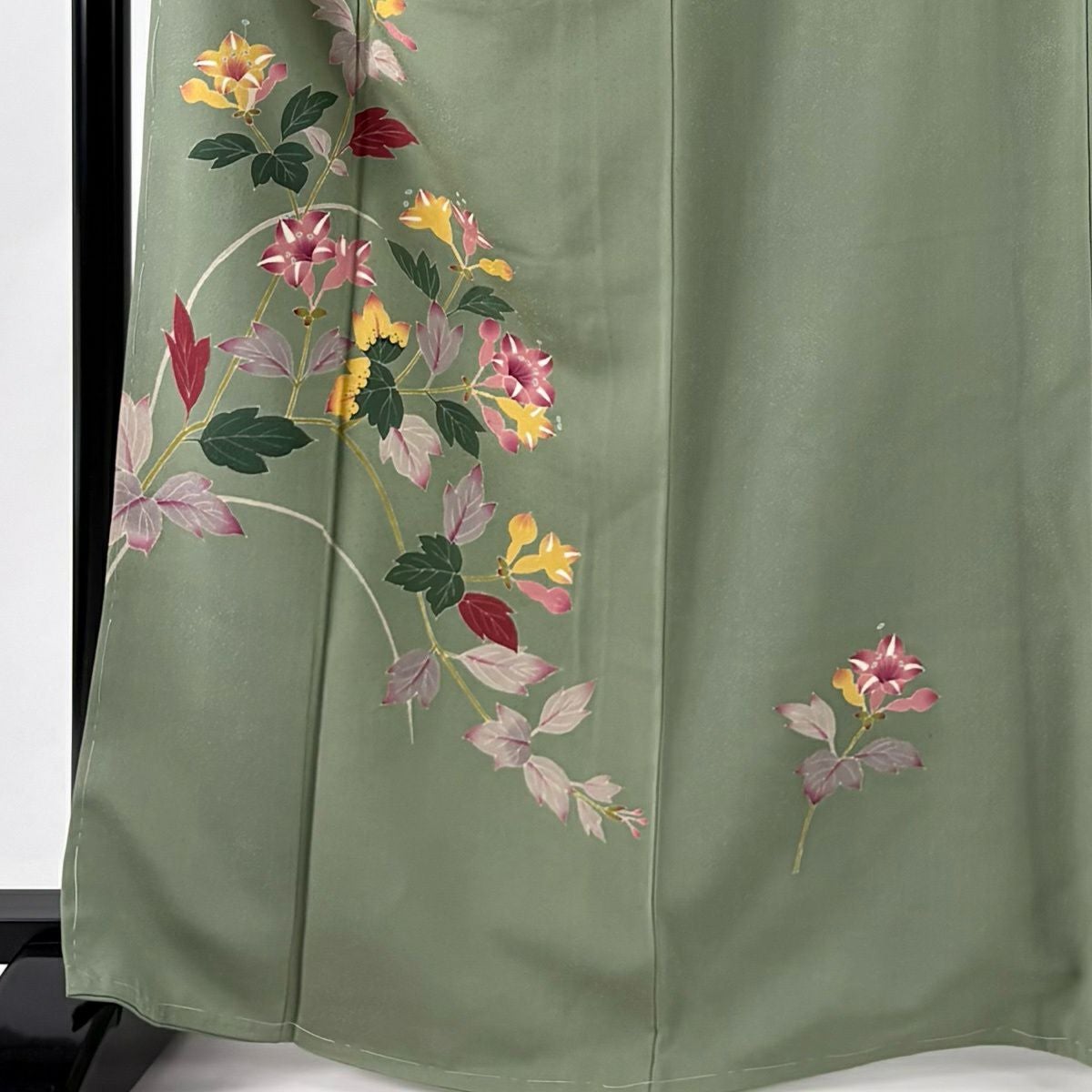 付下げ 身丈168cm 裄丈65cm M 袷 枝花 薄緑 正絹 秀品