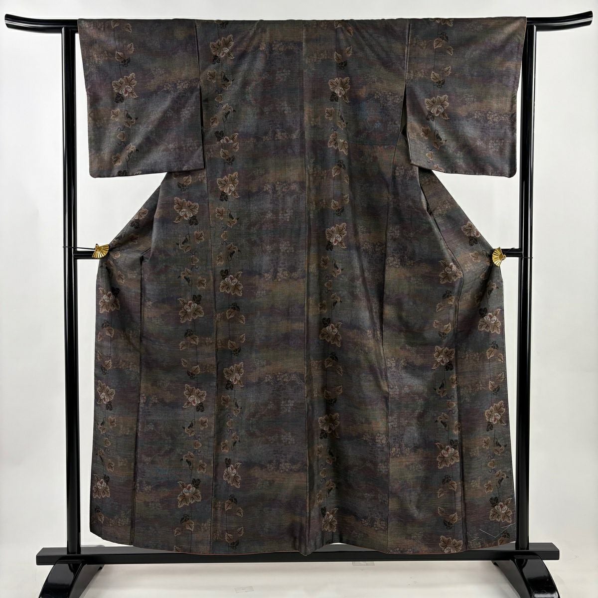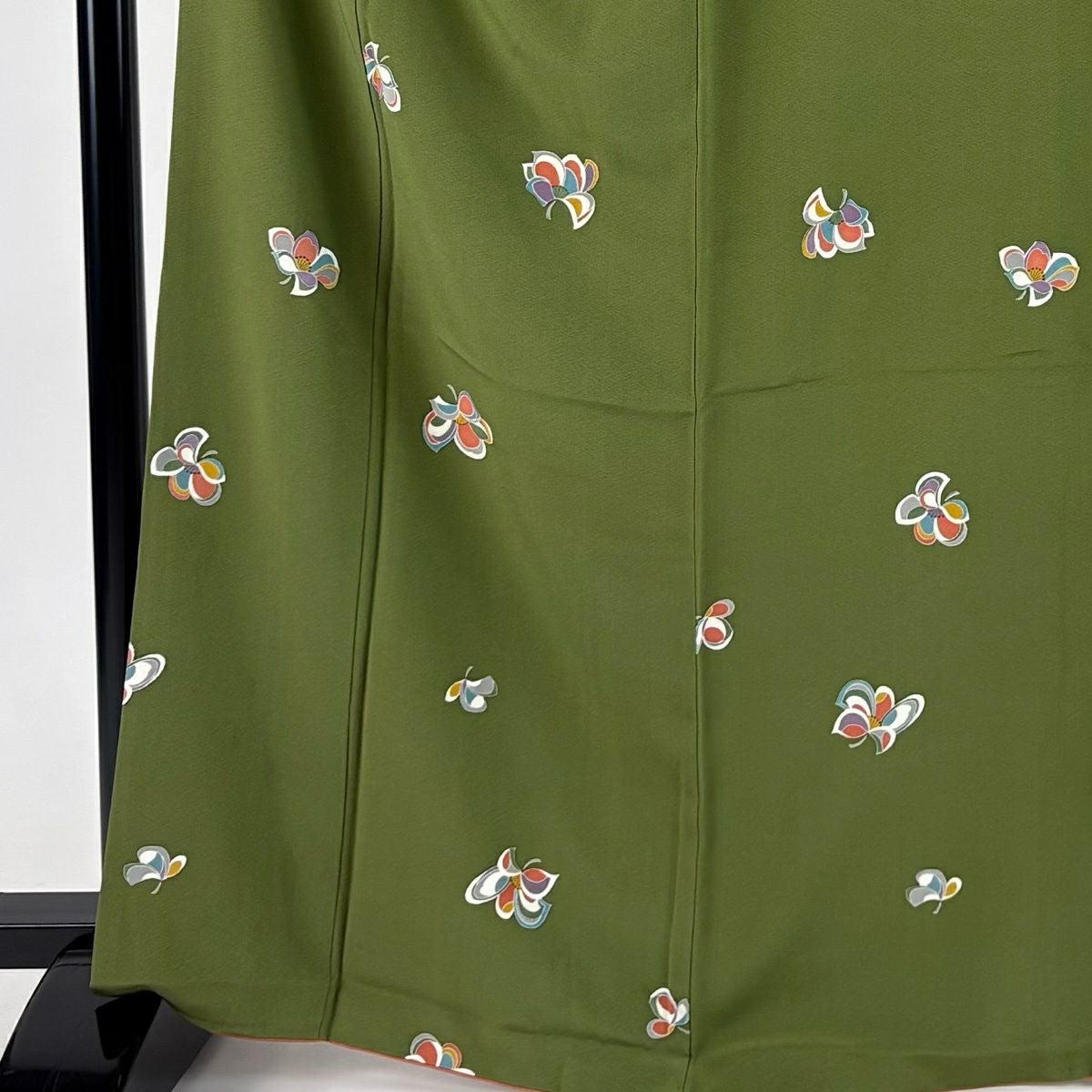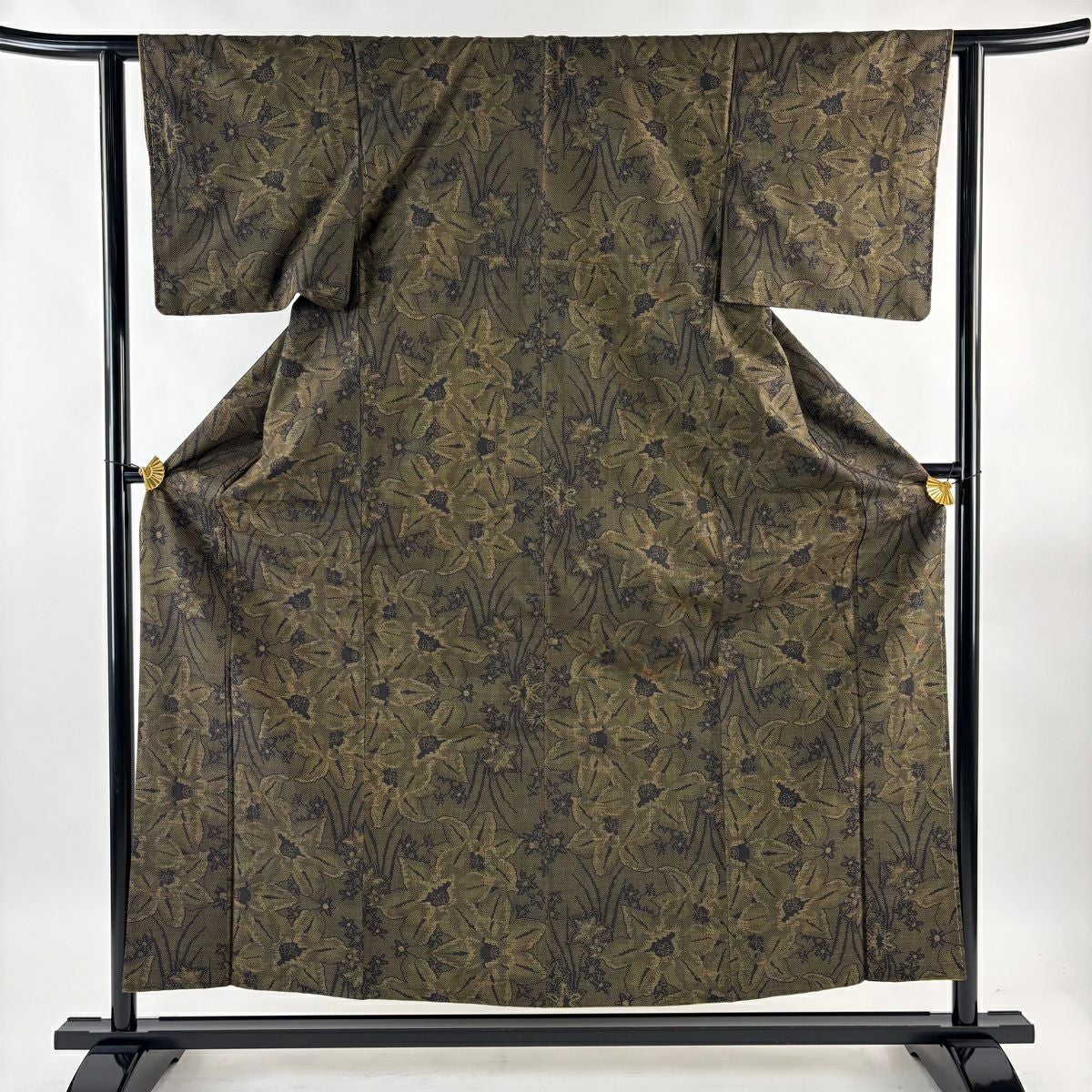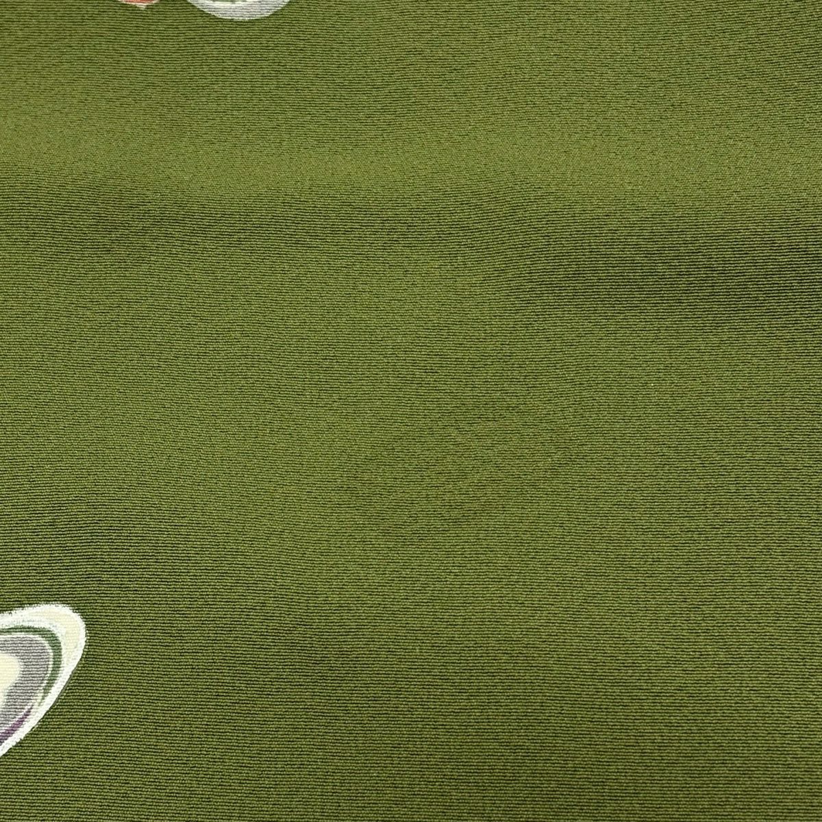 紬 身丈156.5cm 裄丈61.5cm S 袷 花 茶緑色 正絹 秀品