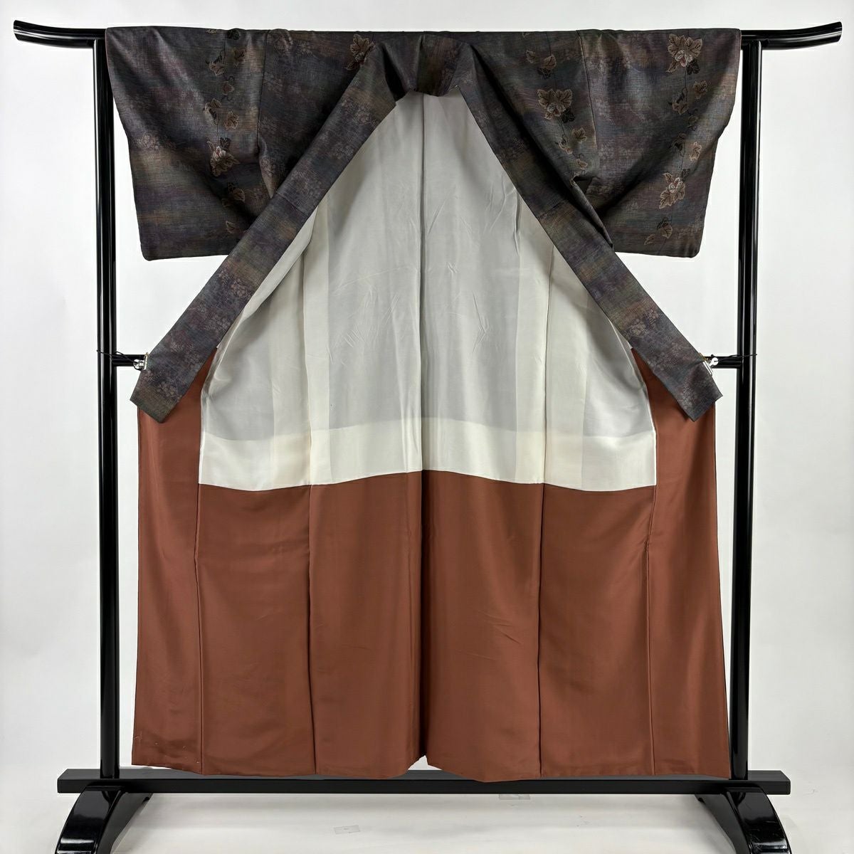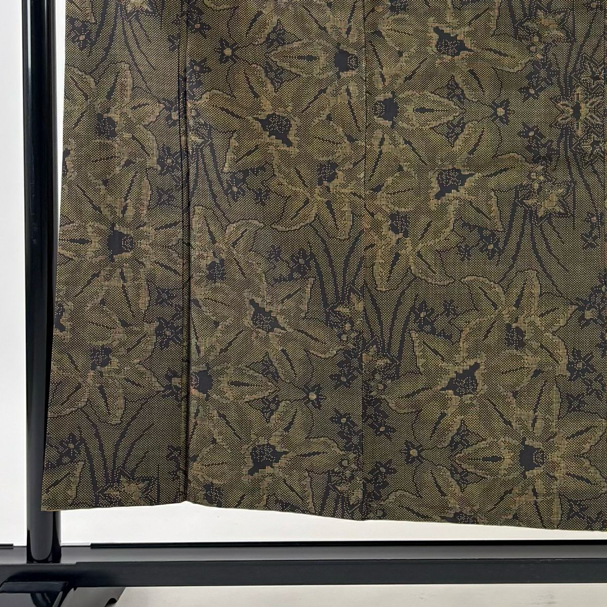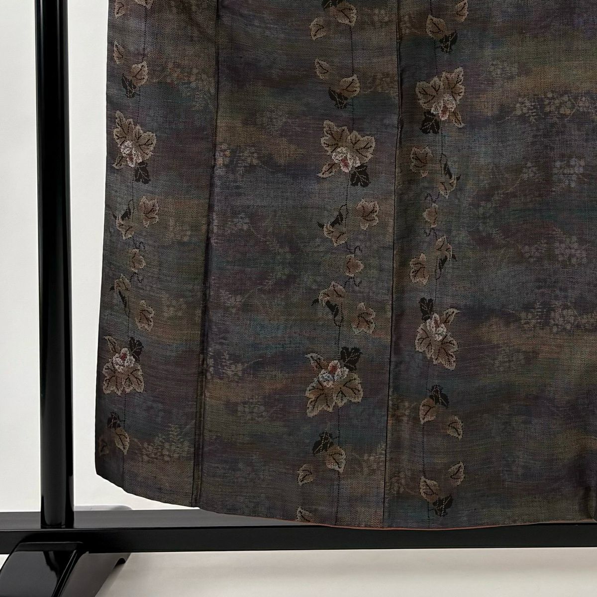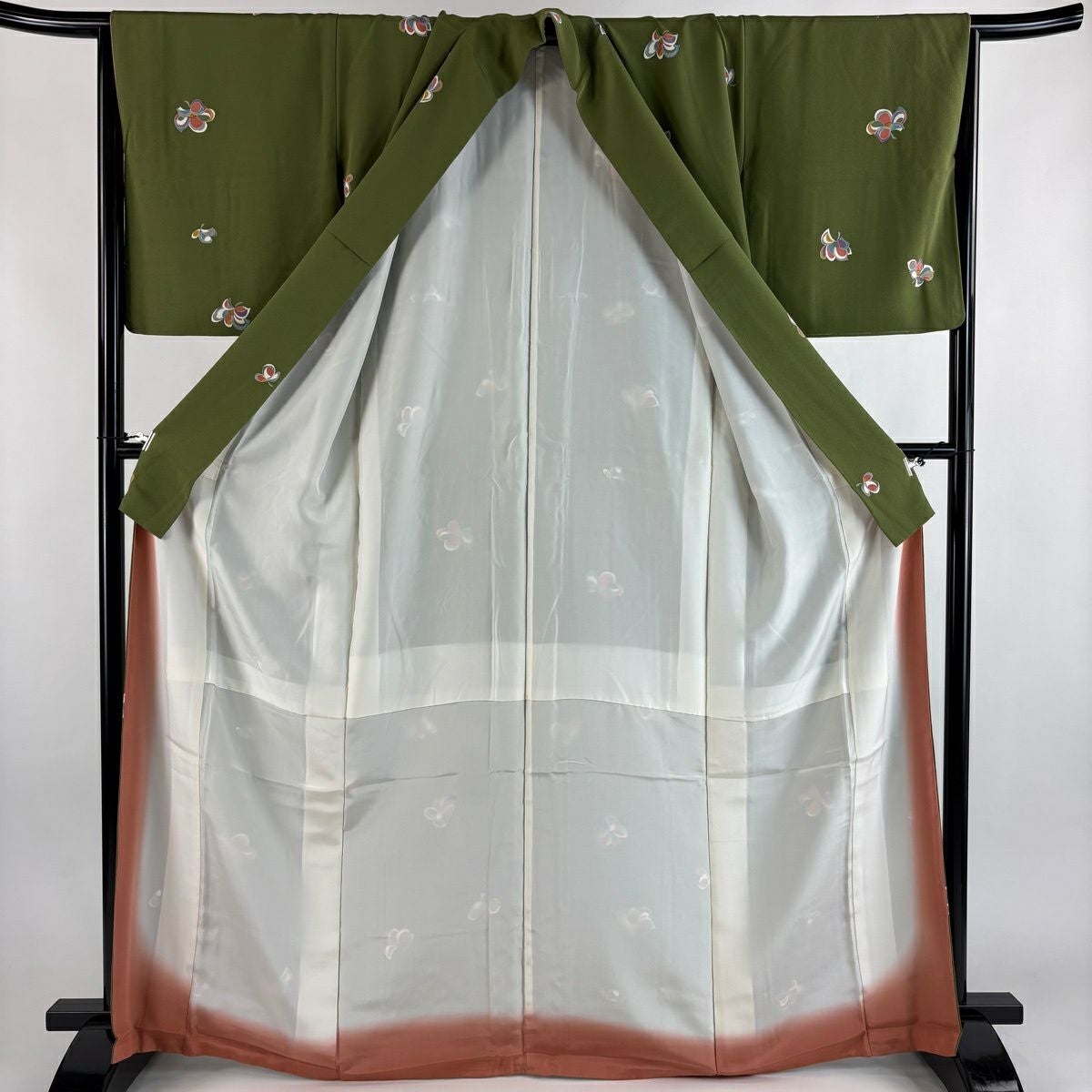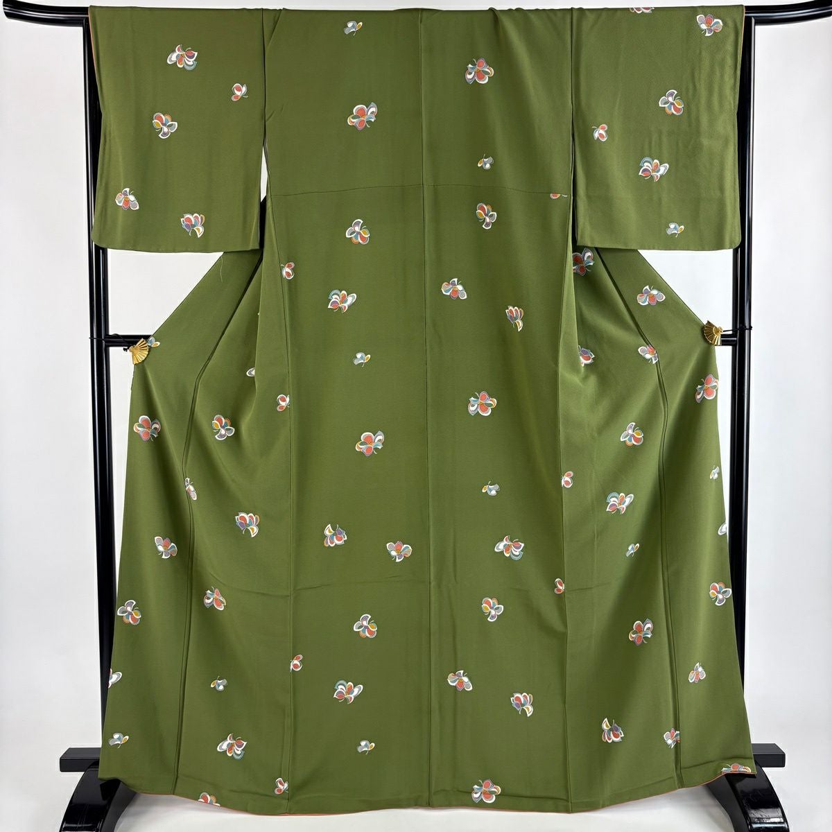 紬 身丈156.5cm 裄丈61.5cm S 袷 花 茶緑色 正絹 秀品