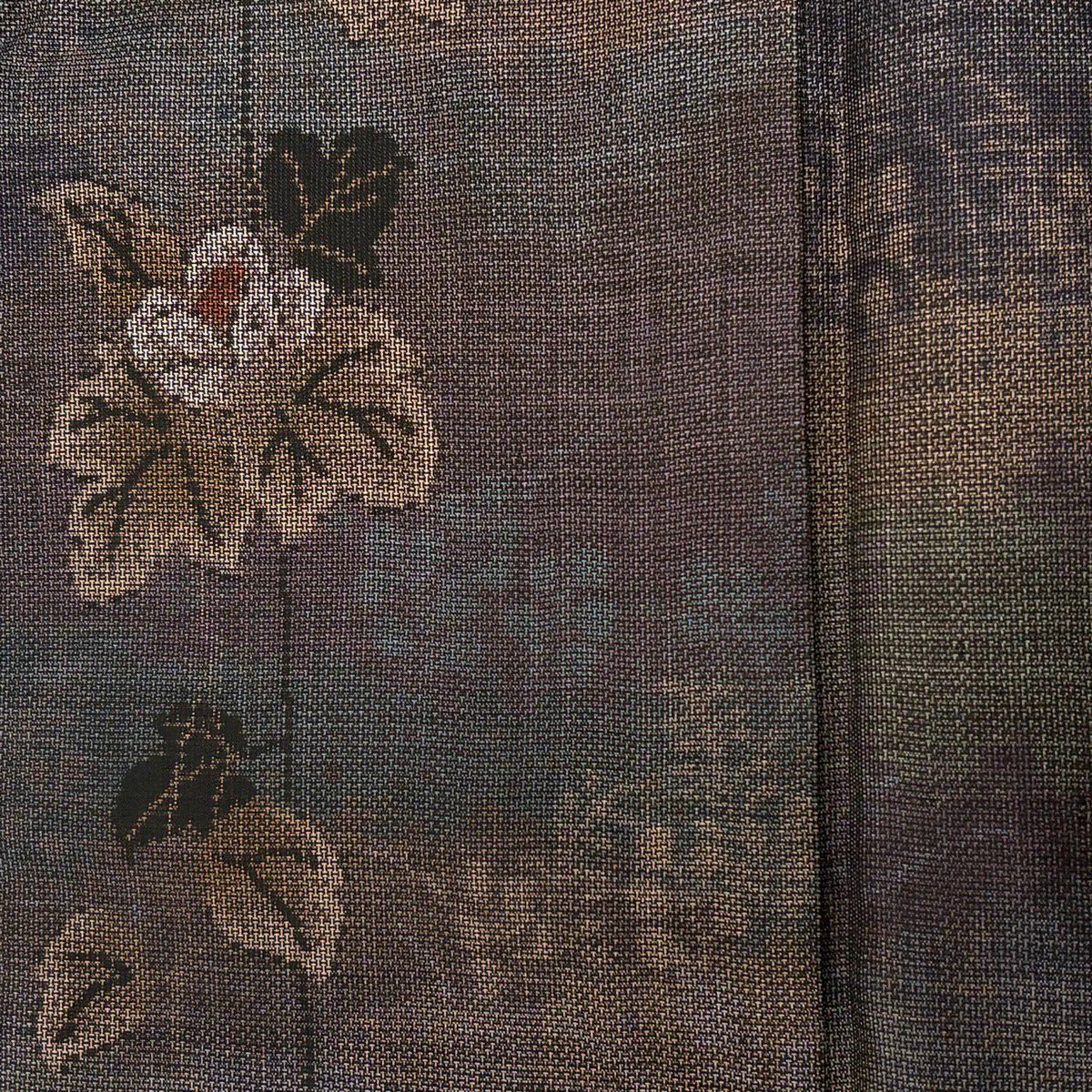 紬 身丈157cm 裄丈62.5cm S 袷 草花 灰紫 正絹 秀品