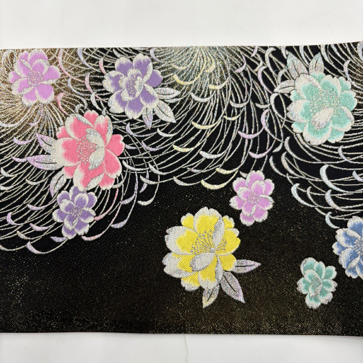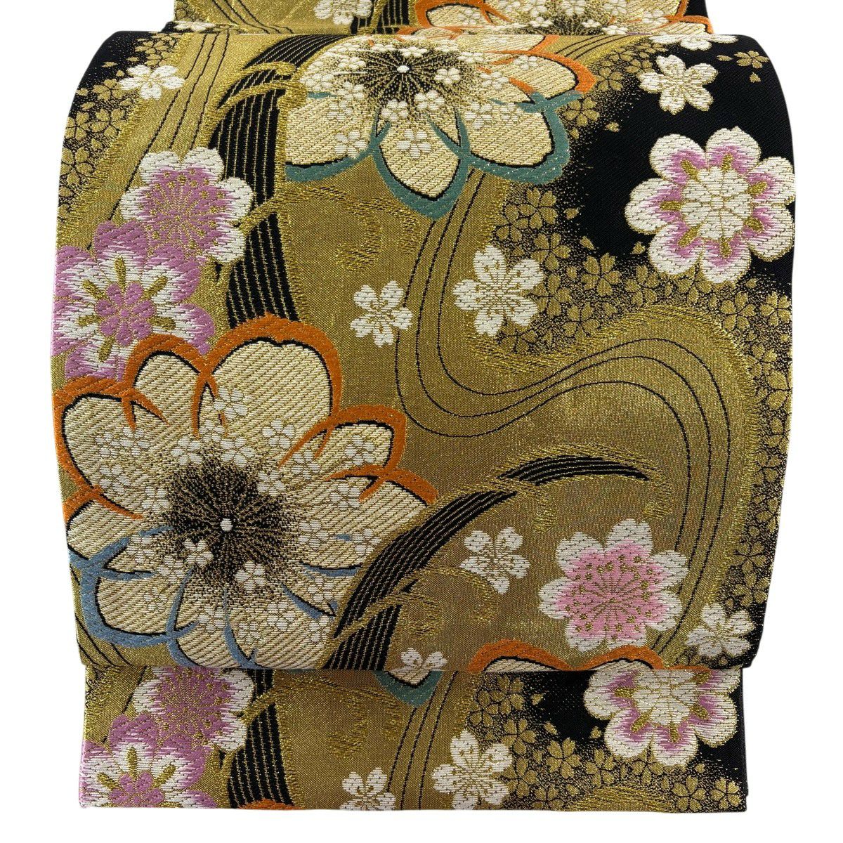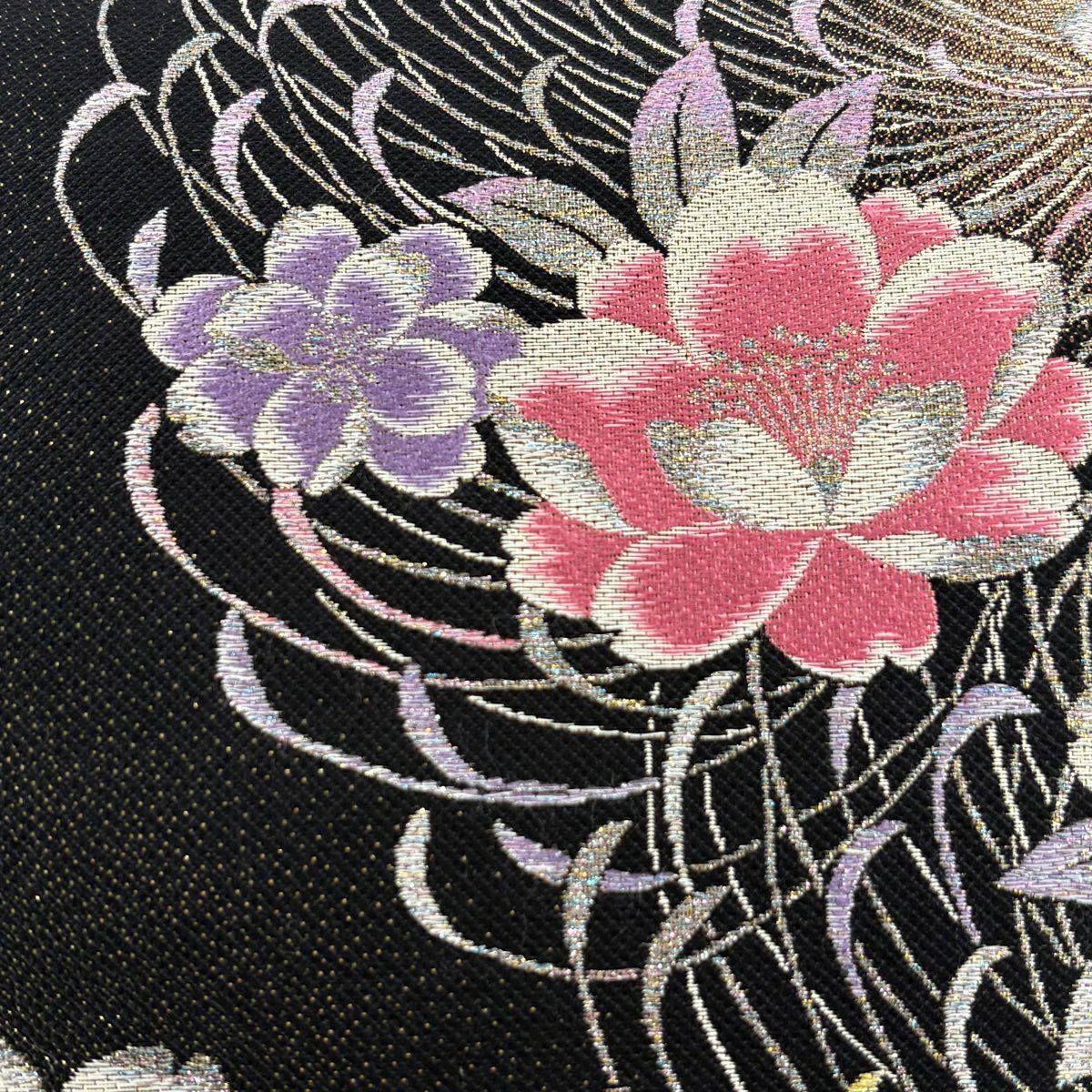 【美品】 袋帯 秀品 メルヘン 桜 乱菊 箔 銀糸 黒 六通 正絹