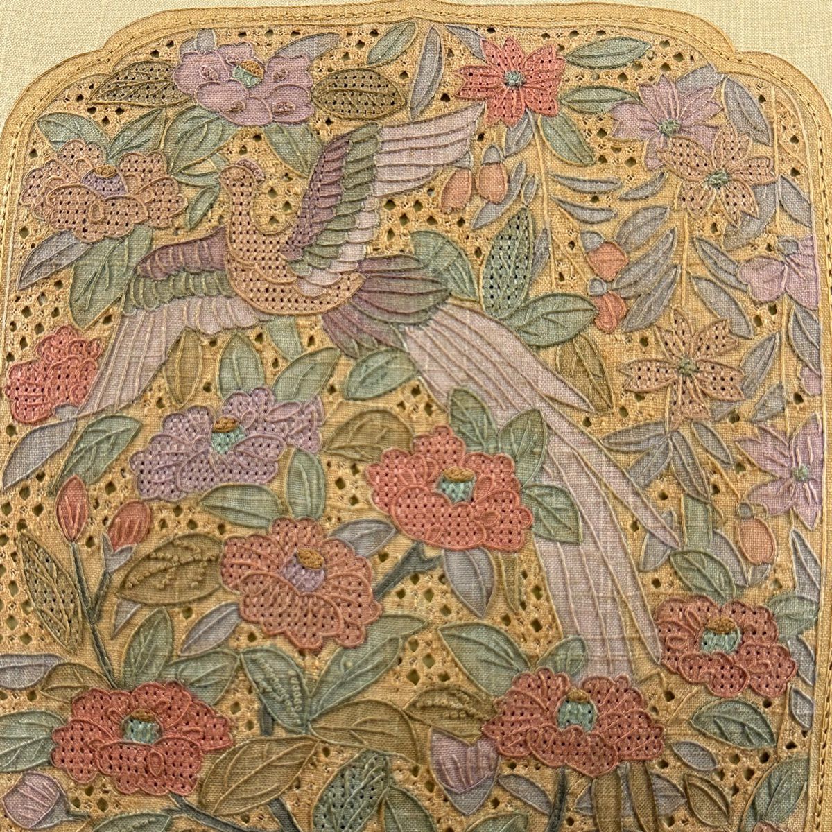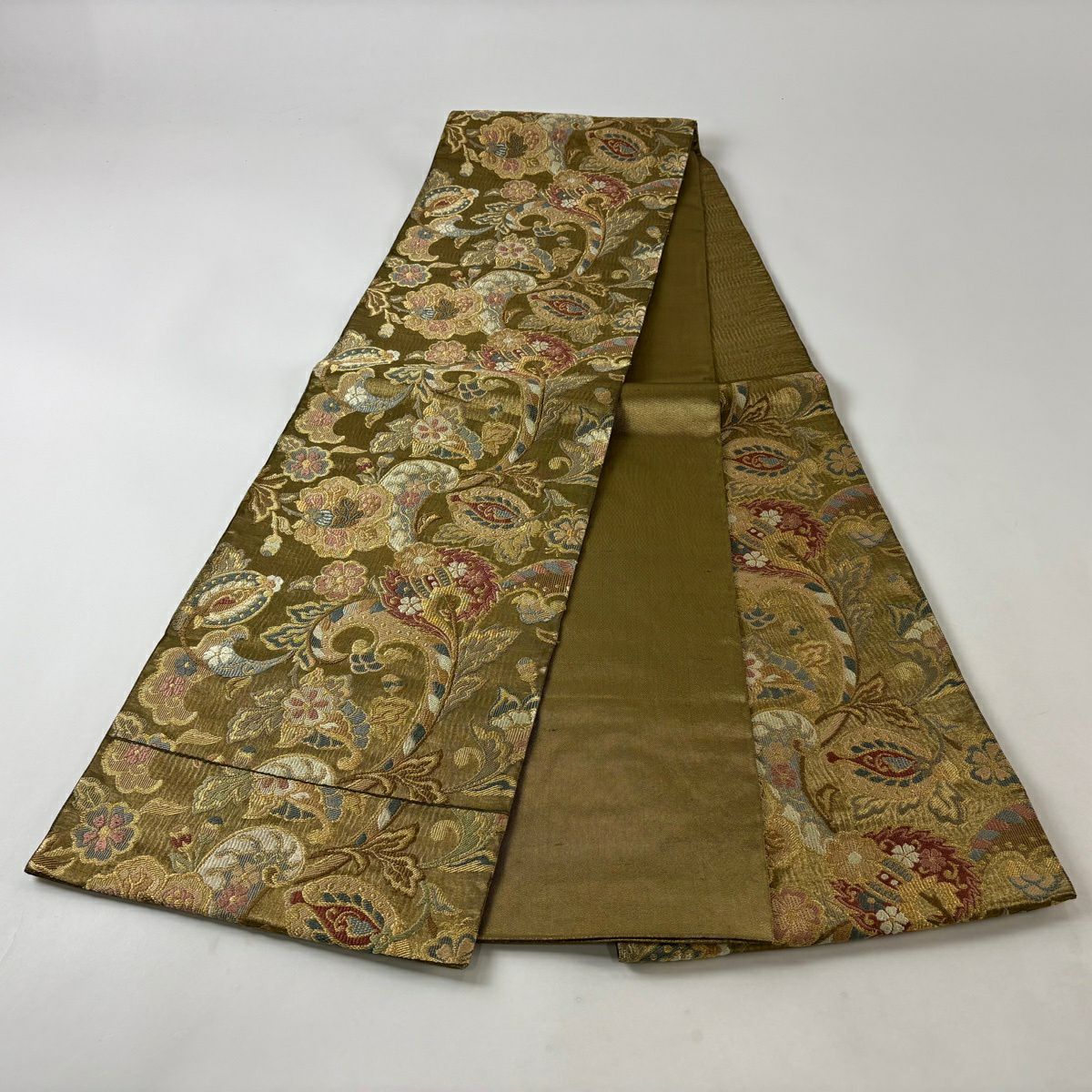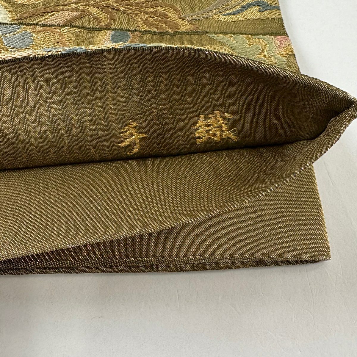 袋帯 秀品 落款あり 関西仕立て 草花 刺繍 金糸 金茶 六通 正絹