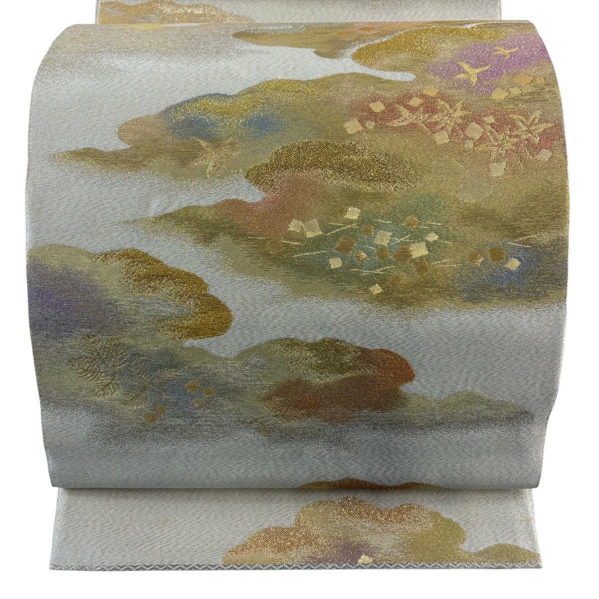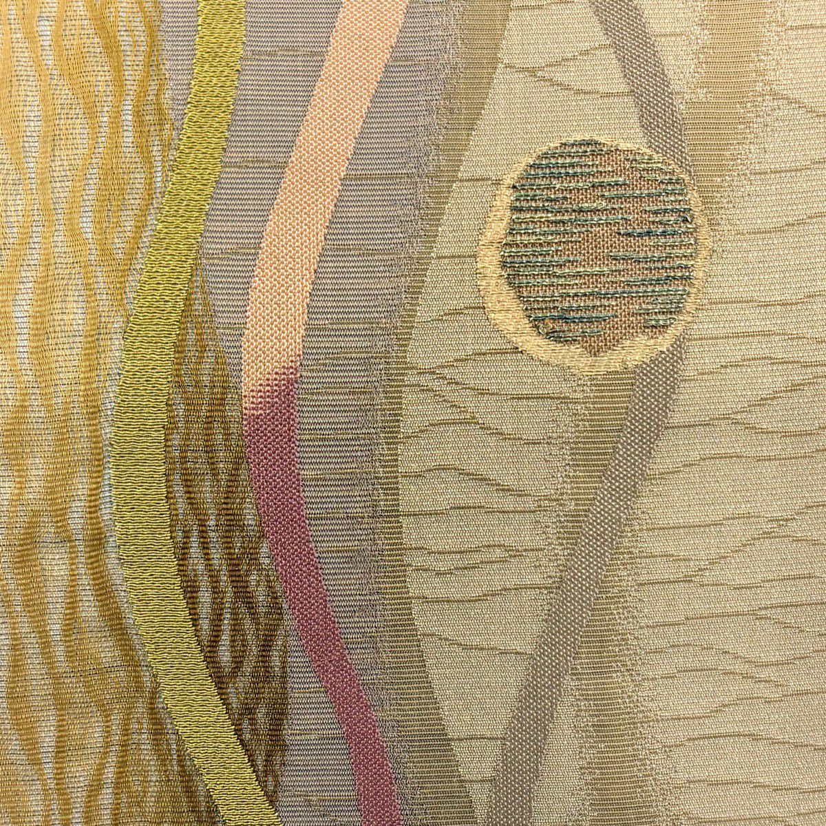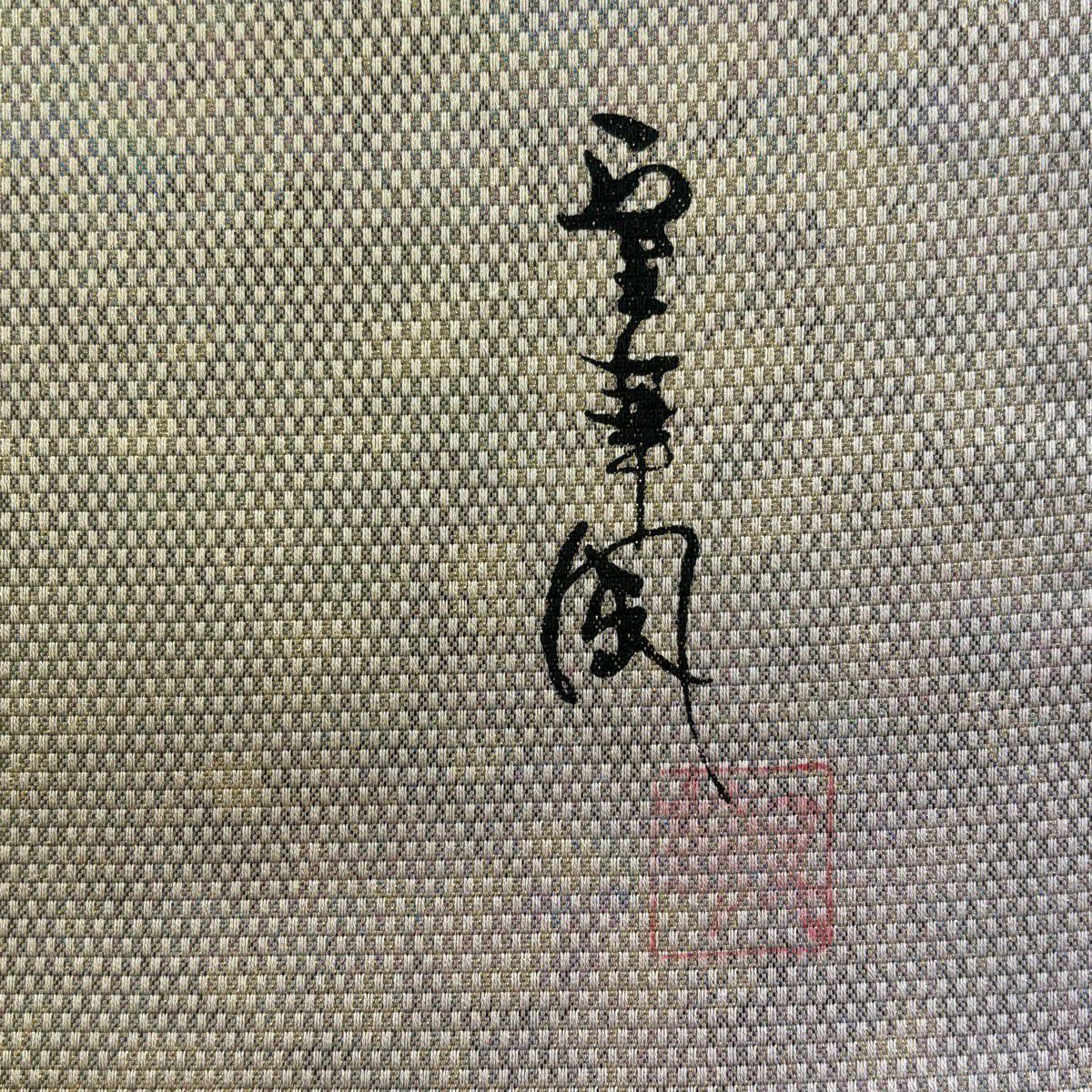 【美品】 袋帯 秀品 室華風 落款あり 霞 箔 薄茶色 全通 正絹