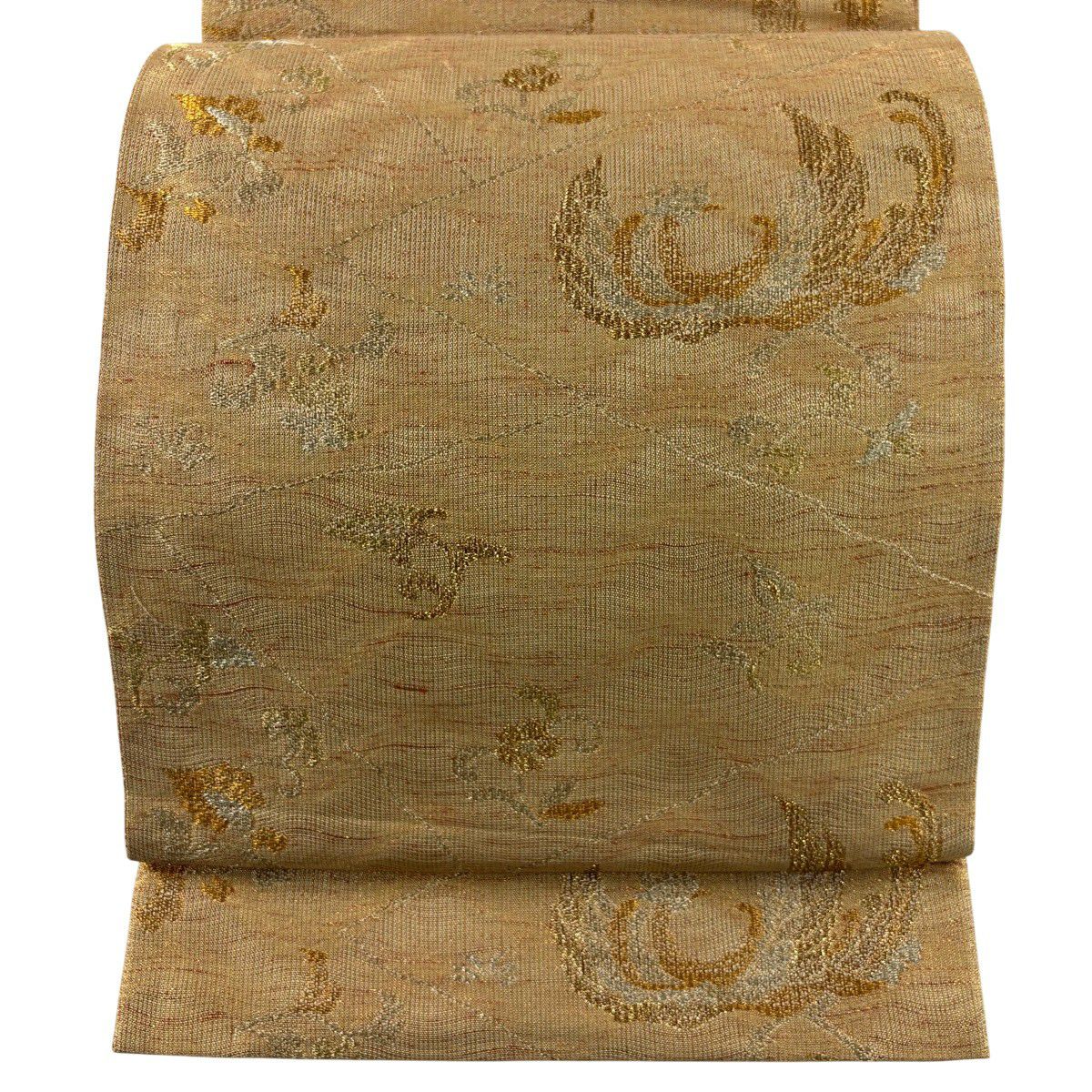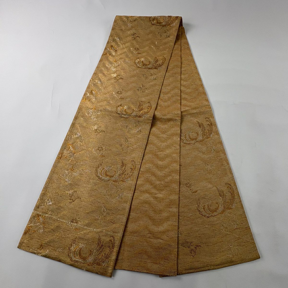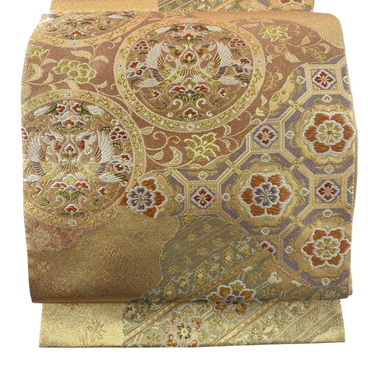 袋帯 秀品 優華錦 華文 鳳凰 金糸 箔 ベージュ 六通 正絹
