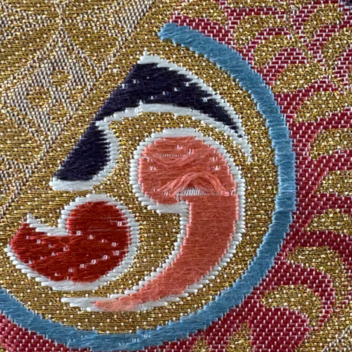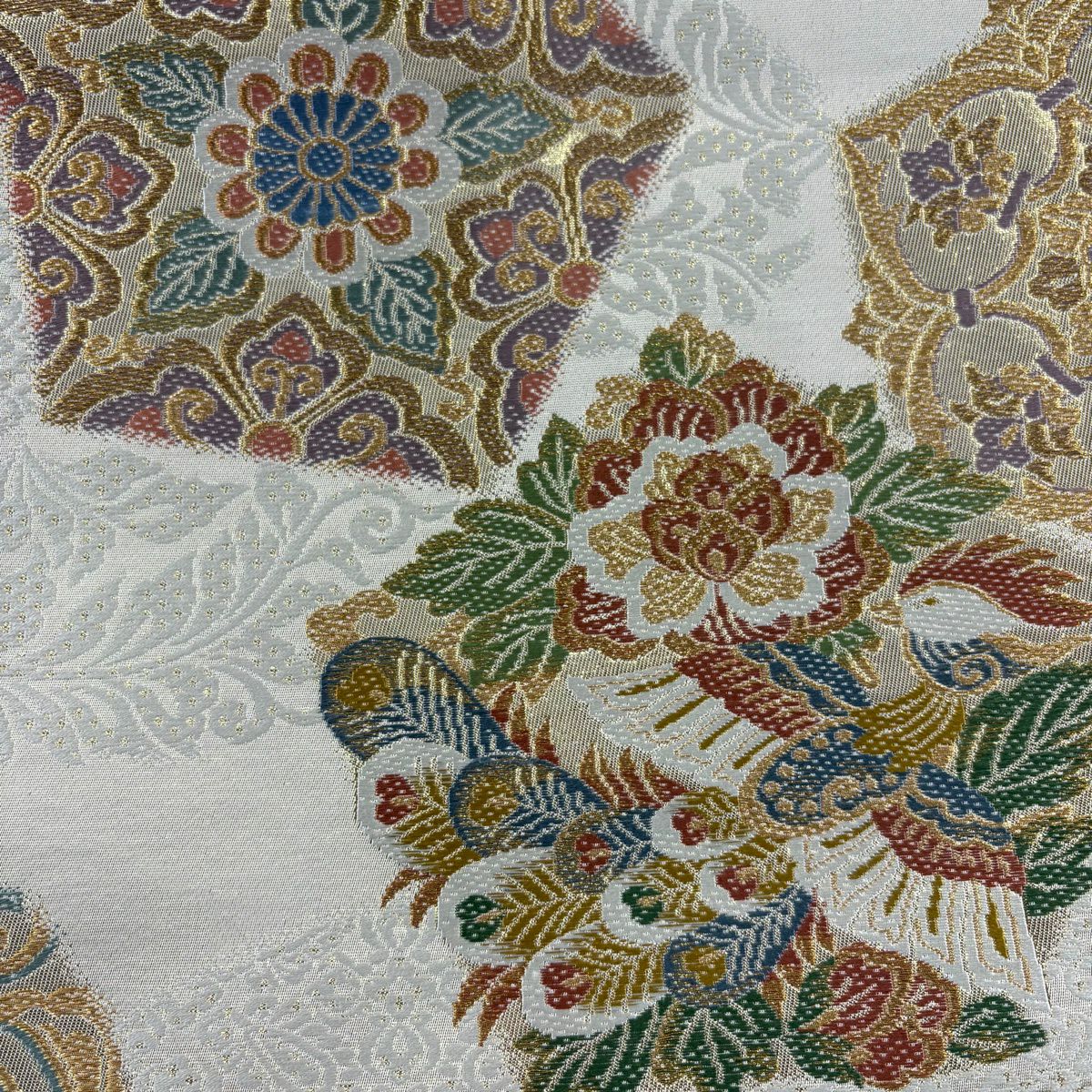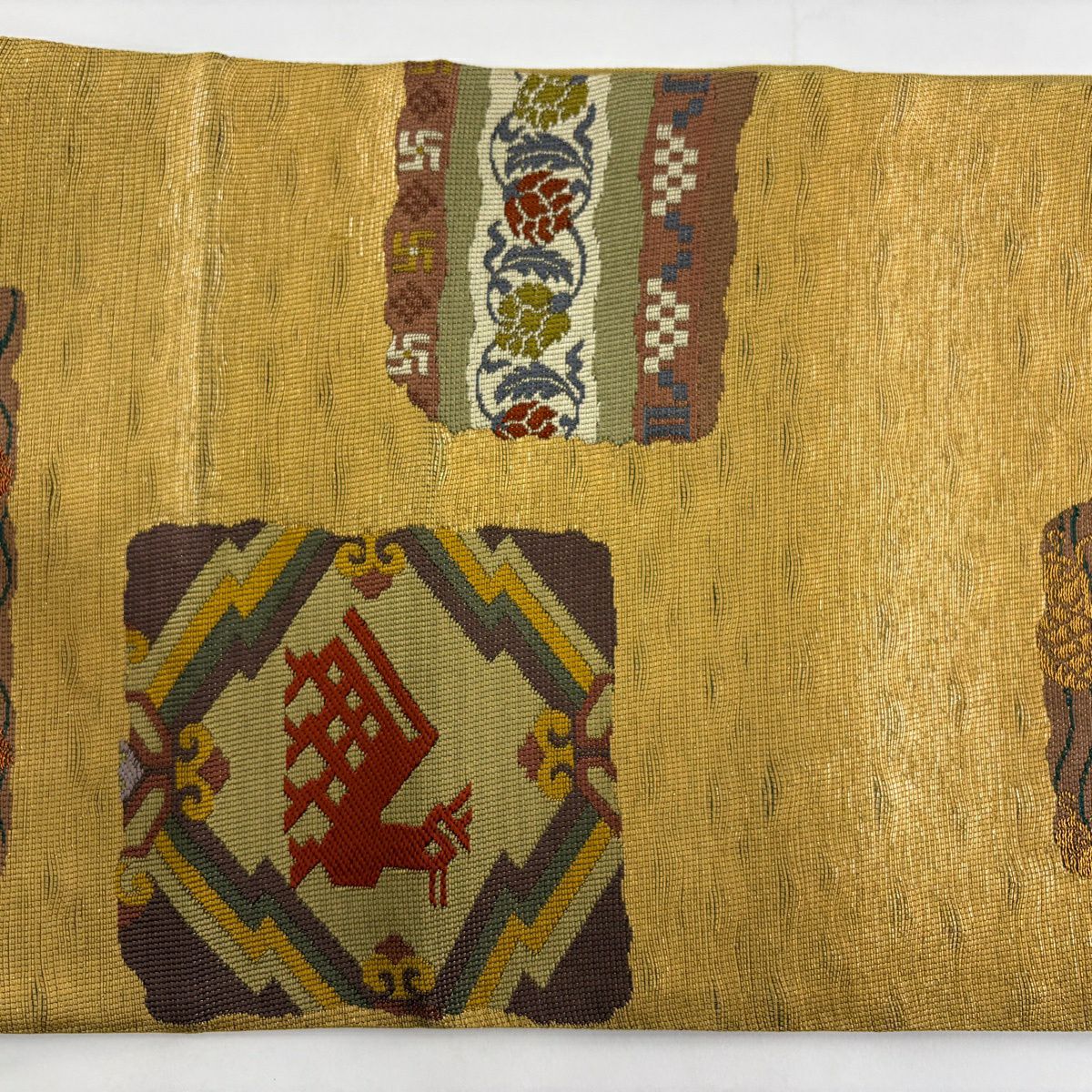 【美品】 袋帯 秀品 向かい鳥 蜀江華文 金糸 箔 金色 六通 正絹