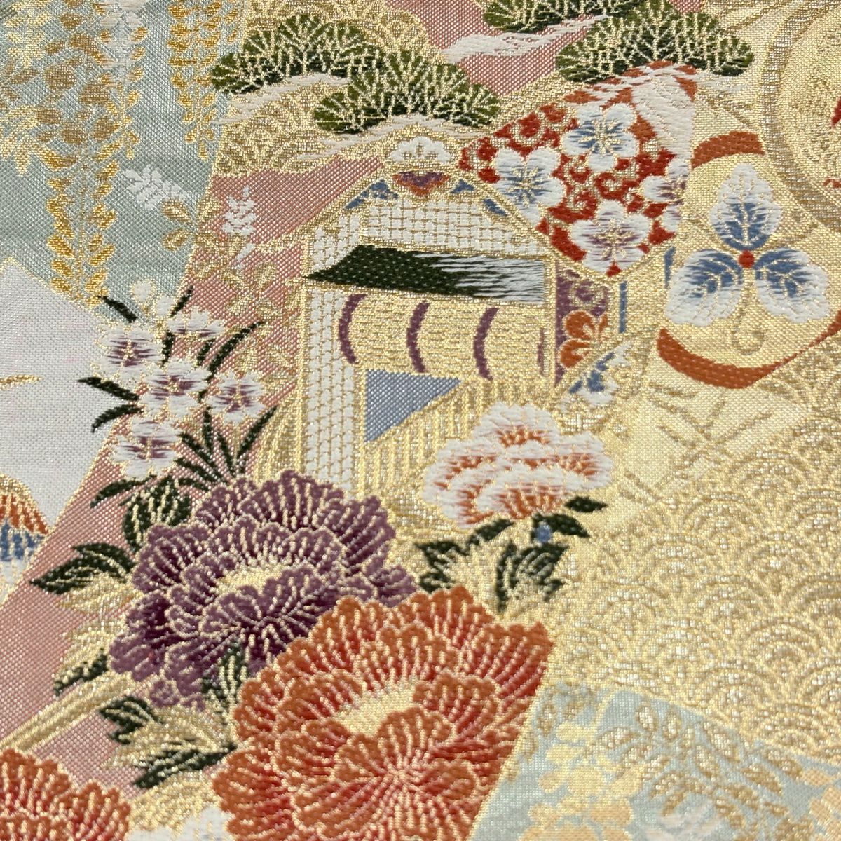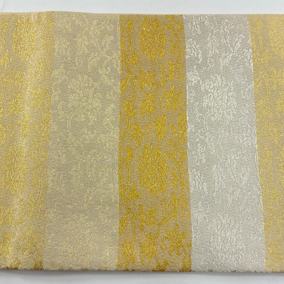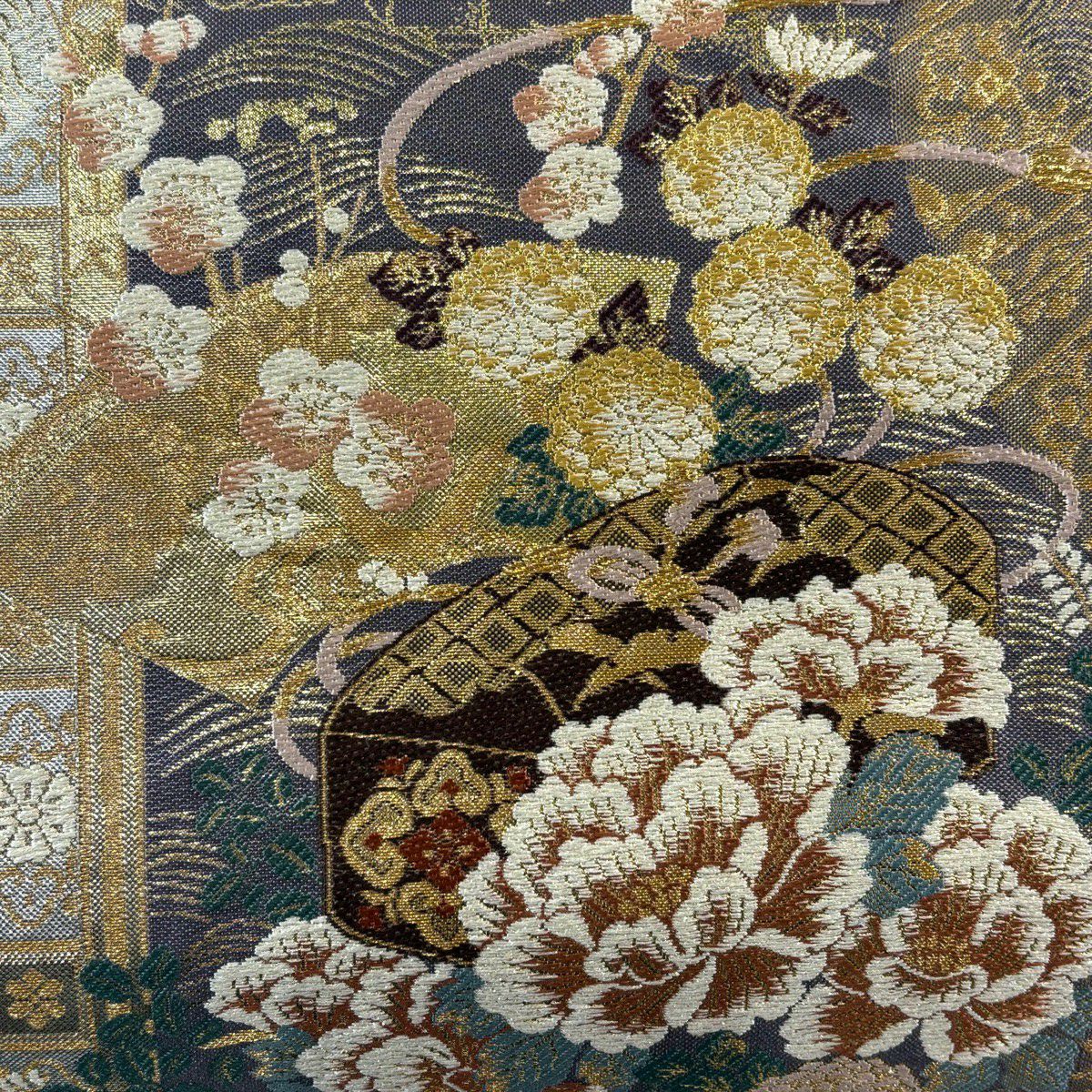 【美品】 袋帯 秀品 高台寺金欄牡丹唐草文 金銀糸 金色 全通 正絹