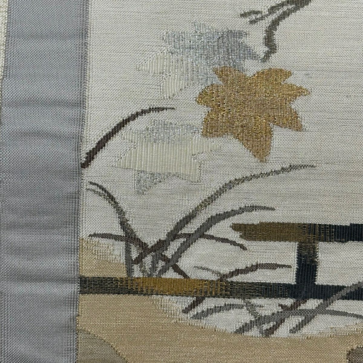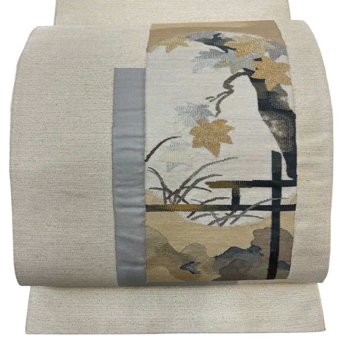 【美品】 袋帯 秀品 楓 霞 金銀糸 ベージュ お太鼓柄 正絹