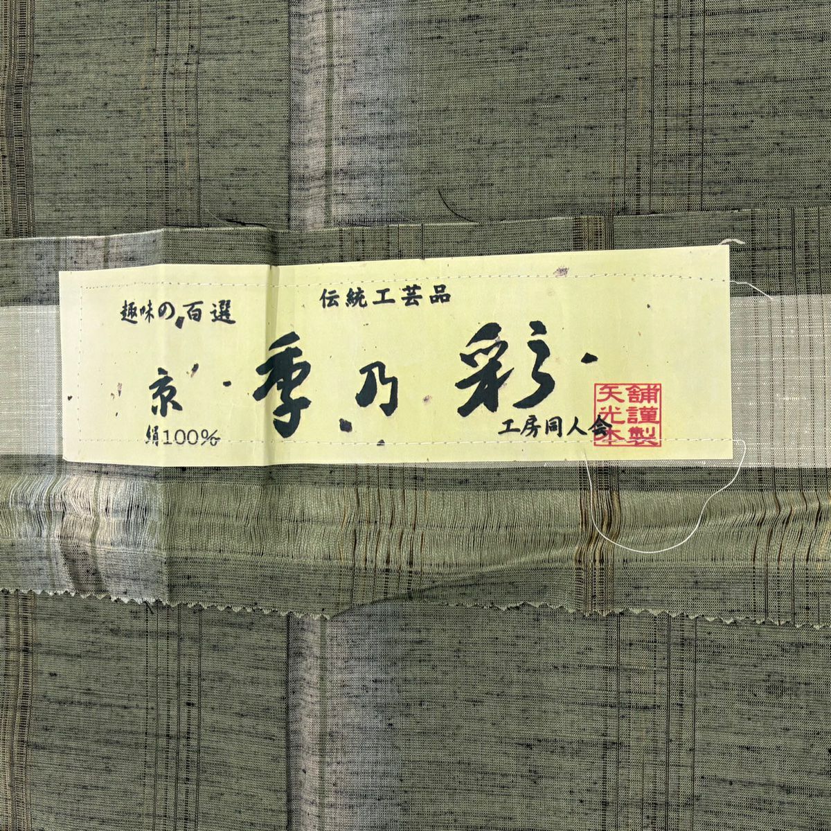 【在庫一掃】 【美品】 袋帯 秀品 霞 金糸 箔 茶緑色 六通 正絹