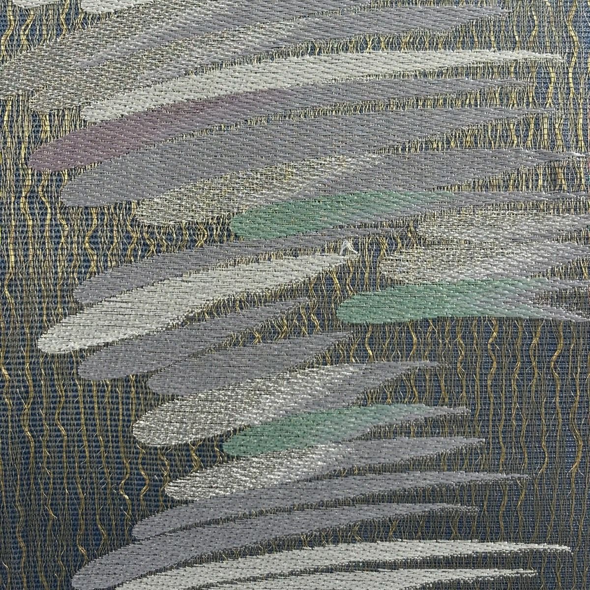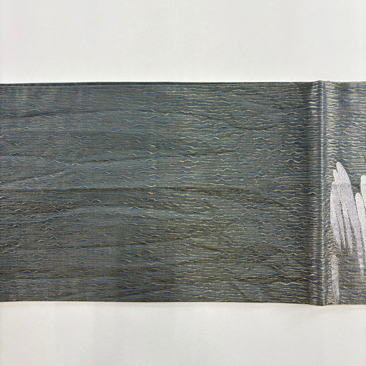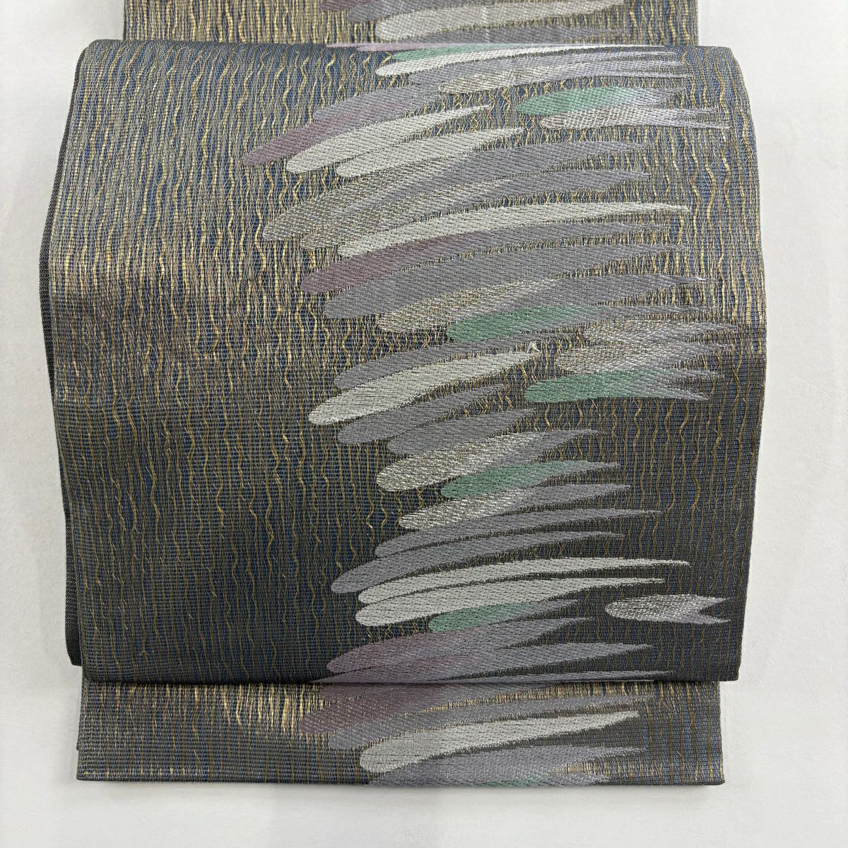 【在庫一掃】 【美品】 袋帯 秀品 山なみ 金銀糸 灰緑 六通 正絹