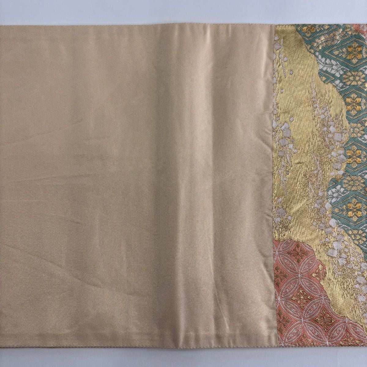 【在庫一掃】 【美品】 袋帯 秀品 霞 箔 ベージュ 六通 正絹