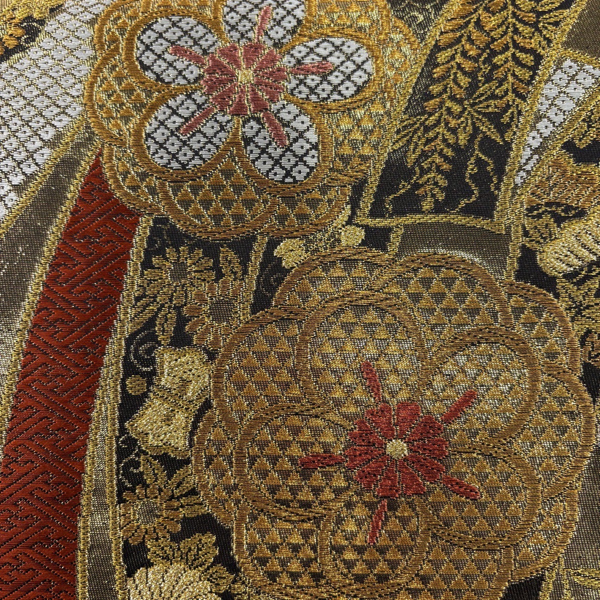 【在庫一掃】 【美品】 袋帯 秀品 幾何学模様 箔 金色 六通 正絹