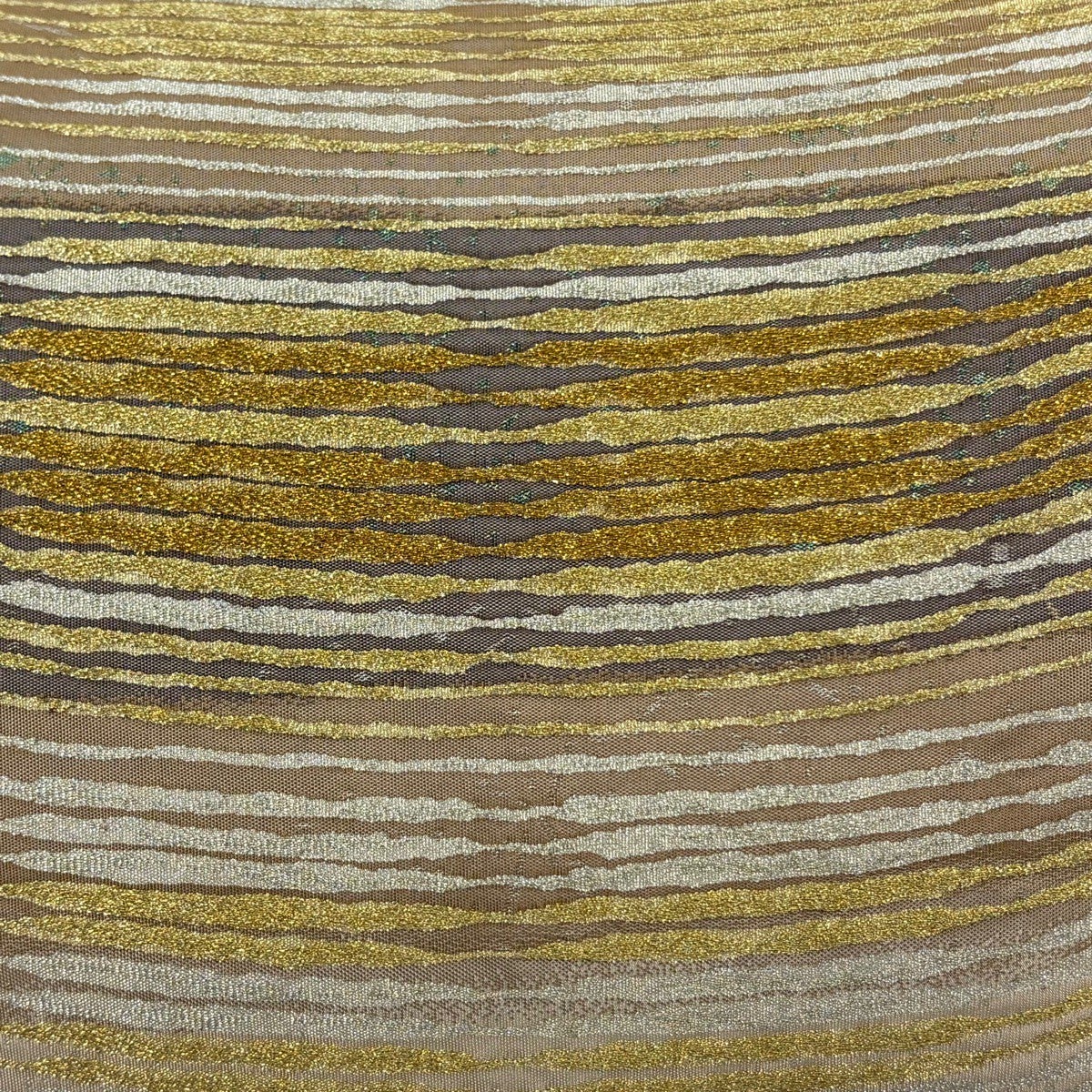 【美品】 袋帯 秀品 百綴れ 段縞 金銀糸 ベージュ 六通 正絹
