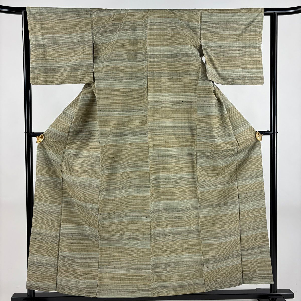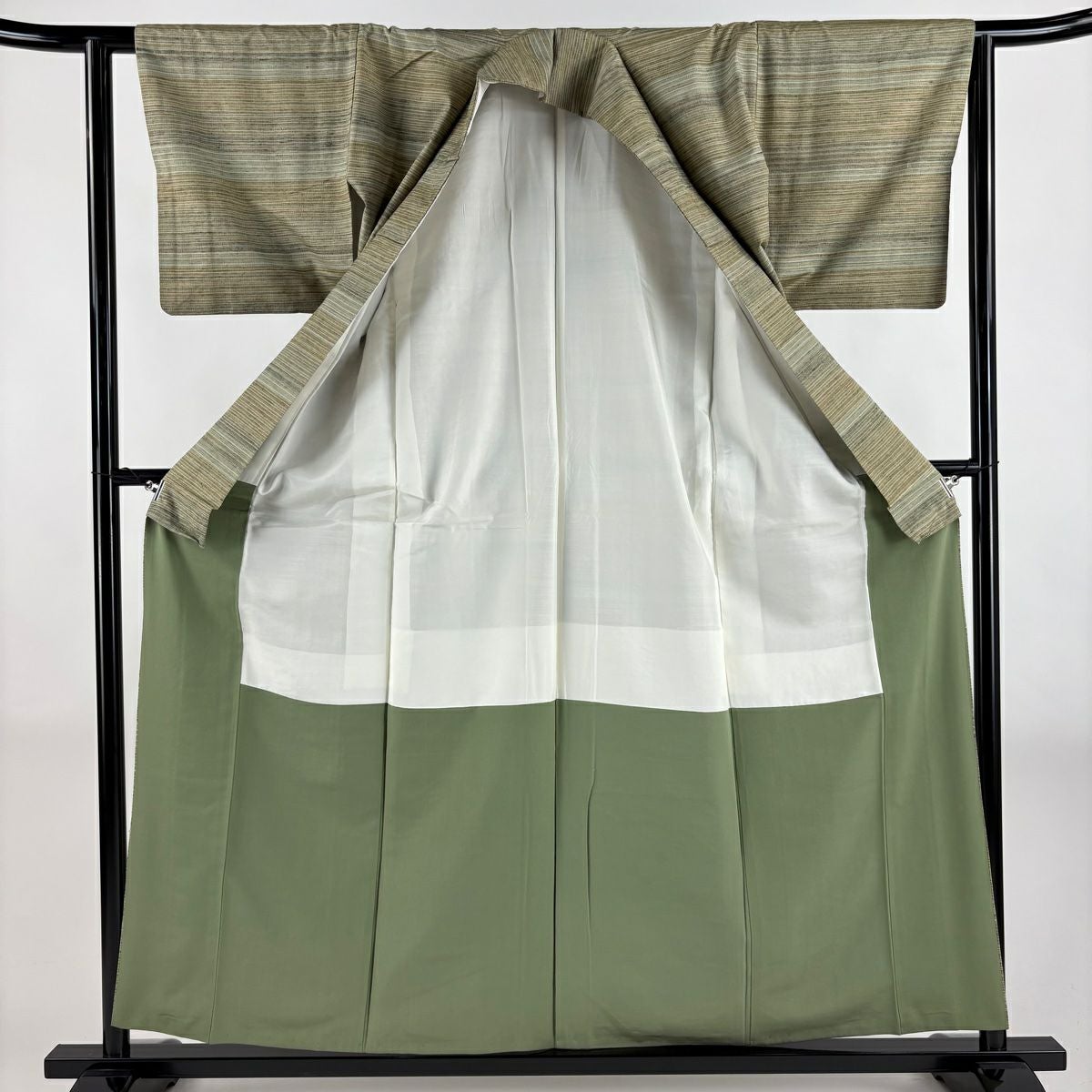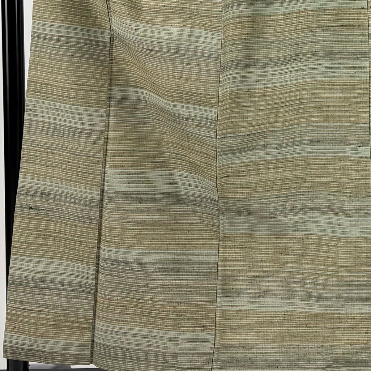 【在庫一掃】 【美品】 袋帯 秀品 縞 銀糸 抹茶色 お太鼓柄 正絹