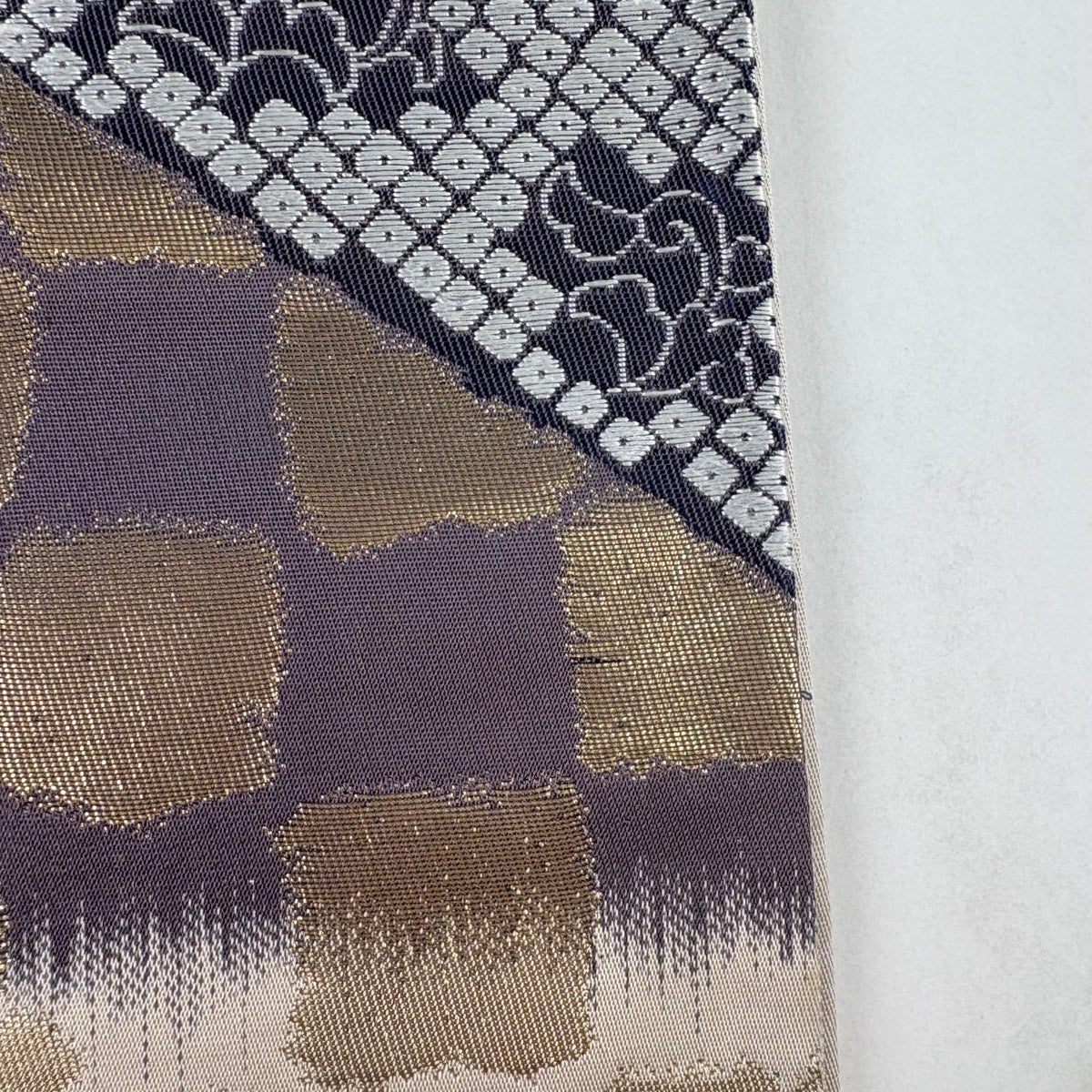 【美品】 袋帯 秀品 変わり市松 幾何学 箔 ぼかし 黒 全通 正絹