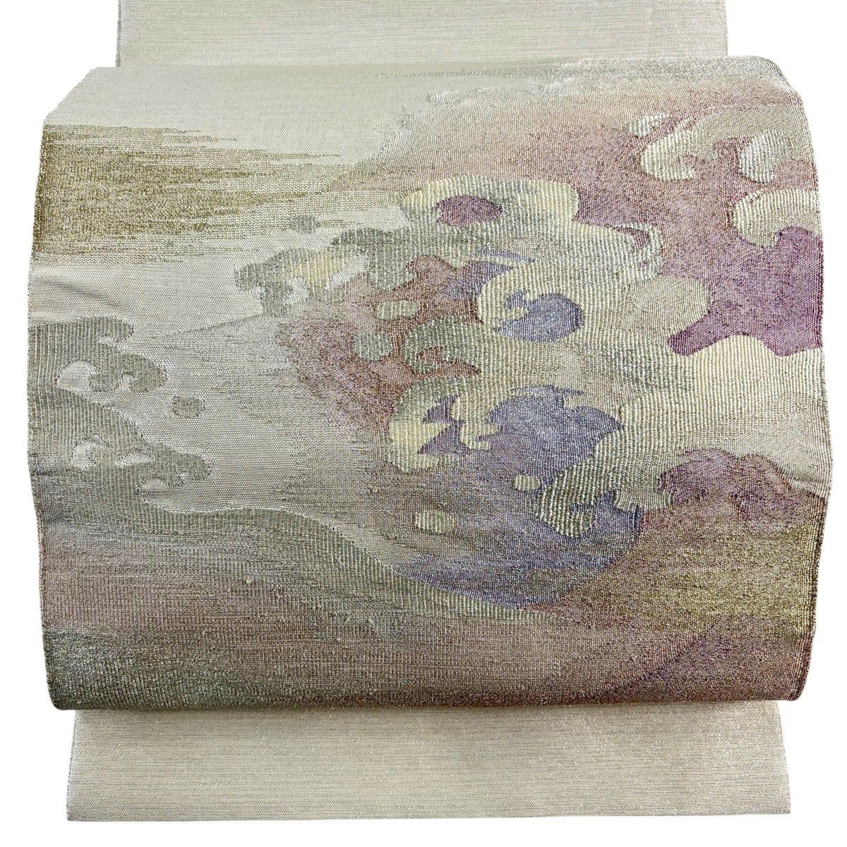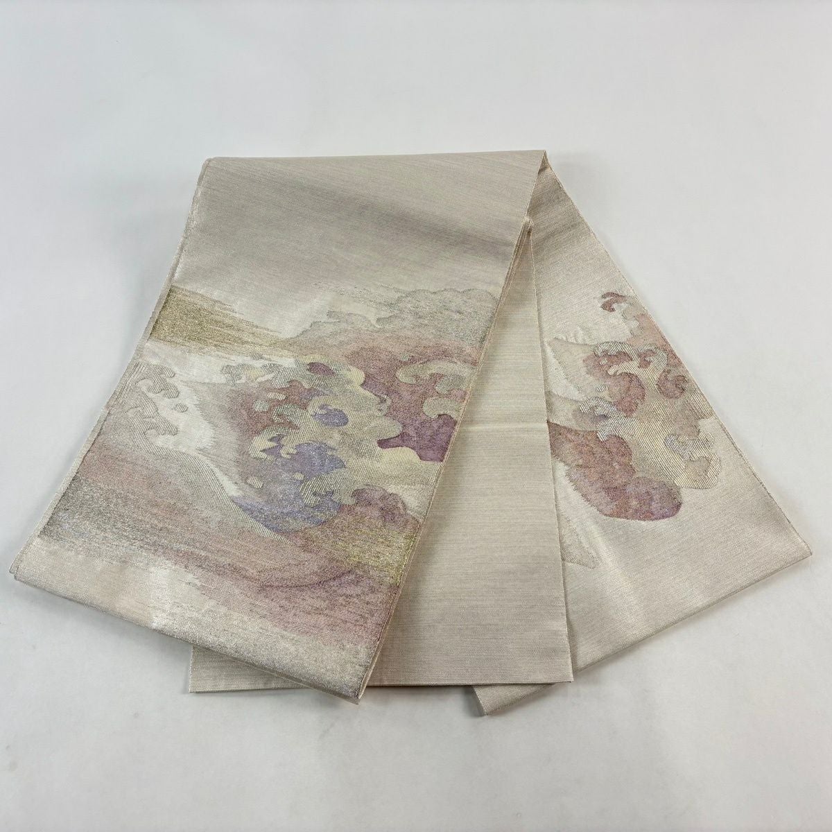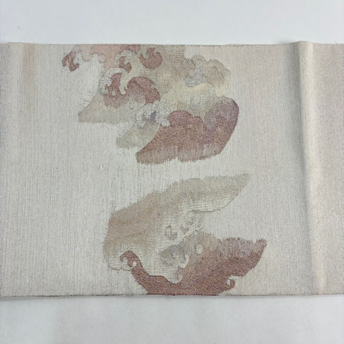 【美品】 袋帯 秀品 波頭 霞 金銀糸 銀通し 灰白 お太鼓柄 正絹