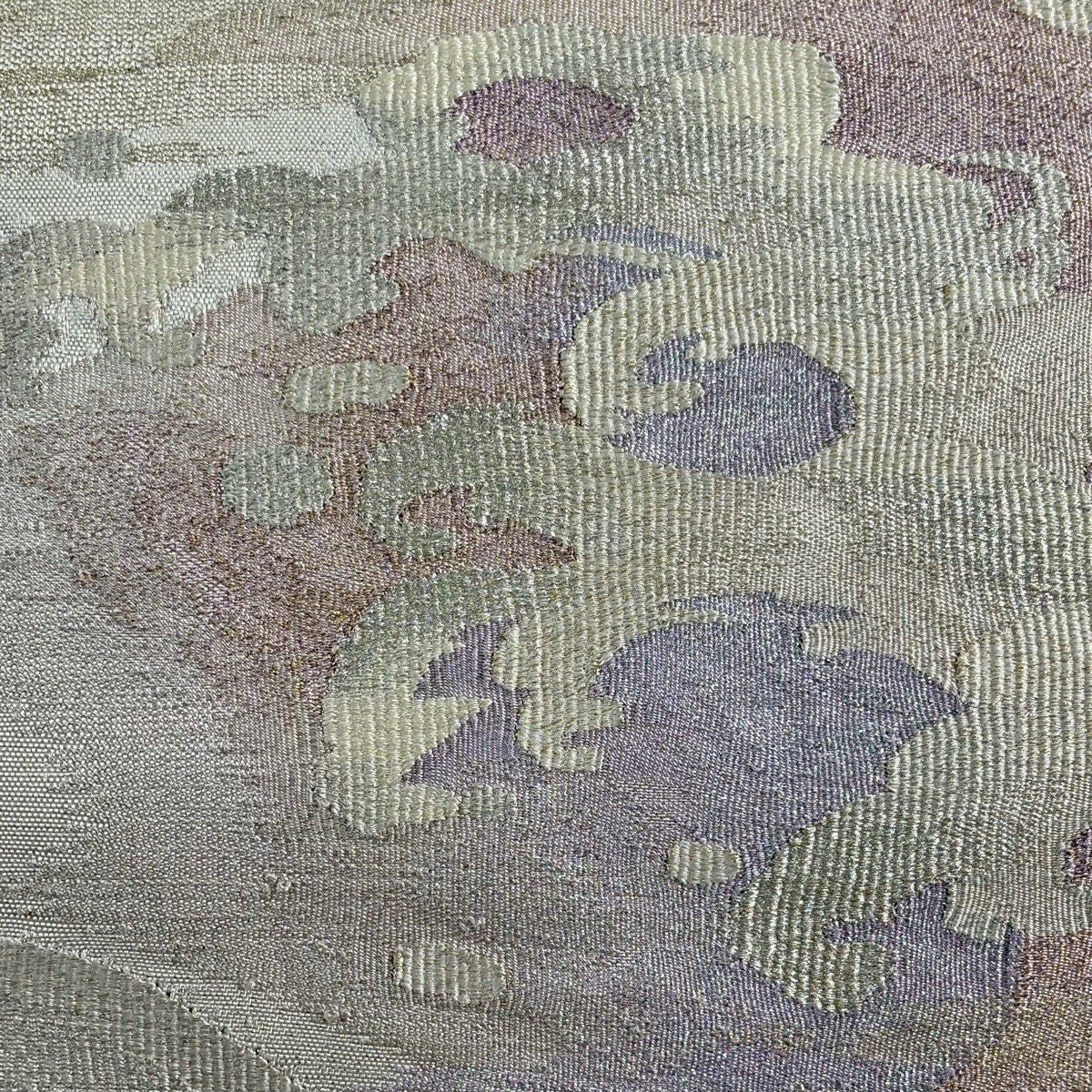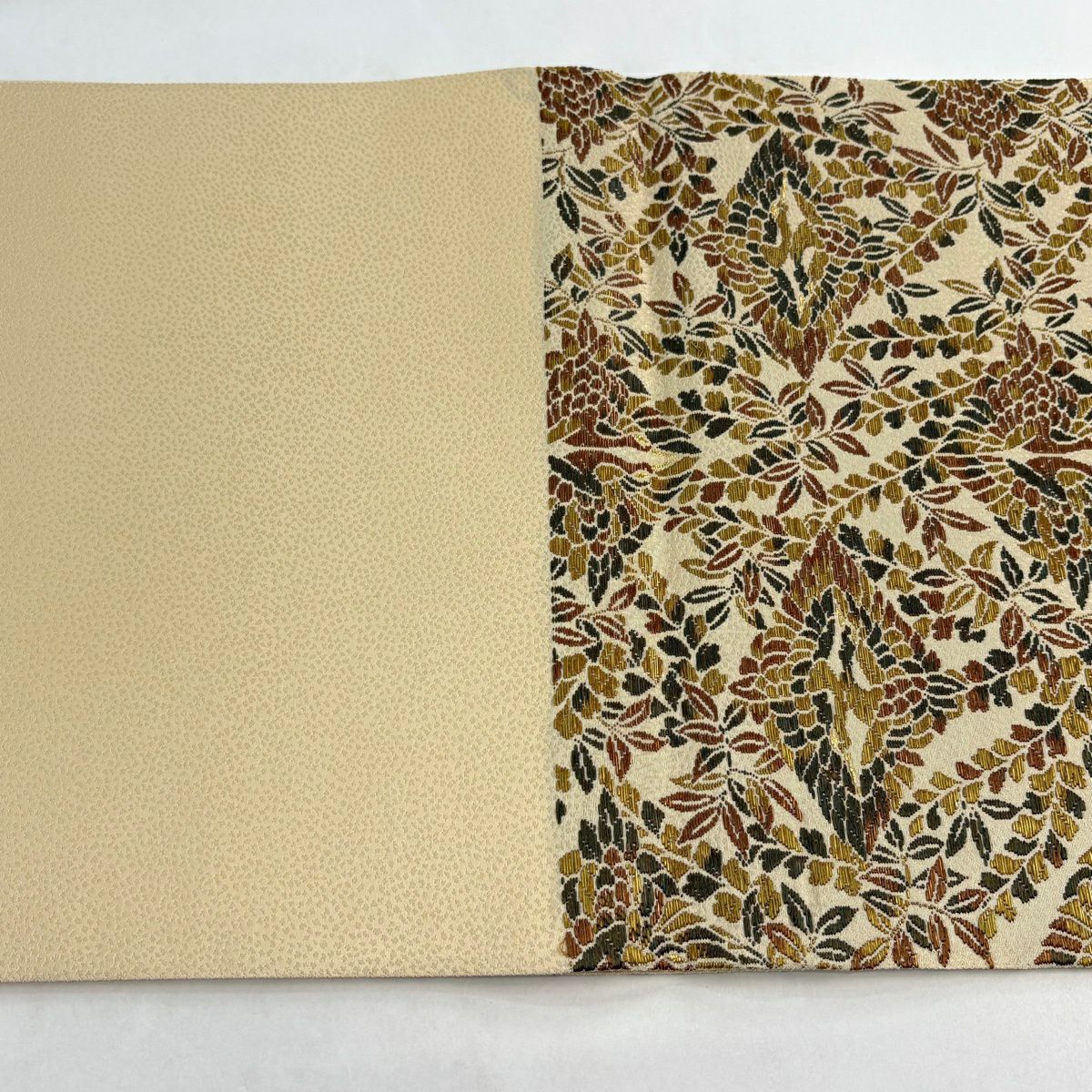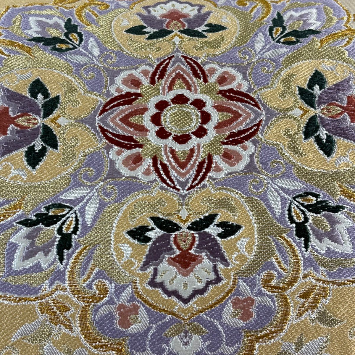 【美品】 袋帯 秀品 華文 草花 金糸 箔 ベージュ 六通 正絹