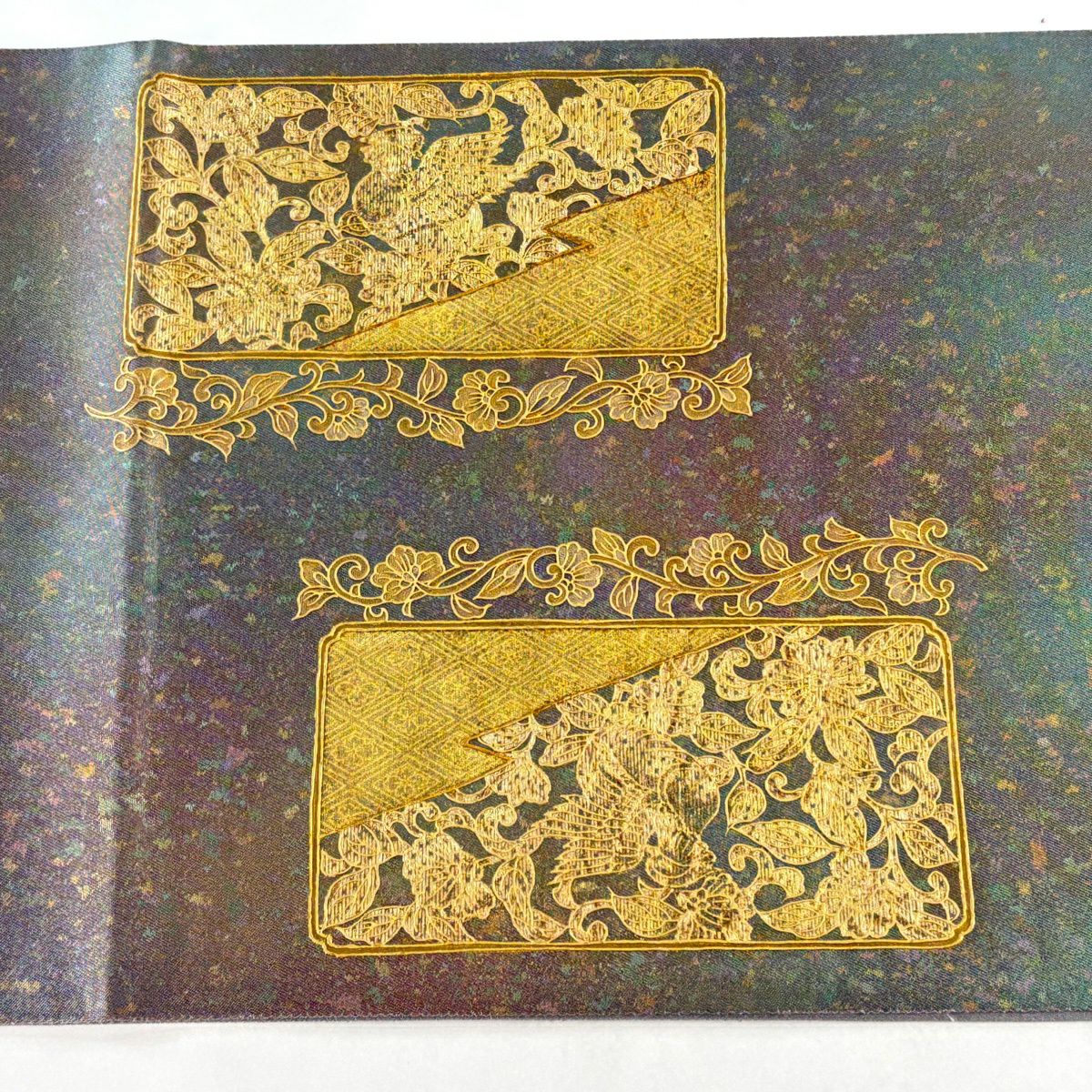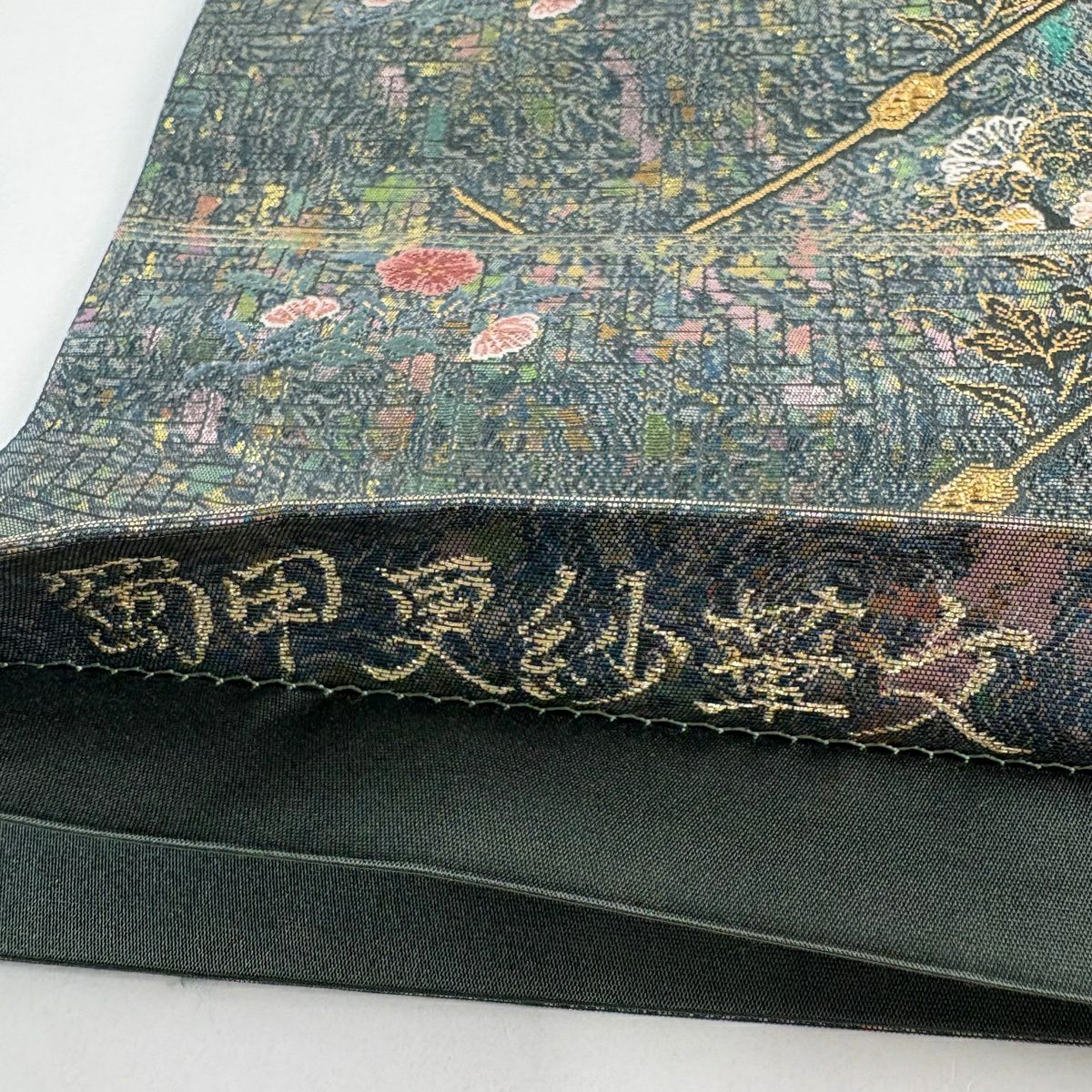 【美品】 袋帯 秀品 関西仕立て 蜀甲更紗華文 箔 深緑 六通 正絹