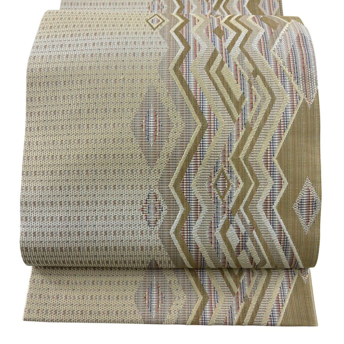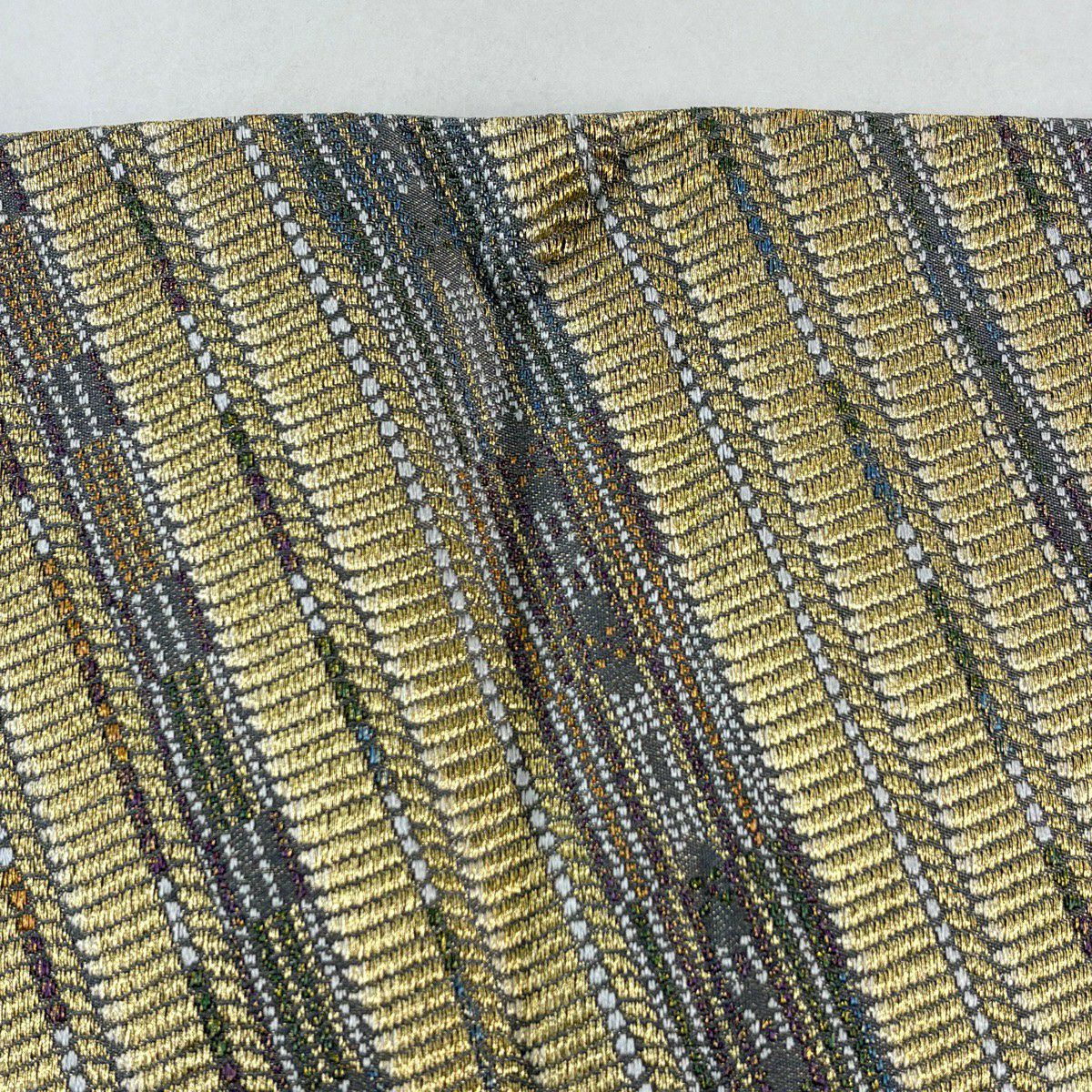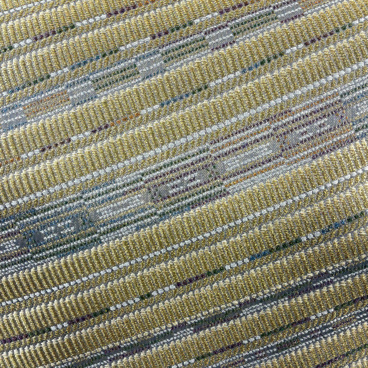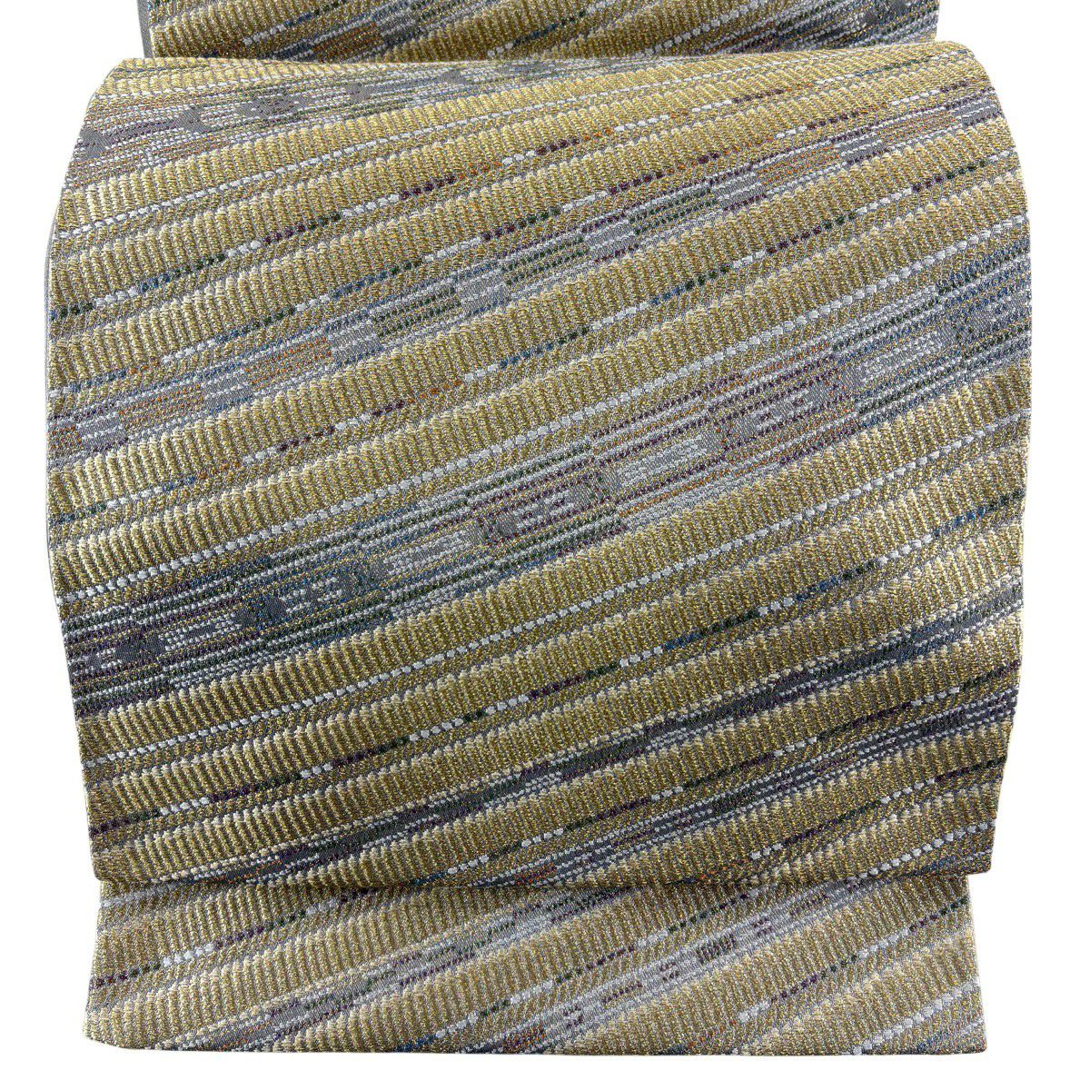 【美品】 袋帯 秀品 斜縞 幾何学模様 金糸 ラメ糸 金色 六通 正絹