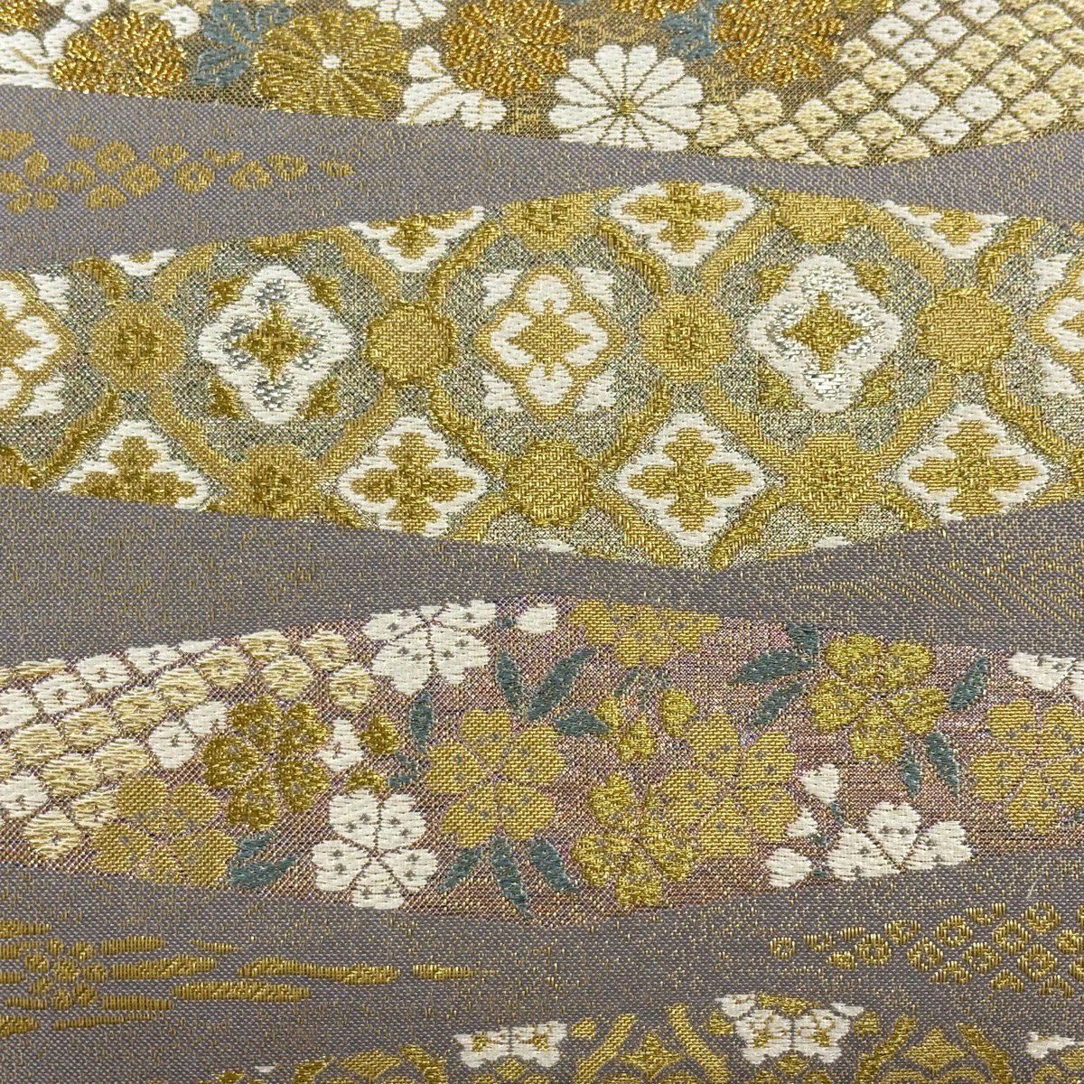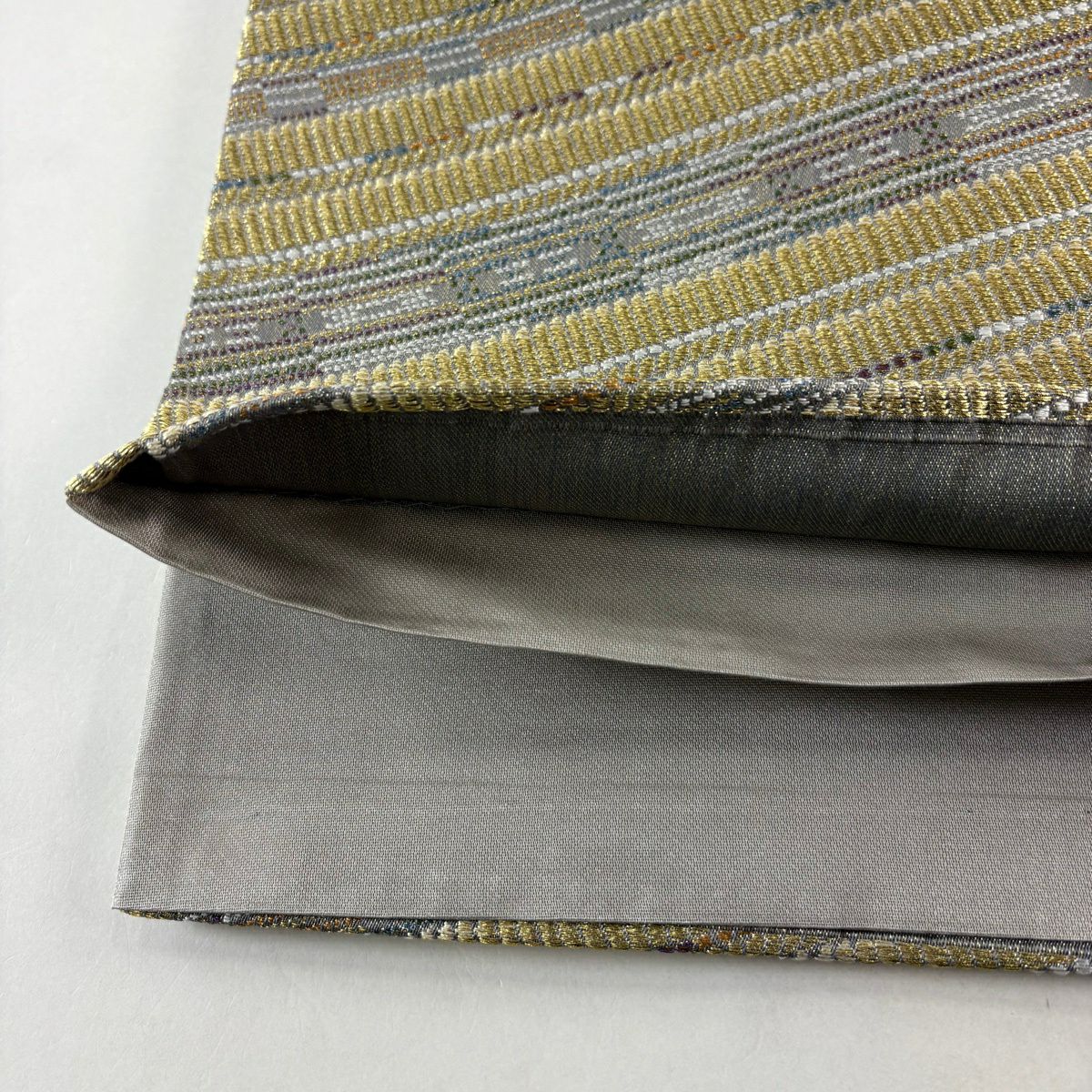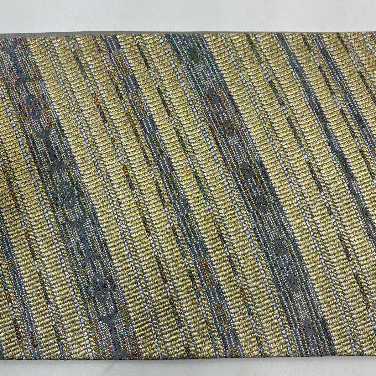 【美品】 袋帯 秀品 斜縞 幾何学模様 金糸 ラメ糸 金色 六通 正絹