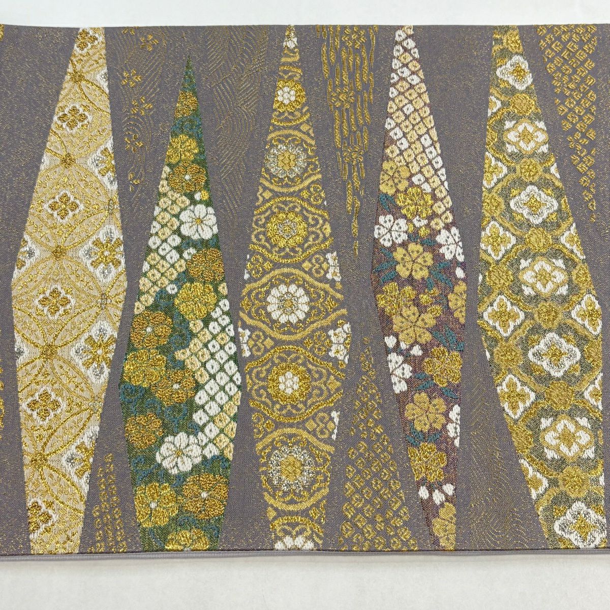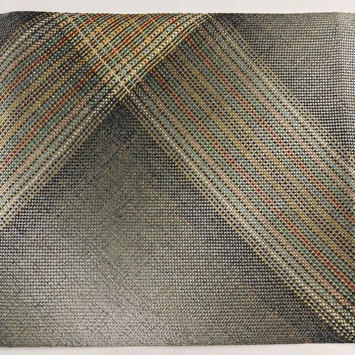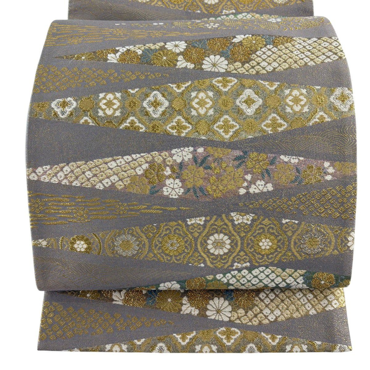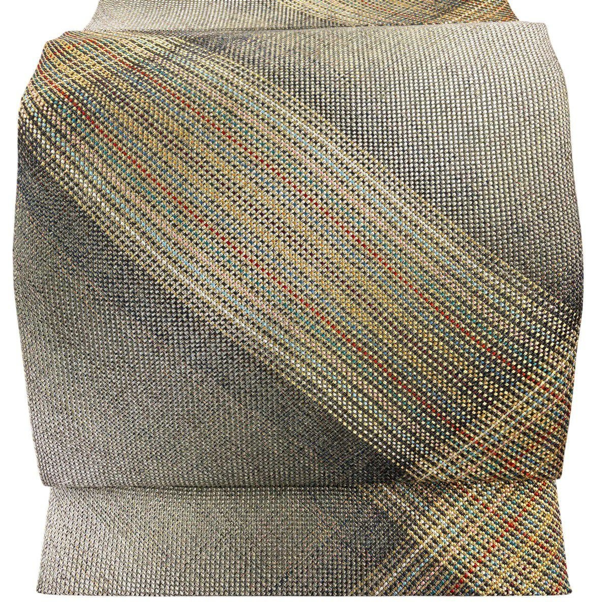 【美品】 袋帯 秀品 斜縞 幾何学模様 金糸 ラメ糸 金色 六通 正絹