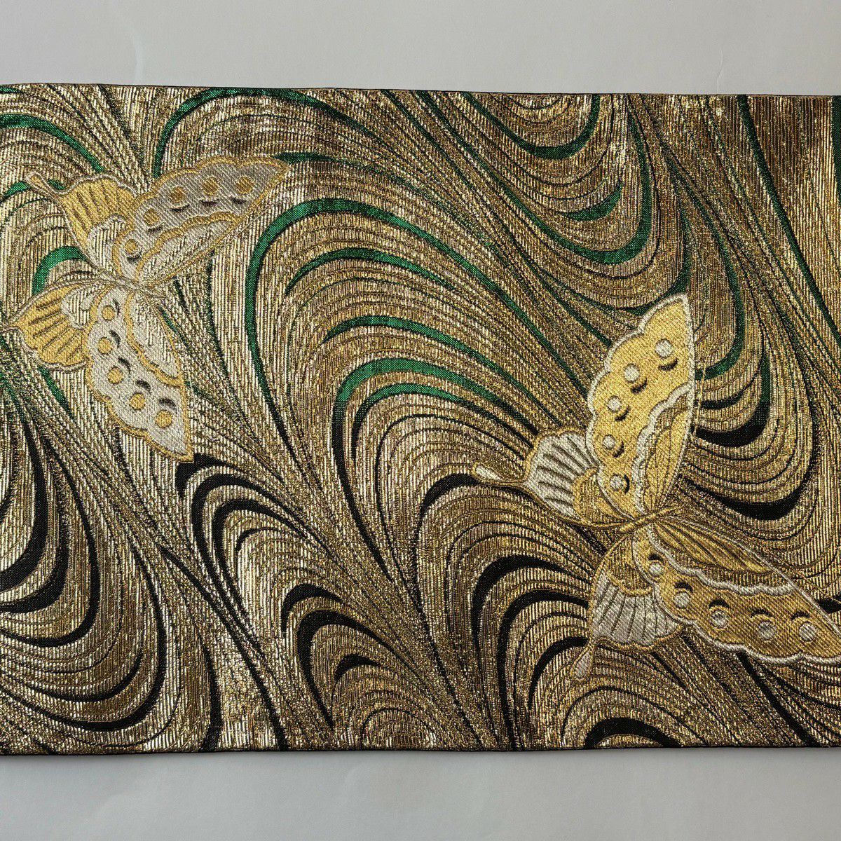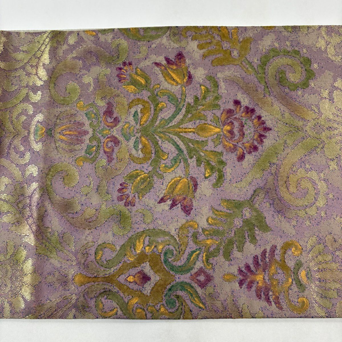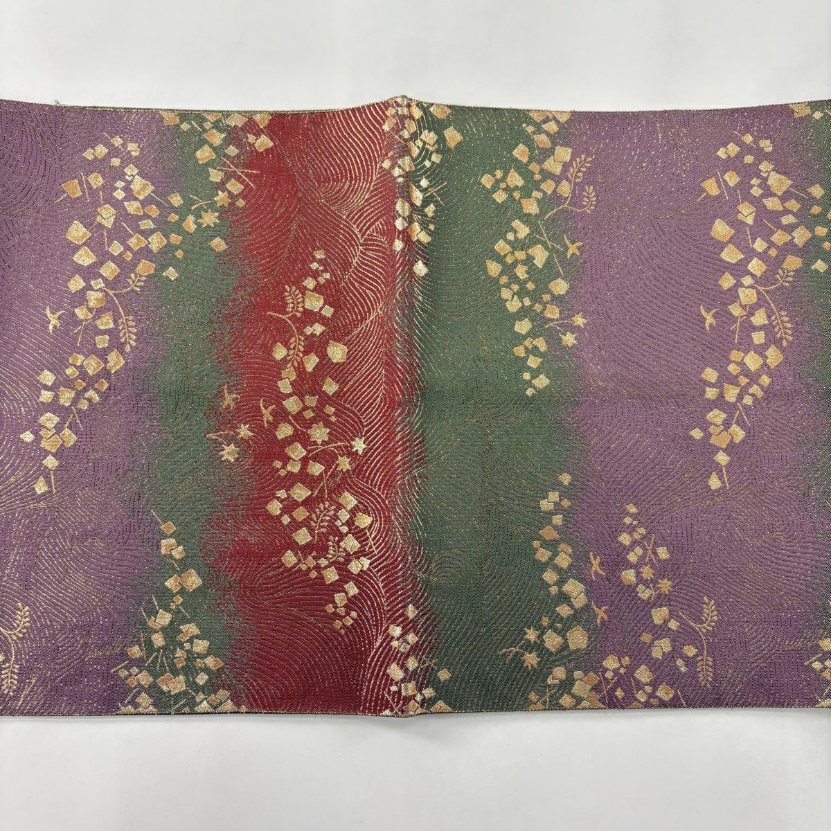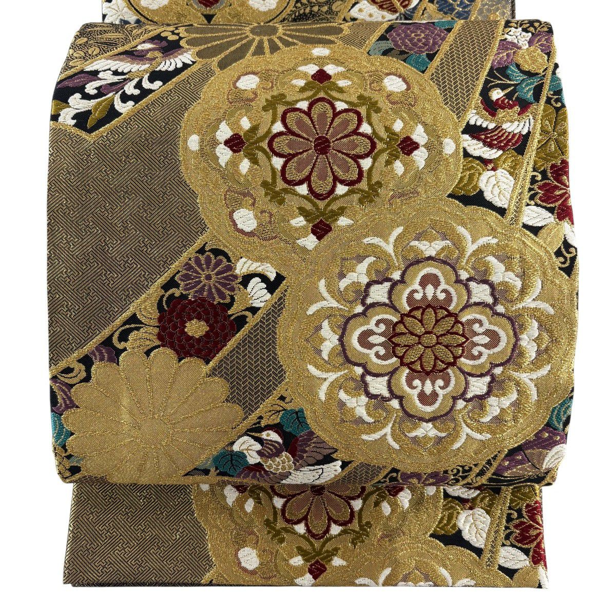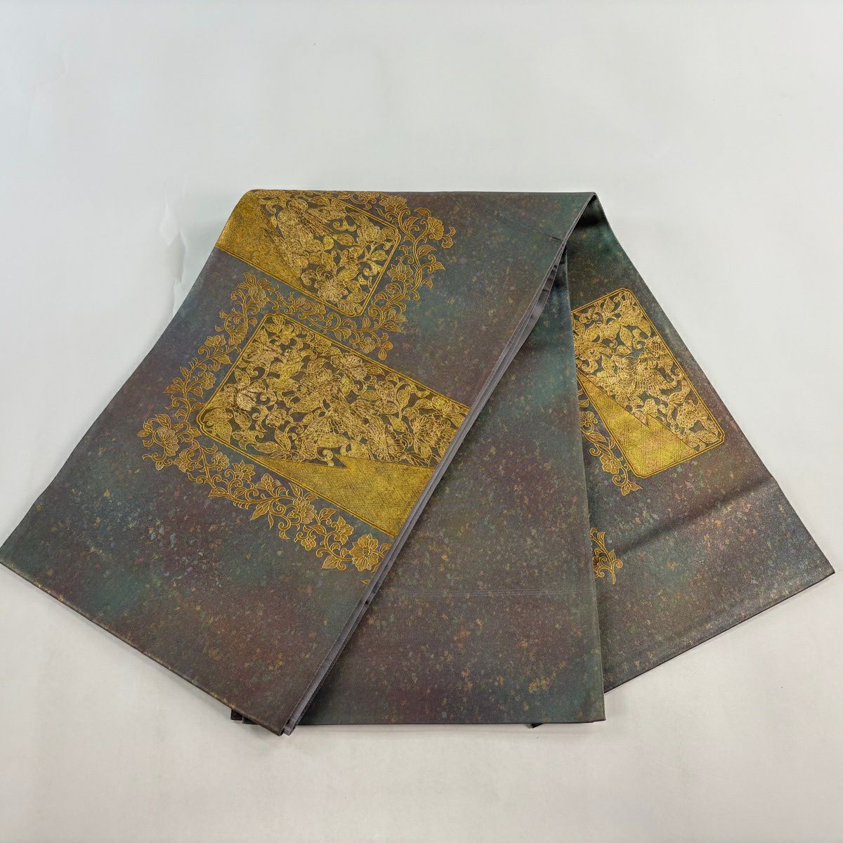 【美品】 袋帯 秀品 蜀江華文 草花 青銅箔 金銀糸 金色 六通 正絹