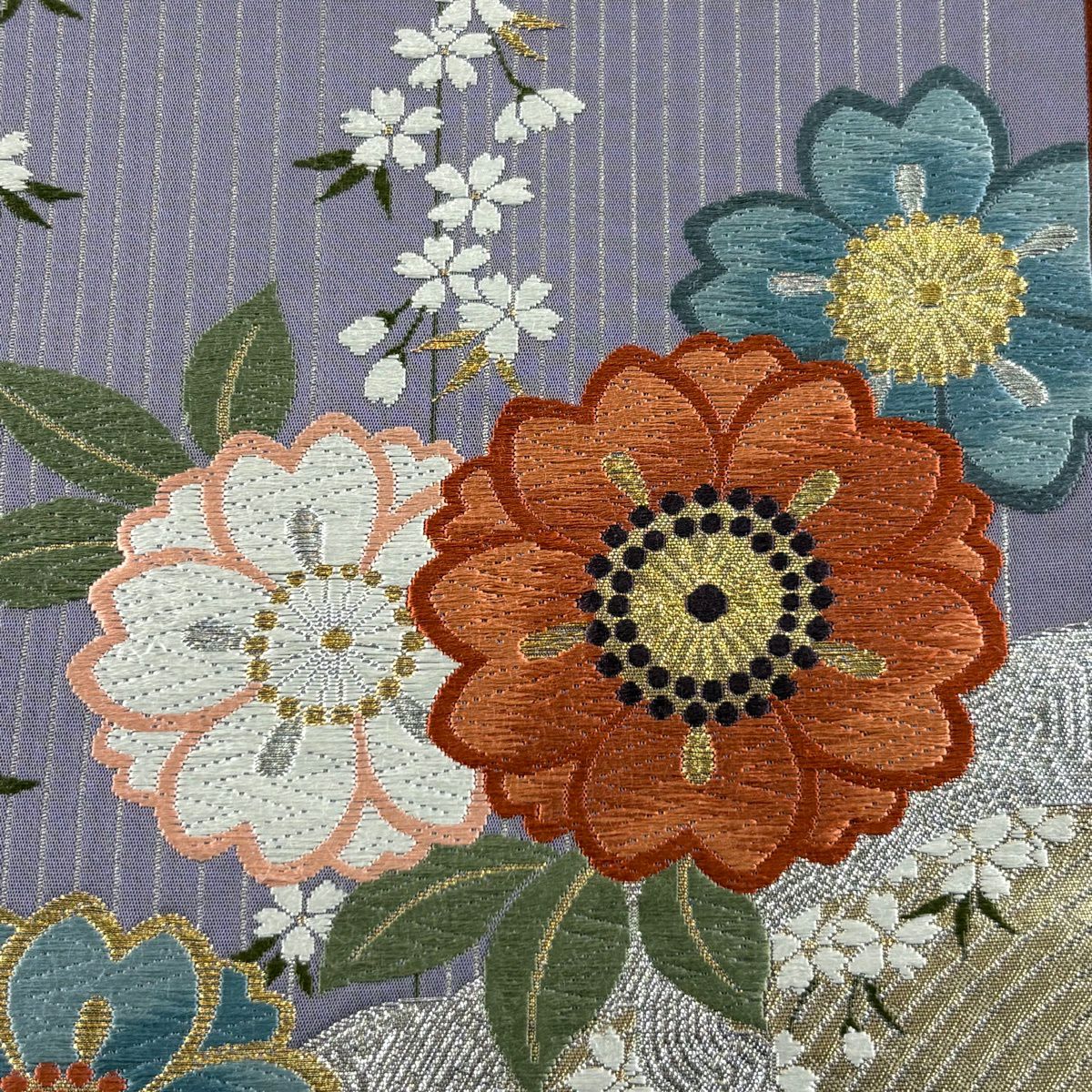 【美品】 袋帯 秀品 鈴乃屋 桜 縞 唐織 金銀糸 青紫 六通 正絹