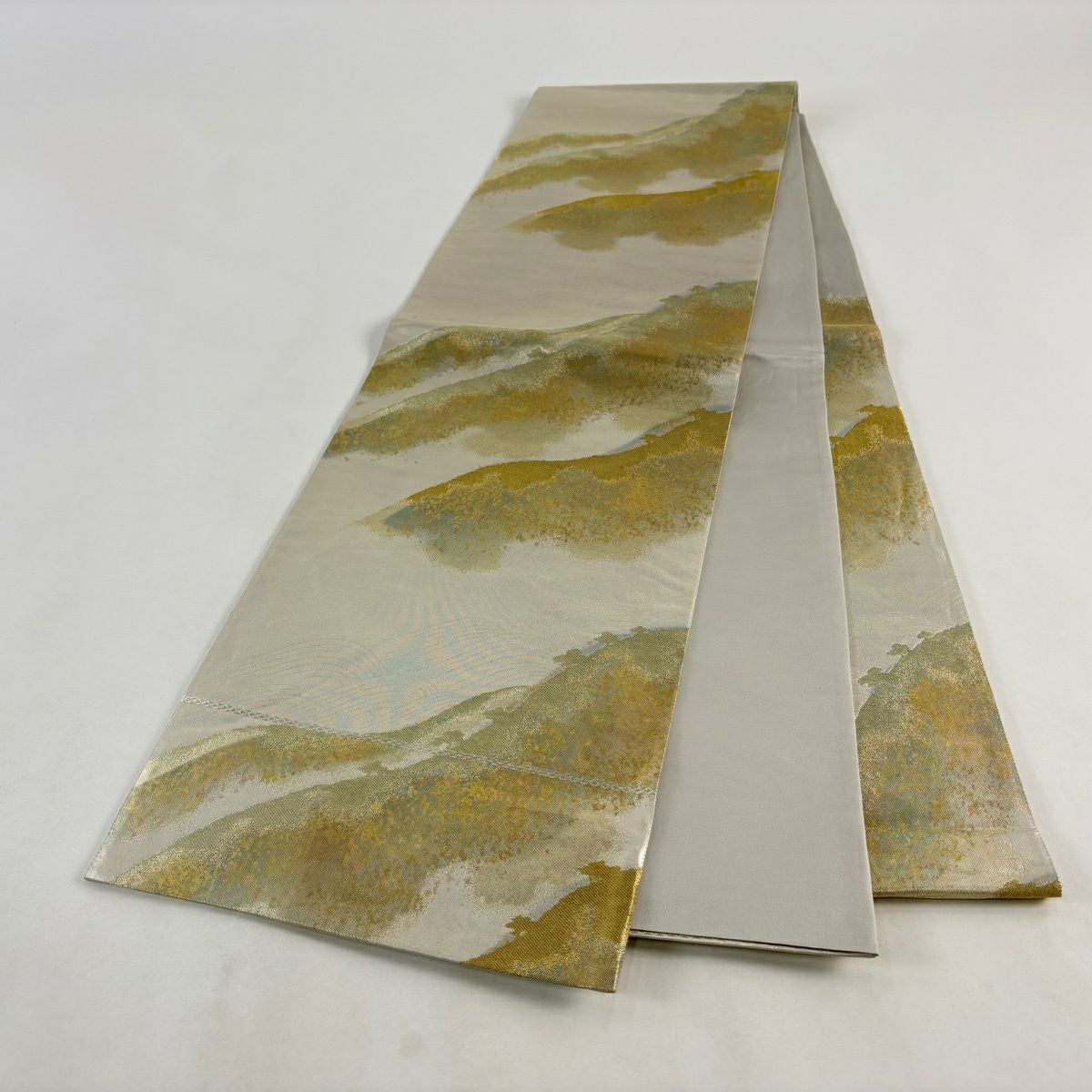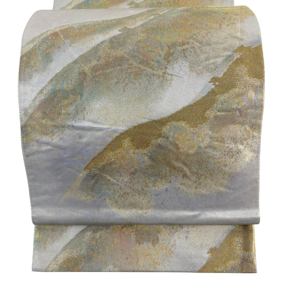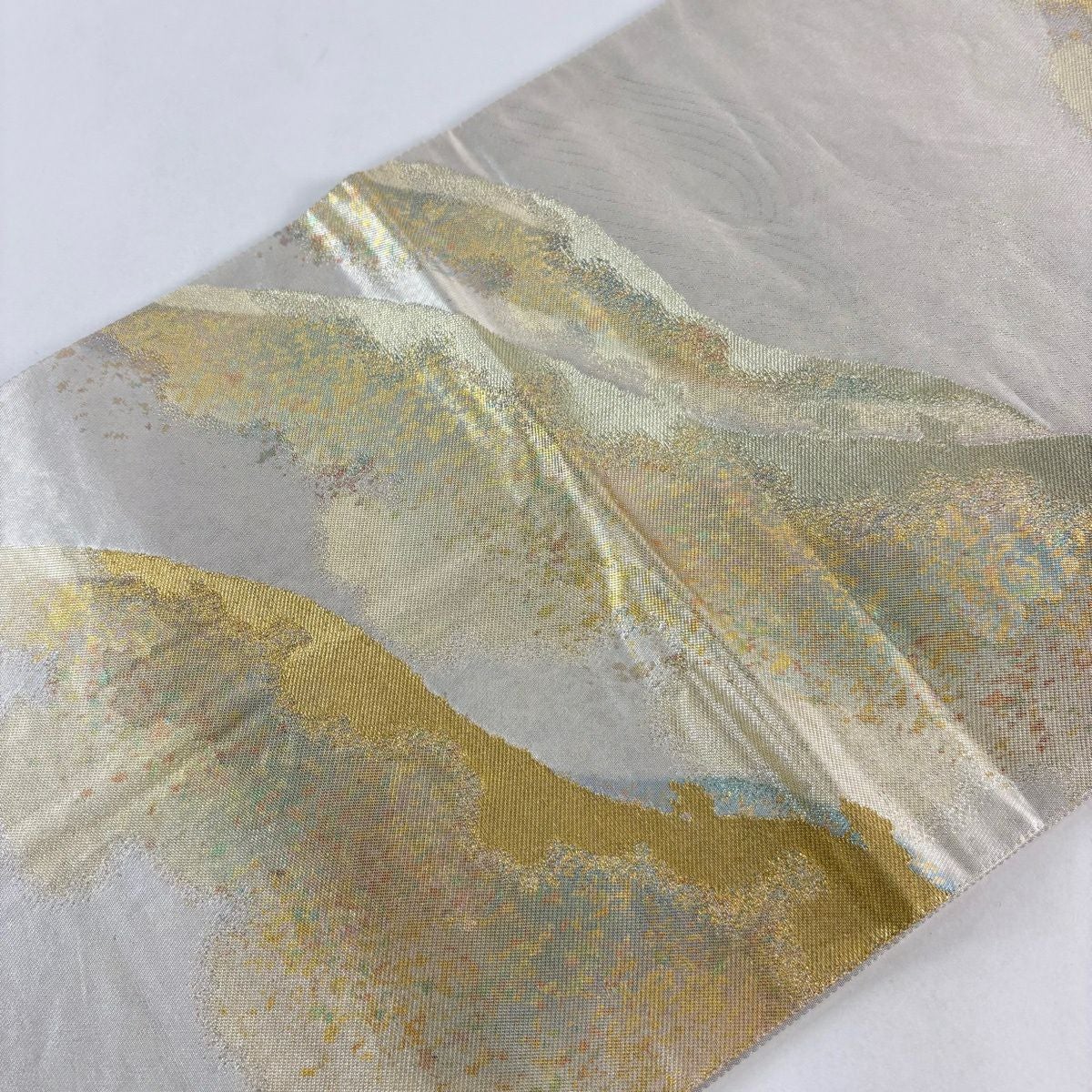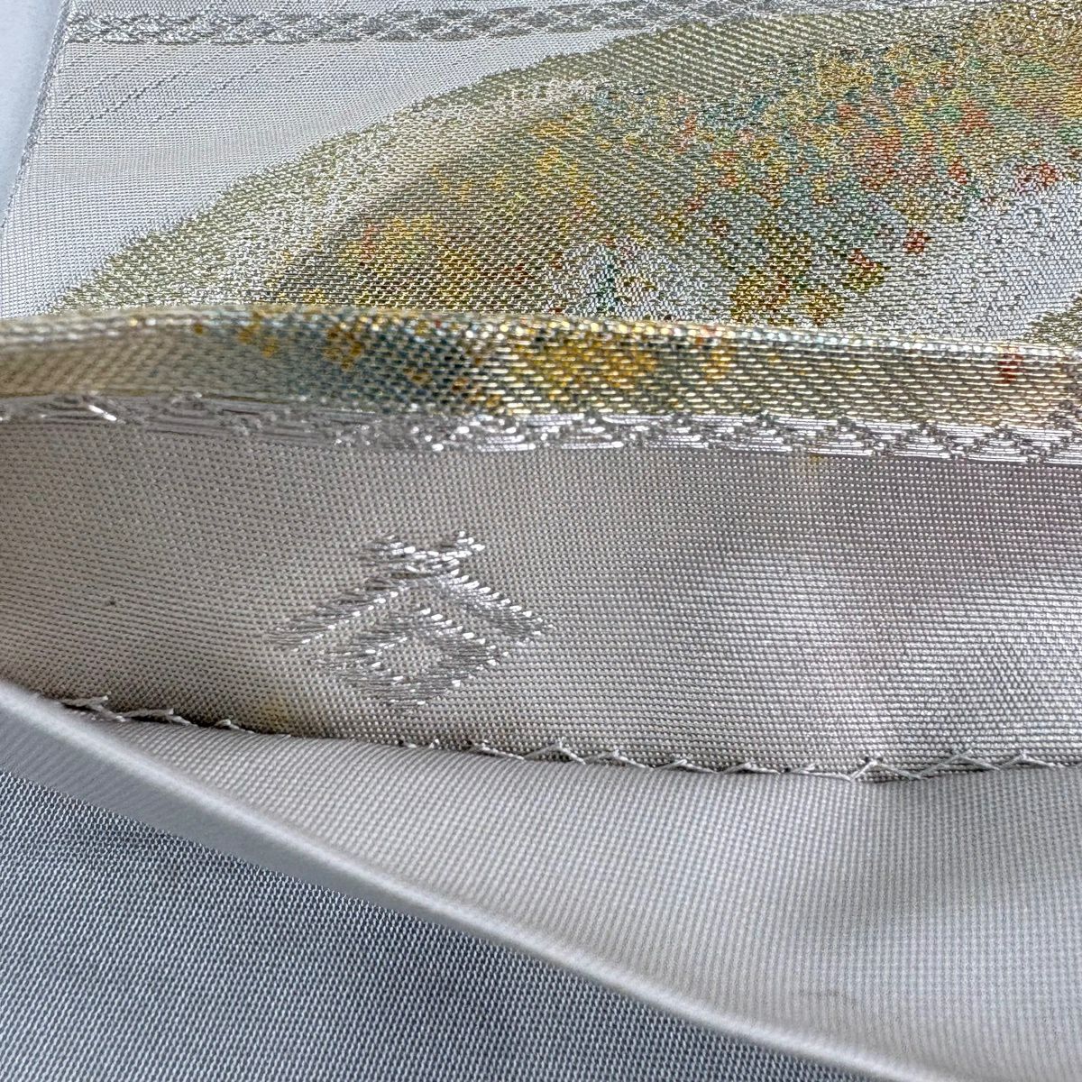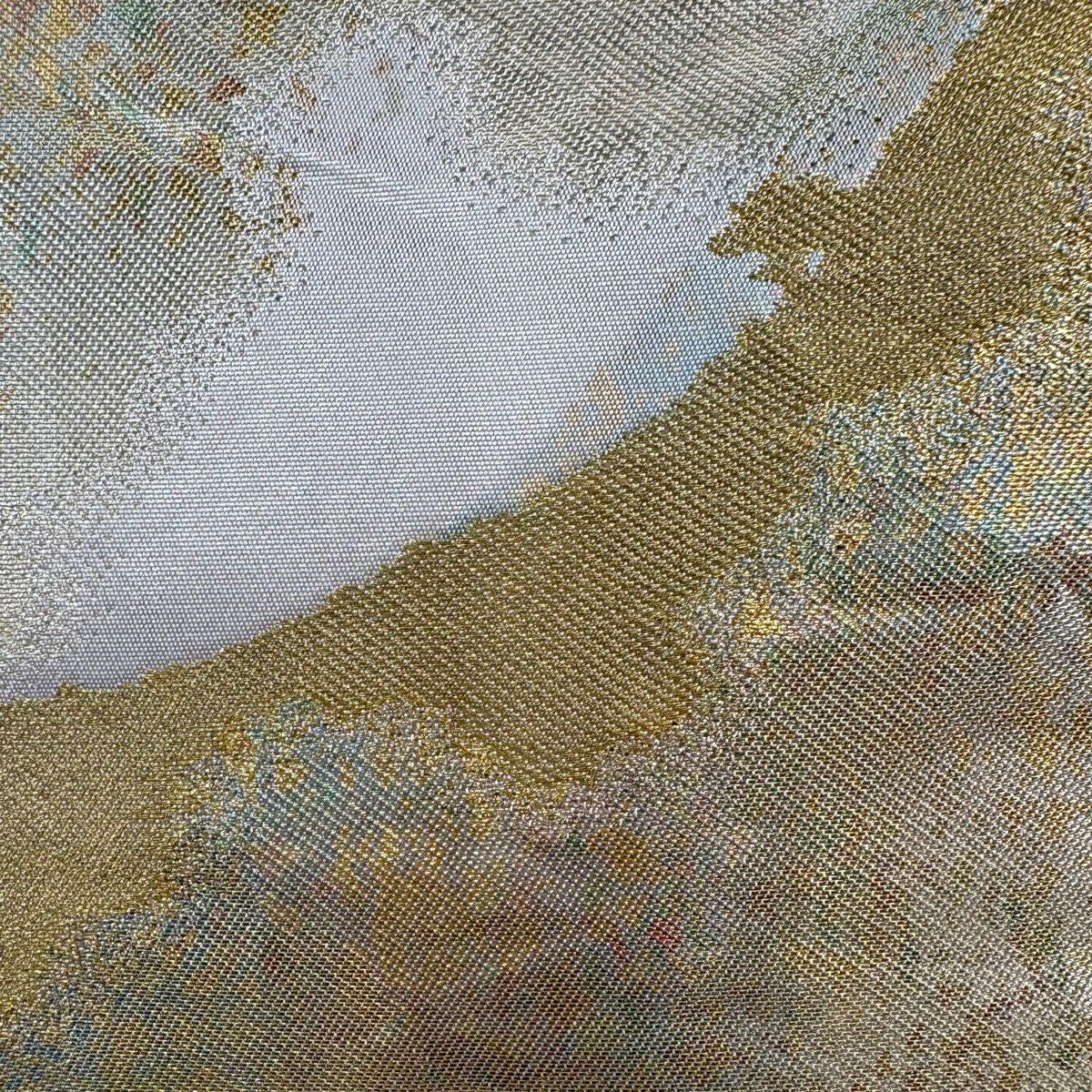 袋帯 秀品 落款あり 本家加納 山 波 金銀糸 箔 銀色 六通 正絹