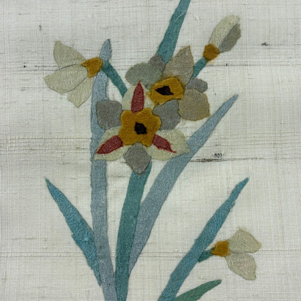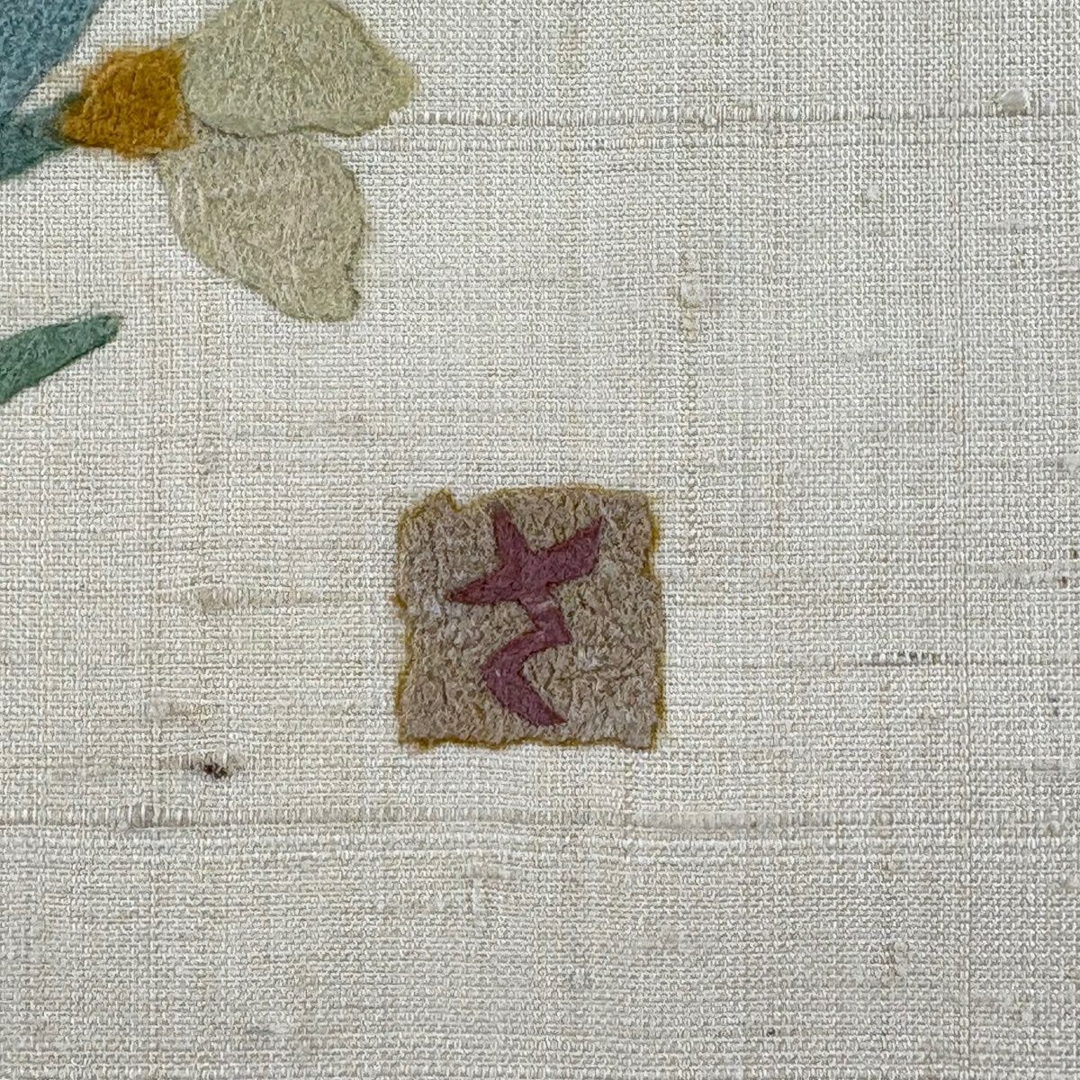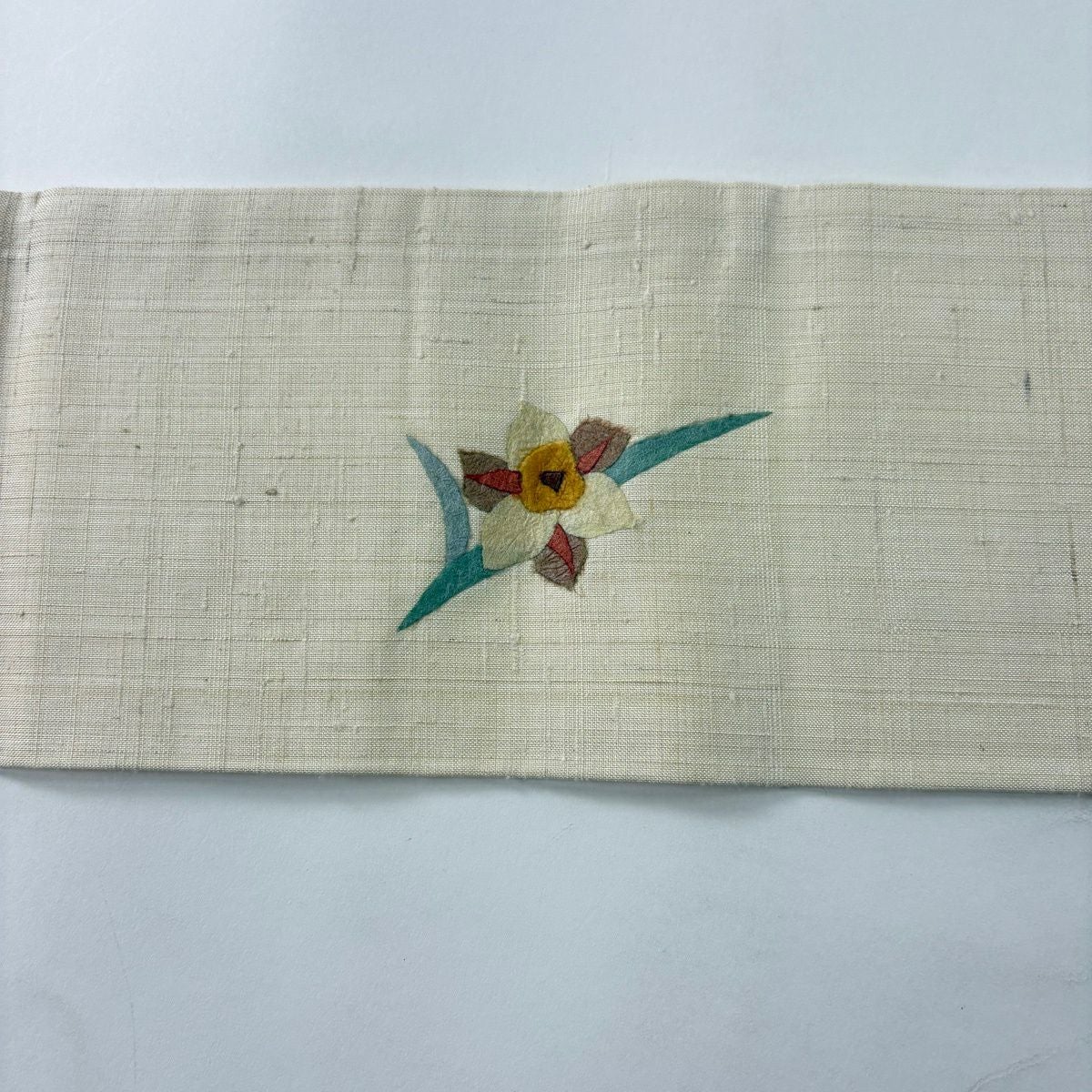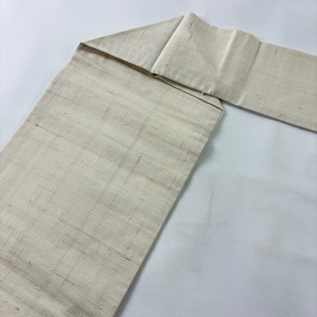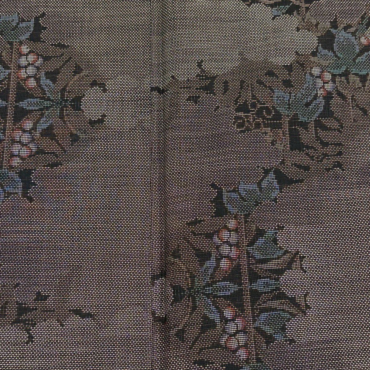 【美品】 名古屋帯 秀品 落款あり 紬地 和紙 草花 クリーム 正絹