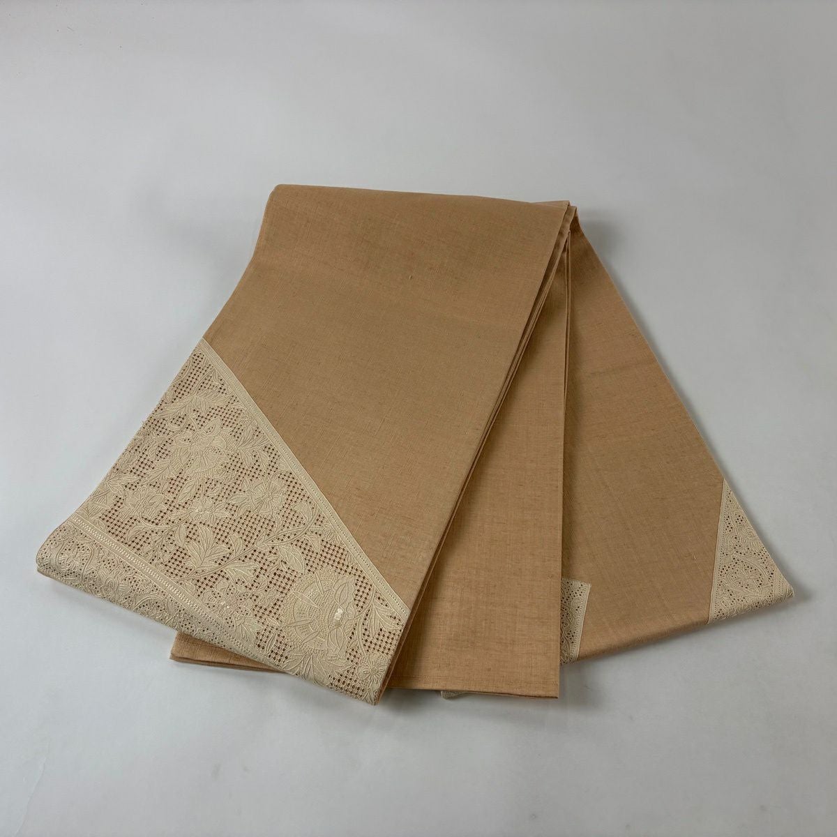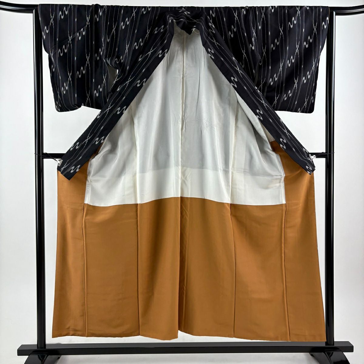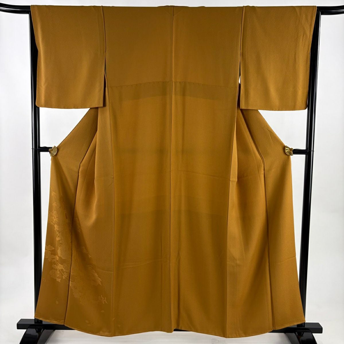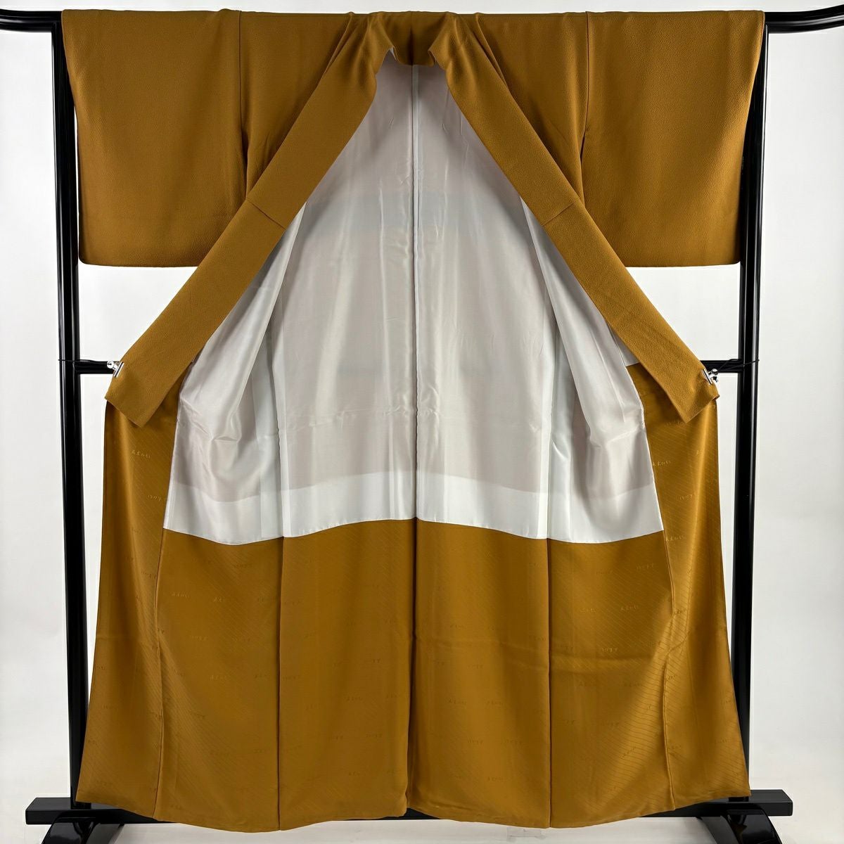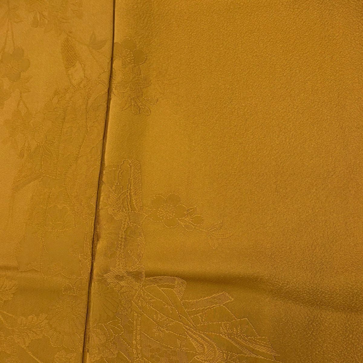 色無地 身丈160cm 裄丈64cm M 袷 地紋 黄土色 正絹 秀品