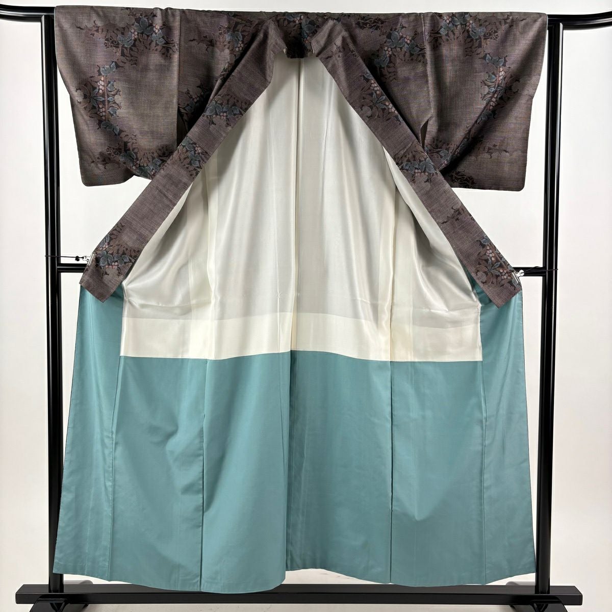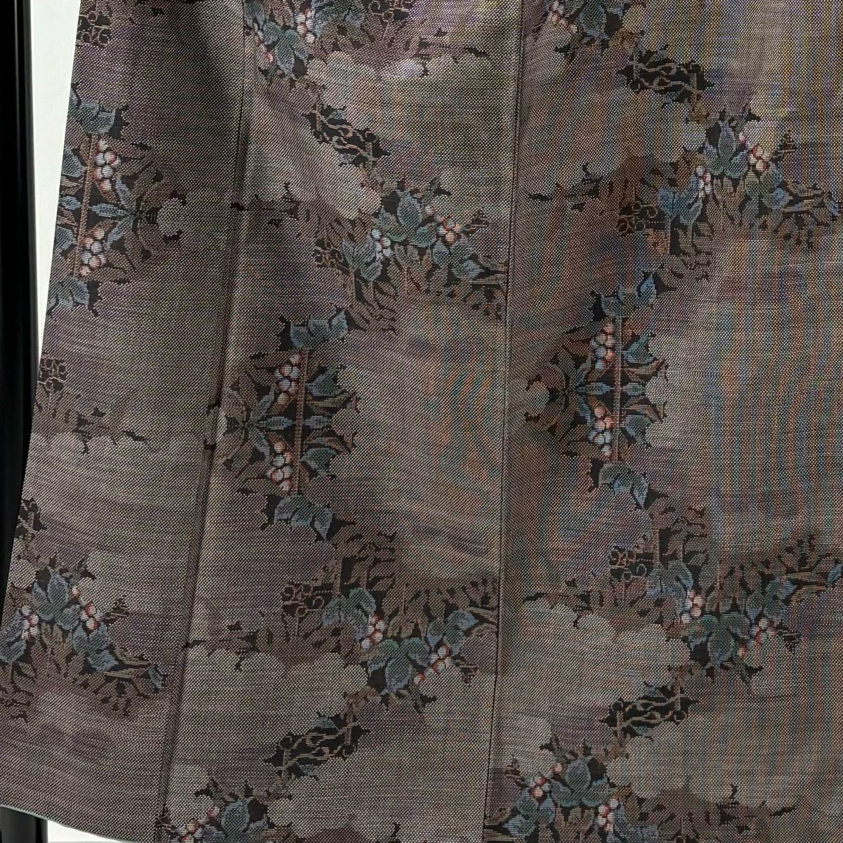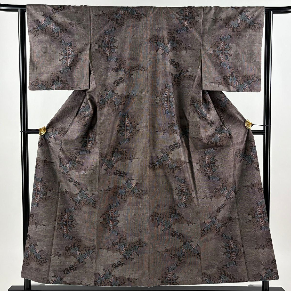 紬 身丈155cm 裄丈63cm S 袷 葡萄 雲文 茶紫 正絹 秀品