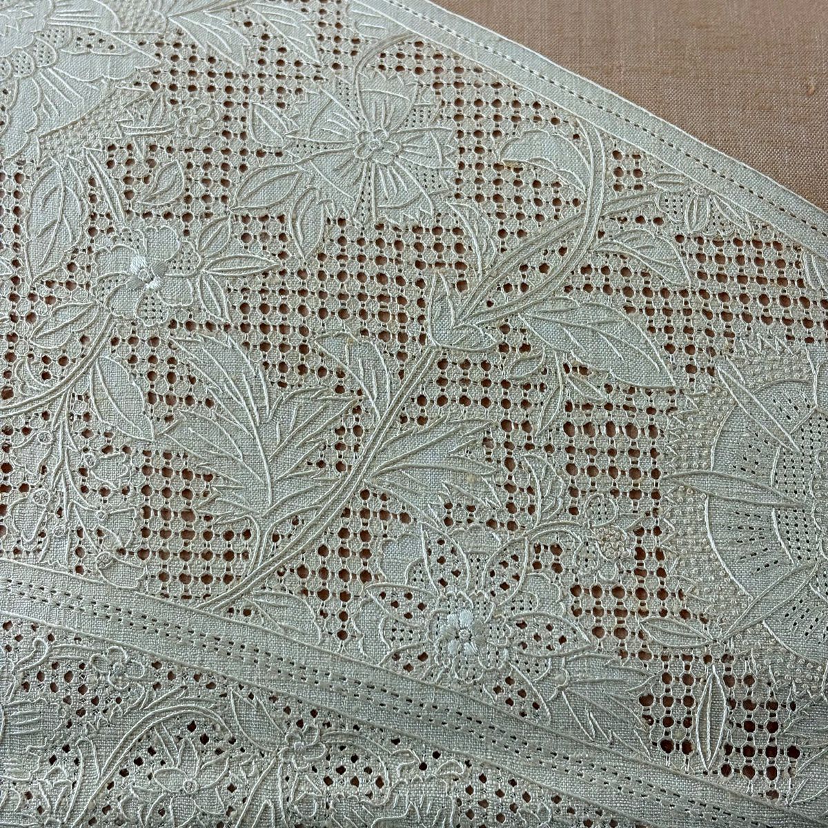 【美品】 袋帯 秀品 紬地 草花 刺繍 薄オレンジ お太鼓柄 正絹