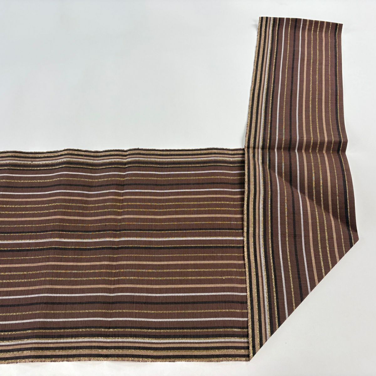 【美品】 名古屋帯 秀品 八寸名古屋帯 松葉仕立て 縞 金糸 焦茶色 正絹