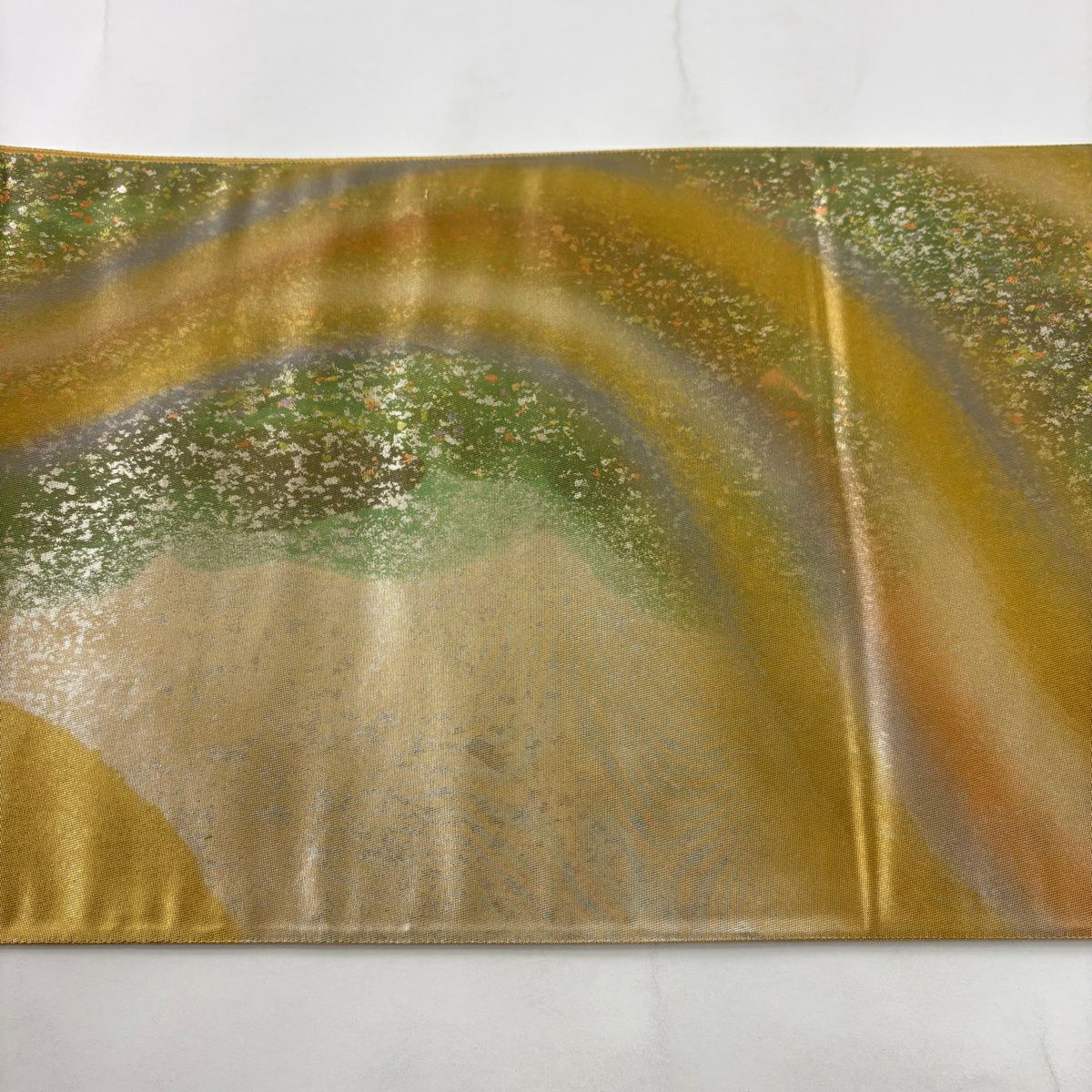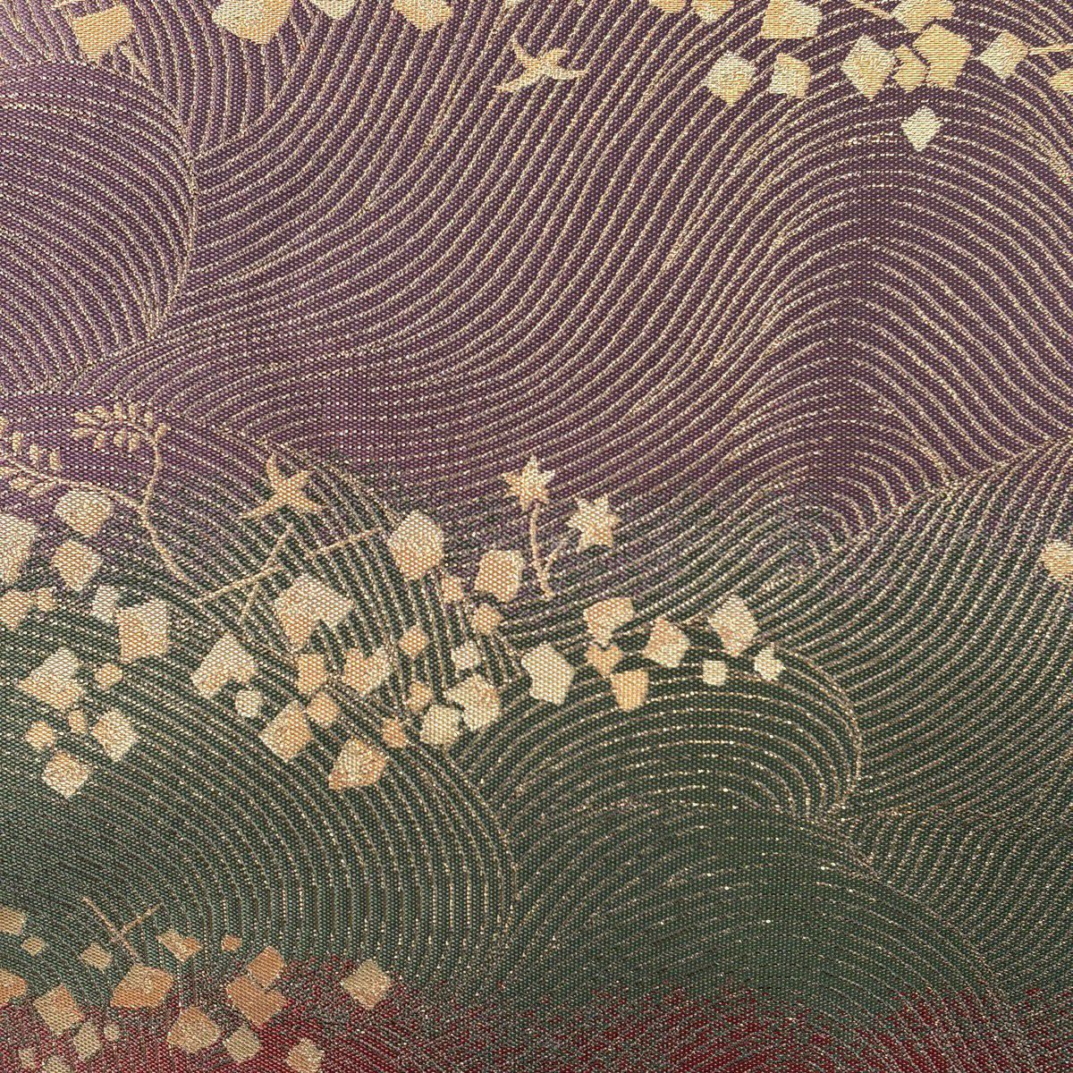 【美品】 袋帯 秀品 小森草木染工房 箔散らし 波 箔 紫 全通 正絹