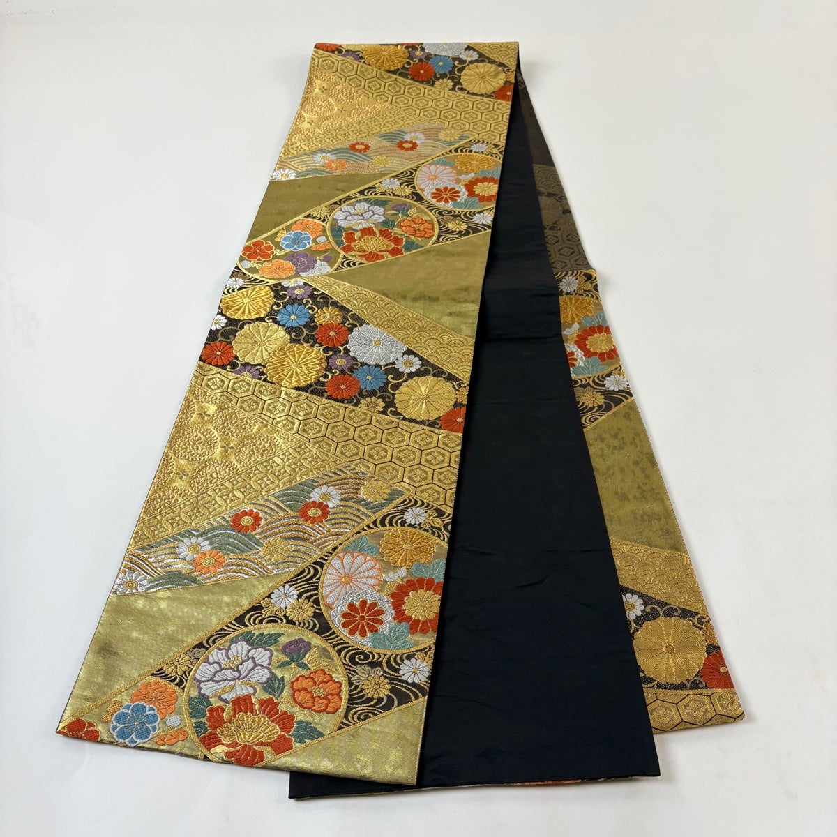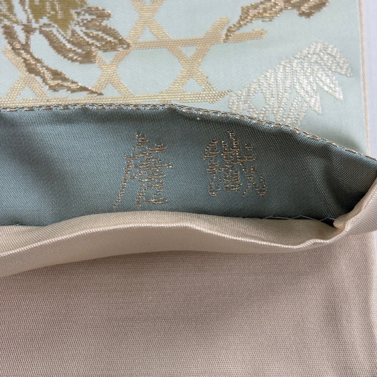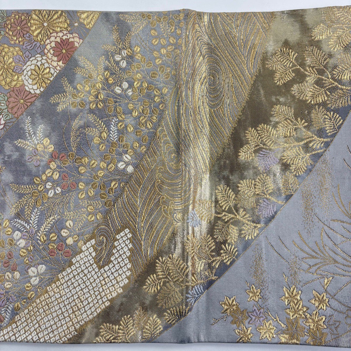 【美品】 袋帯 秀品 落款あり 草花 波 金銀糸 箔 金色 六通 正絹